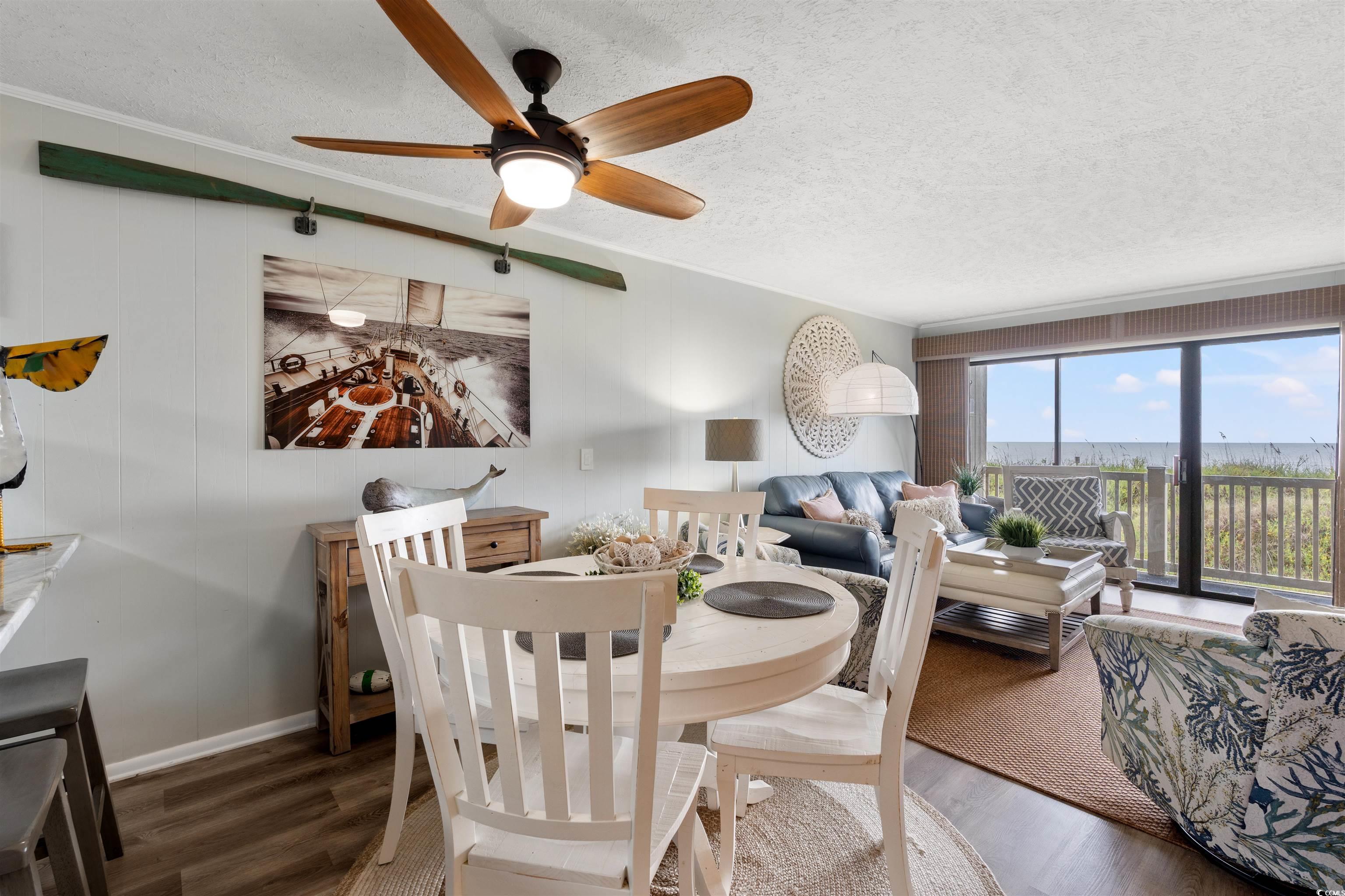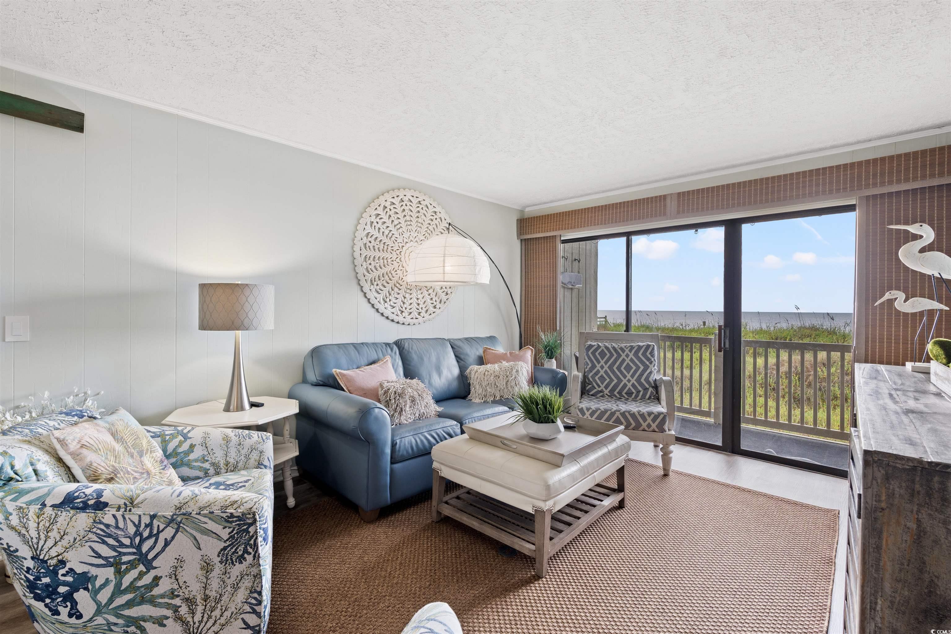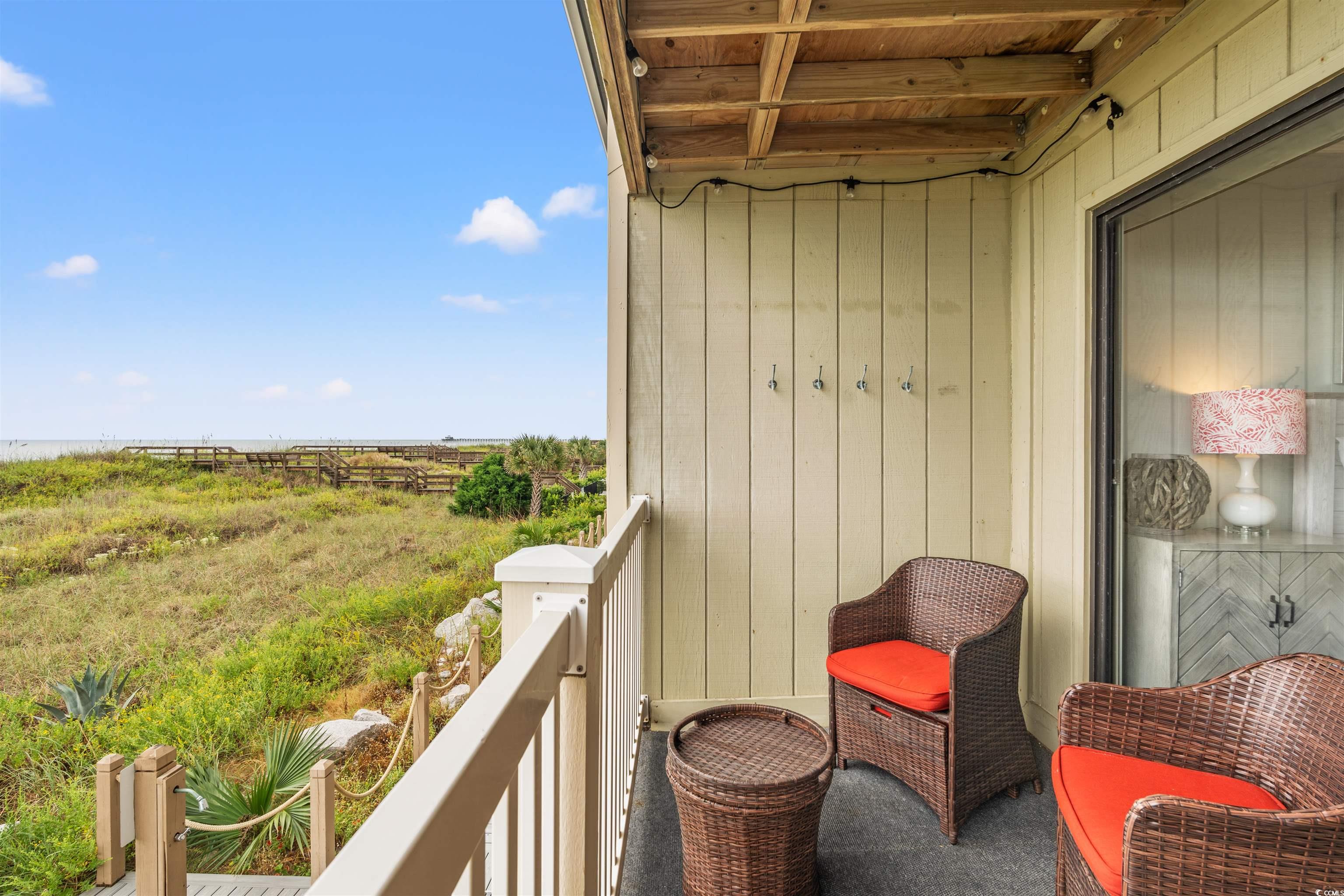 Discover coastal living at its best with this beautifully appointed 2-bedroom, 1.5-bath condo located directly on the oceanfront in the highly desirable Cherry Grove section of North Myrtle Beach. From the moment you walk in, you’re greeted with breathtaking, unobstructed views of the Atlantic Ocean right from your private balcony—perfect for morning coffee, evening cocktails, or simply relaxing to the sound of the waves. Inside, you’ll find an open and airy floor plan with plenty of natural light. The kitchen offers updated appliances, ample counter space, and a breakfast bar that flows seamlessly into the living and dining areas. Both bedrooms are generously sized, with the primary suite featuring direct balcony access and a private bath. This condo comes fully furnished, making it move-in or rental ready—an excellent choice for a vacation home, investment property, or full-time residence. Community amenities include a sparkling pool, sundeck, and private beach access, so you can enjoy all that North Myrtle Beach living has to offer. And the location? You’re just minutes from local dining, entertainment, golf, and shopping—everything you need for the perfect beach lifestyle. Don’t miss the chance to make this oceanfront gem yours!