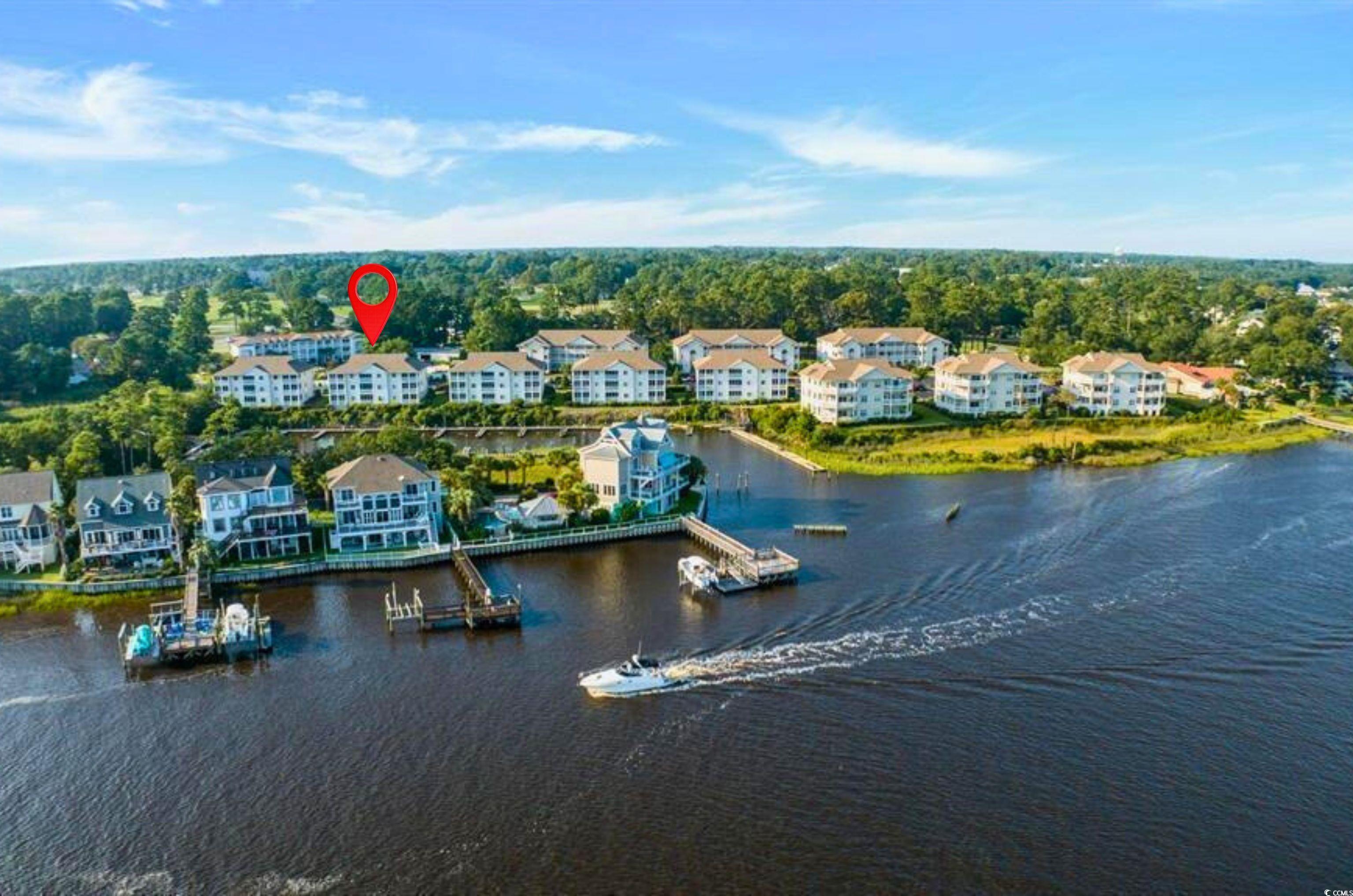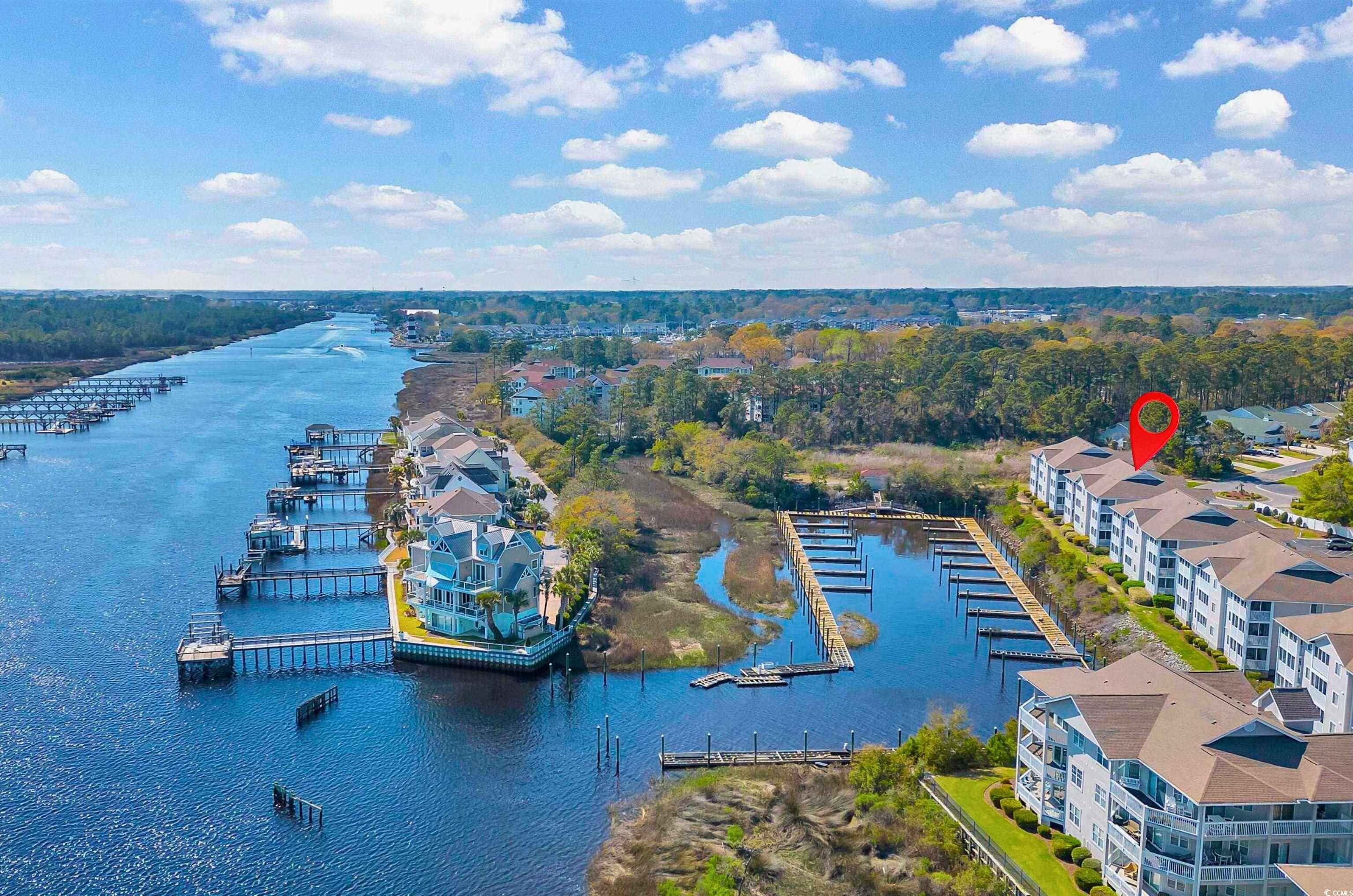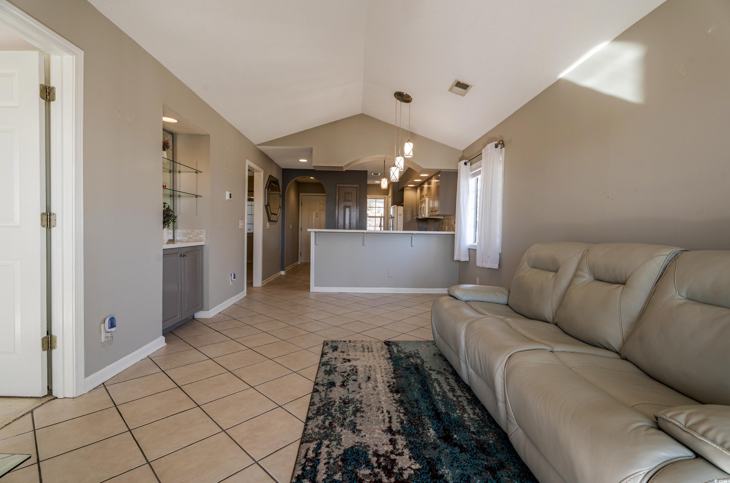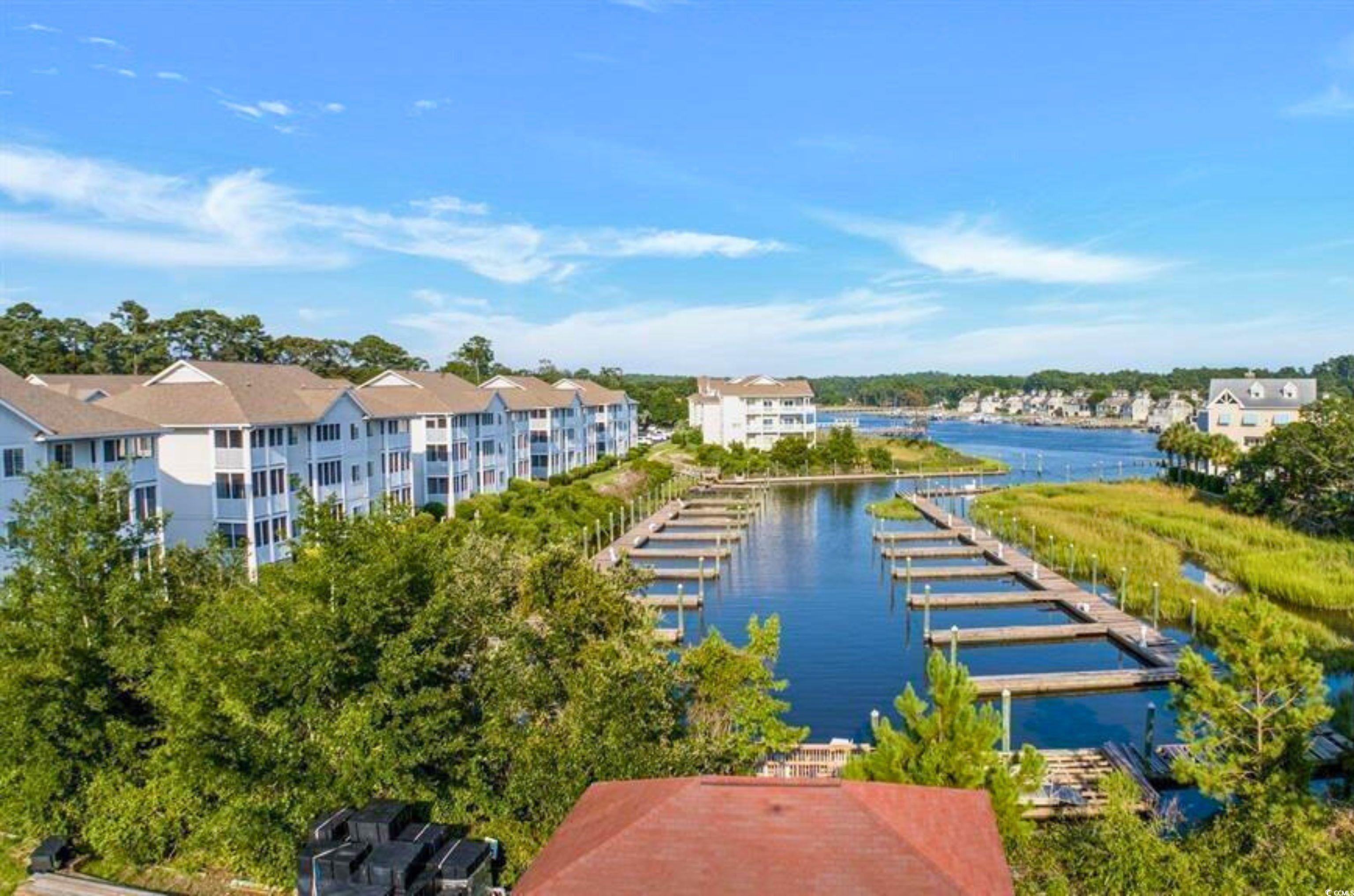 Step inside and you’ll immediately feel the difference of a top-floor, end-unit—it’s brighter, more open, and more private. The main living space features vaulted ceilings and modern lighting that gives the home an airy, coastal feel. The kitchen is clean and updated in style, with gray cabinetry, white solid-surface counters, a classic tile backsplash, and a large breakfast bar that’s perfect for quick meals, hosting friends, or setting out snacks after a day on the water. The layout flows easily into the living and dining areas, and the best part is how the home connects to the outdoors. Slide the doors open from the living room or the primary bedroom and head to the screened-in porch, a true bonus living space with a ceiling fan and room for both lounging and dining. Both bedrooms are comfortably sized and the bathrooms are bright and functional with clean finishes and updated touches. If you’ve been searching for a 2 bed 2 bath top-floor condo in Little River with a waterway view near North Myrtle Beach, this one checks the boxes: light, open, move-in ready, and made for easy coastal living.