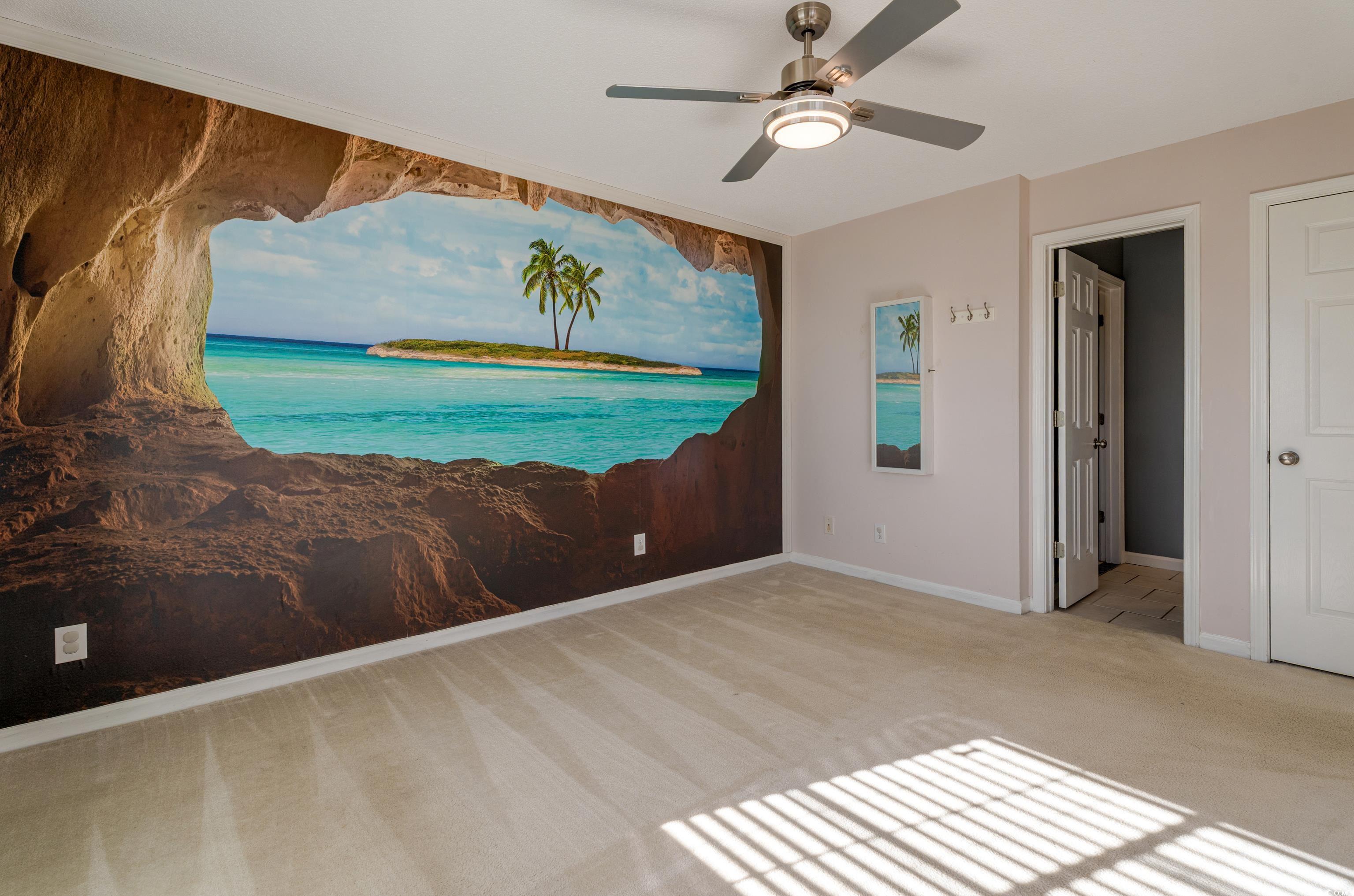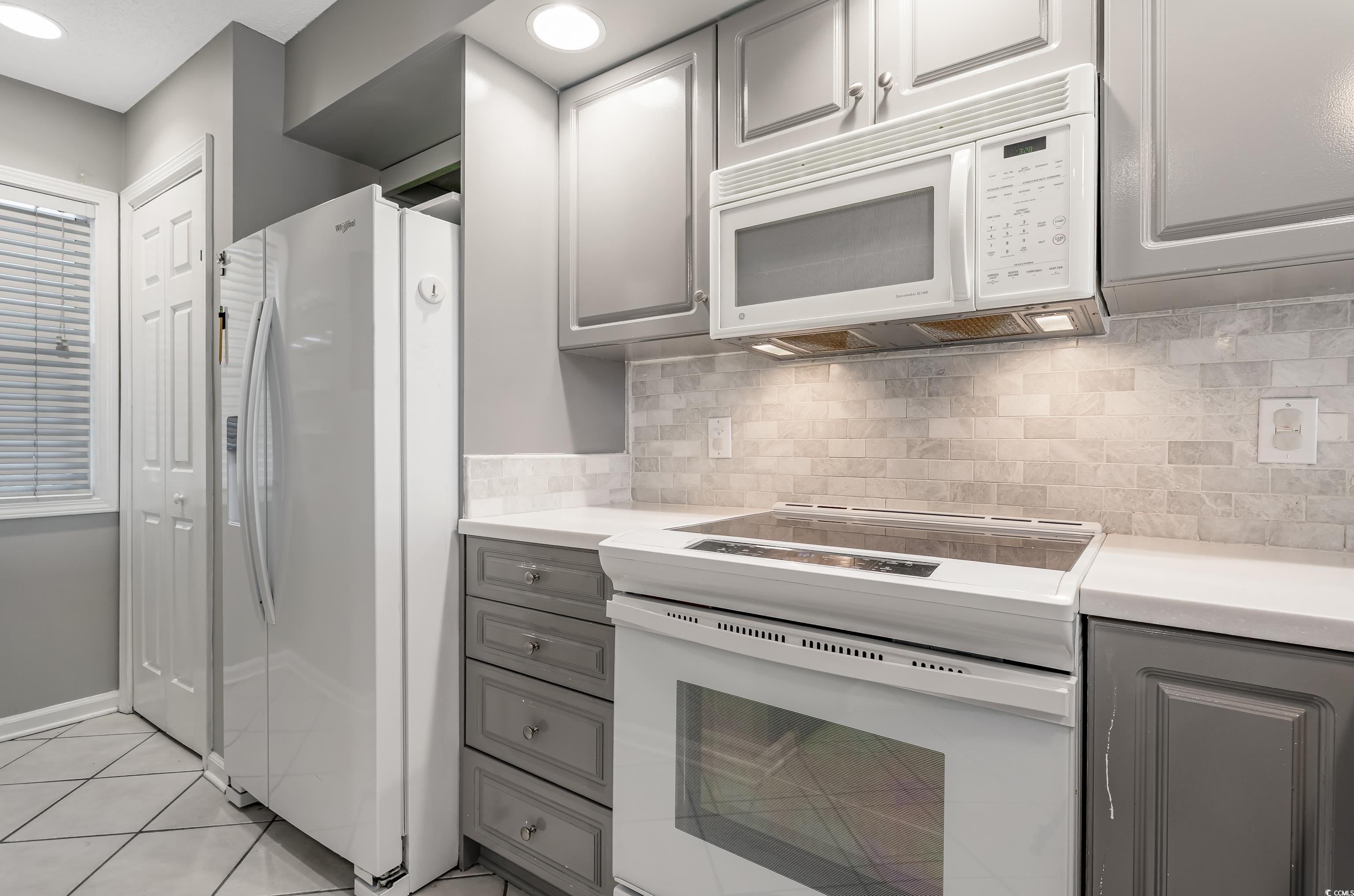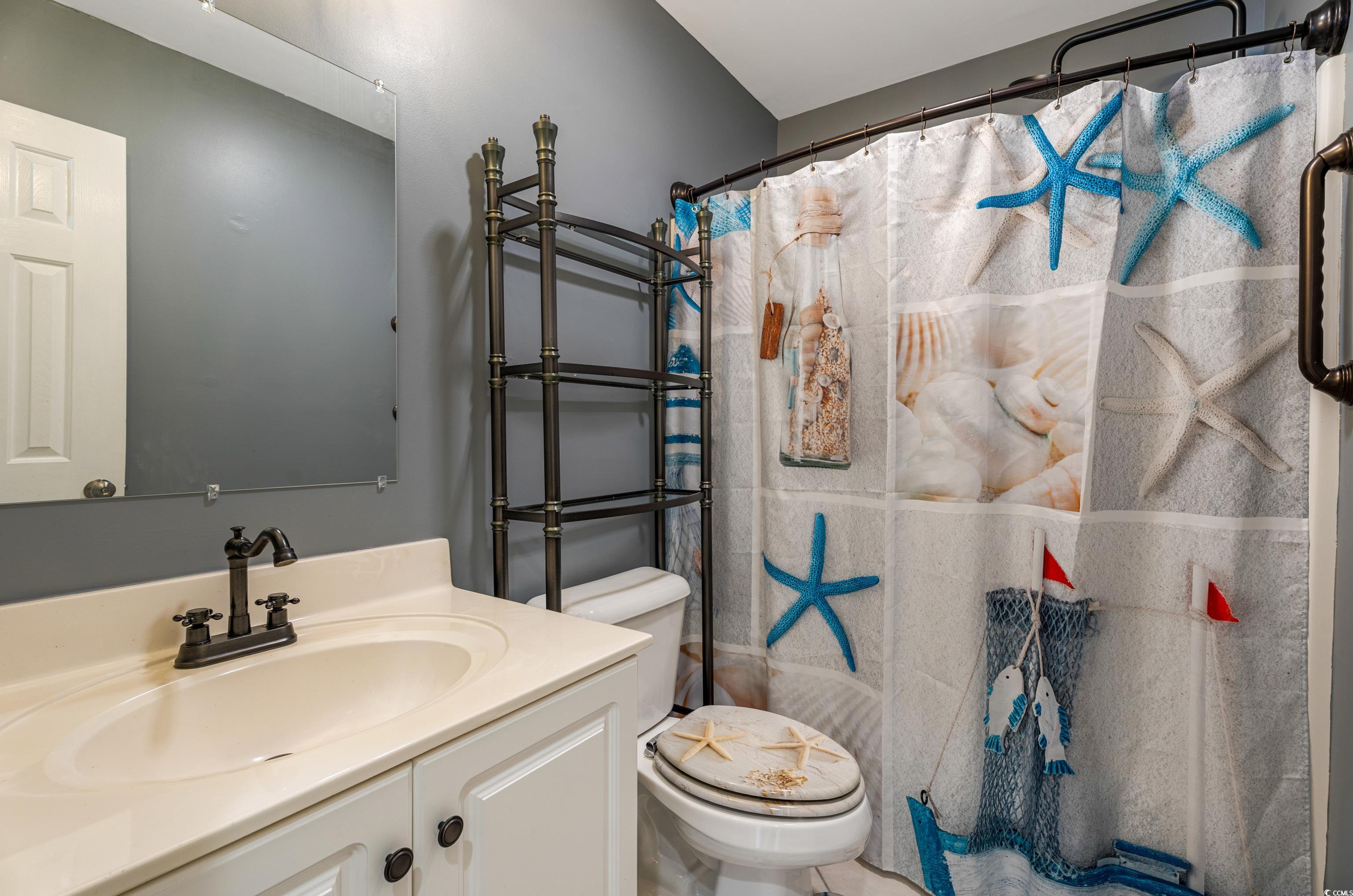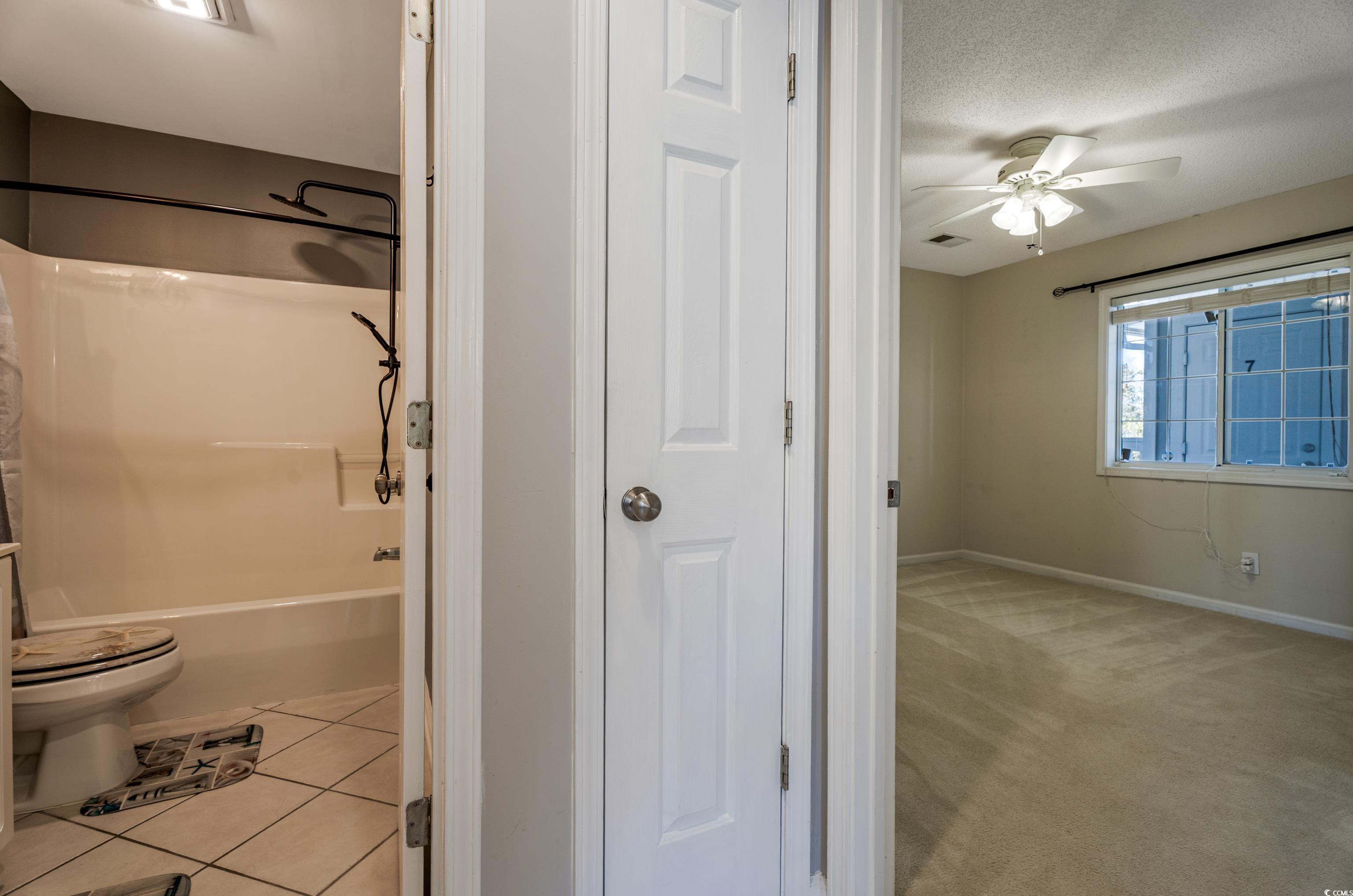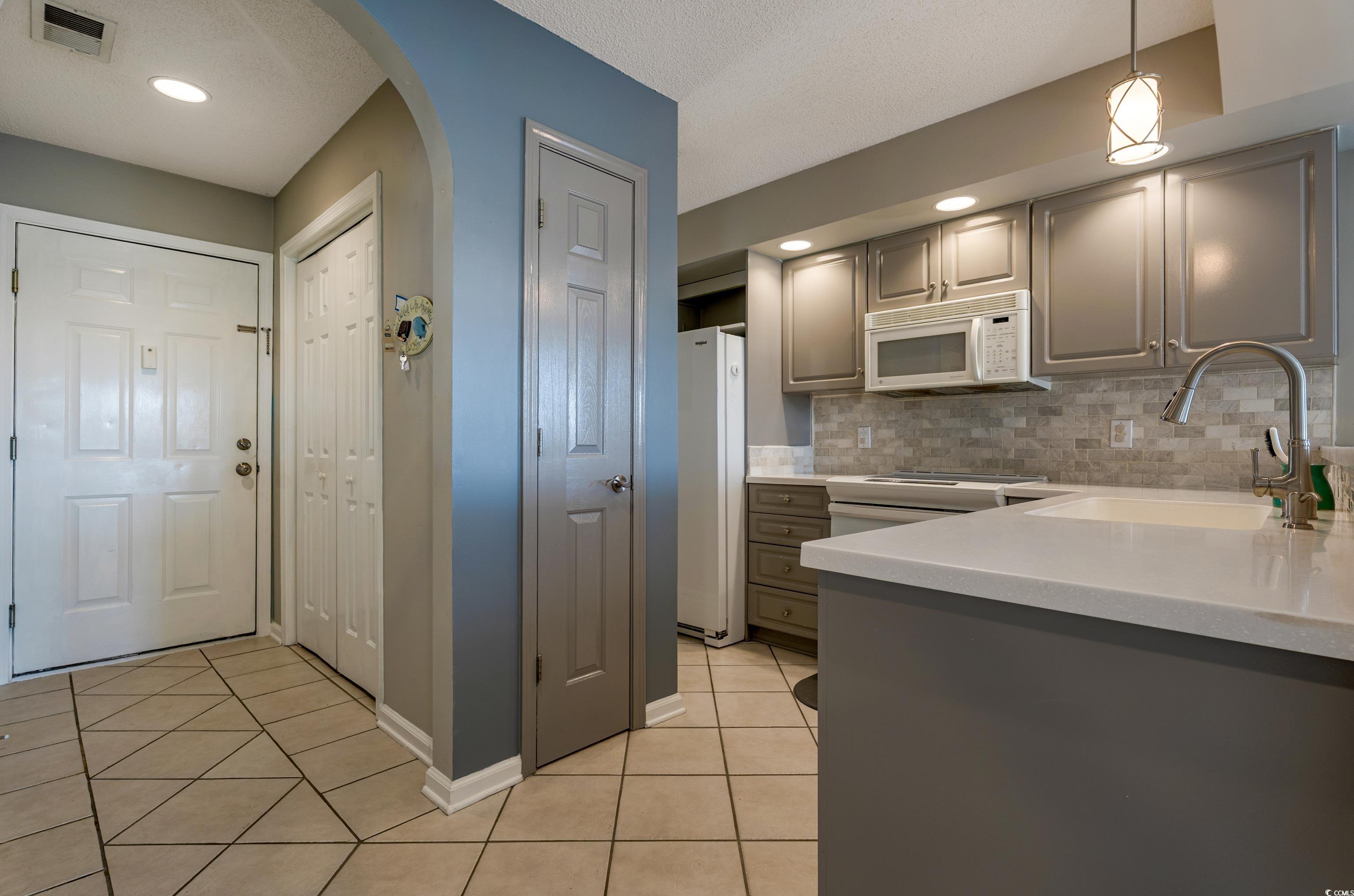 Step inside and you’ll immediately feel the difference of a top-floor, end-unit—it’s brighter, more open, and more private. The main living space features vaulted ceilings and modern lighting that gives the home an airy, coastal feel. The kitchen is clean and updated in style, with gray cabinetry, white solid-surface counters, a classic tile backsplash, and a large breakfast bar that’s perfect for quick meals, hosting friends, or setting out snacks after a day on the water. The layout flows easily into the living and dining areas, and the best part is how the home connects to the outdoors. Slide the doors open from the living room or the primary bedroom and head to the screened-in porch, a true bonus living space with a ceiling fan and room for both lounging and dining. Both bedrooms are comfortably sized and the bathrooms are bright and functional with clean finishes and updated touches. If you’ve been searching for a 2 bed 2 bath top-floor condo in Little River with a waterway view near North Myrtle Beach, this one checks the boxes: light, open, move-in ready, and made for easy coastal living.