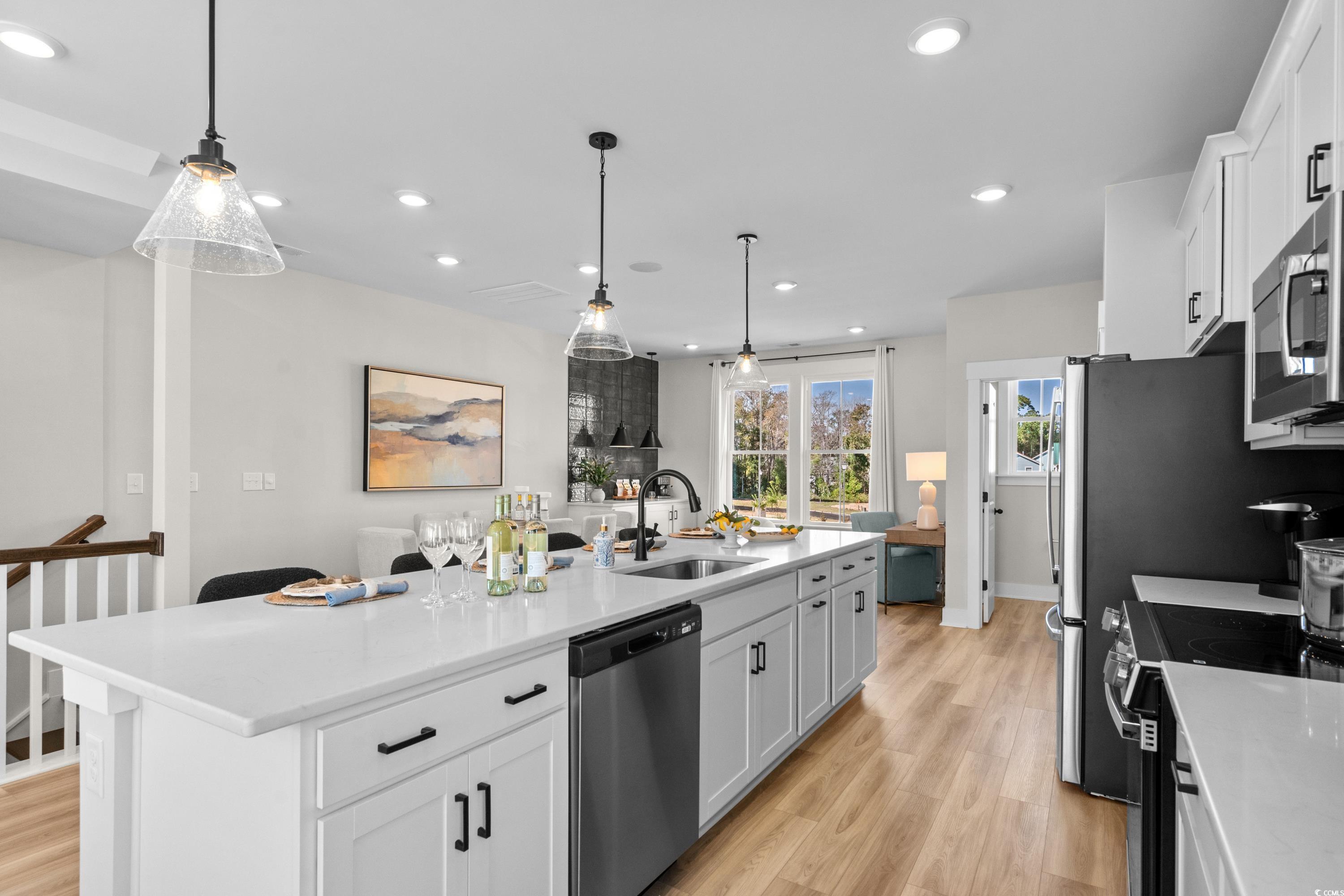 Discover this right end unit Brookgreen model with views of the intracoastal waterway, views from this building only! A modern three-story 4 bedroom multilevel condo designed for flexible living. The main level features an open-concept kitchen with a large quartz countertop island overlooking the breakfast area, flex space, and family room. Upstairs, the primary suite includes two walk-in closets, dual vanities and an oversized tiled shower, with two additional bedrooms nearby. The entry level offers an additional open living space/game room, perfect for entertaining and covered back porch! LOCATION! LOCATION! The only new low maintenance townhome-style condo community in Little River with direct access to marinas, restaurants, and more! Seabreeze Crossing is just steps from the Intracoastal Waterway and only minutes from the beaches of North Myrtle Beach. Featuring 56 beautifully designed homes, Seabreeze Crossing combines coastal charm, low-maintenance living with low condo fee, and an unbeatable location—ideal for full-time residents, second-home buyers, or anyone seeking a relaxing beach retreat. Home and community information, including, without limitation, pricing, included features, specifications, materials, terms, conditions, and availability subject to change without notice. All images are offered as depictions only and individual homes, amenities, features, and views may differ. DRB Group South Carolina, LLC (Contractor# CLG.117647 & RBC.289) (“DRB Homes”). DRB Homes reserves the right to make changes to speculative homes under construction. Not all elevations or options shown are available in all communities. All dimensions/square footage are approximate; actual dimensions/square footage may vary. Prices may not include lot premiums, upgrades or optional features that may vary per community. Deposit restrictions may apply