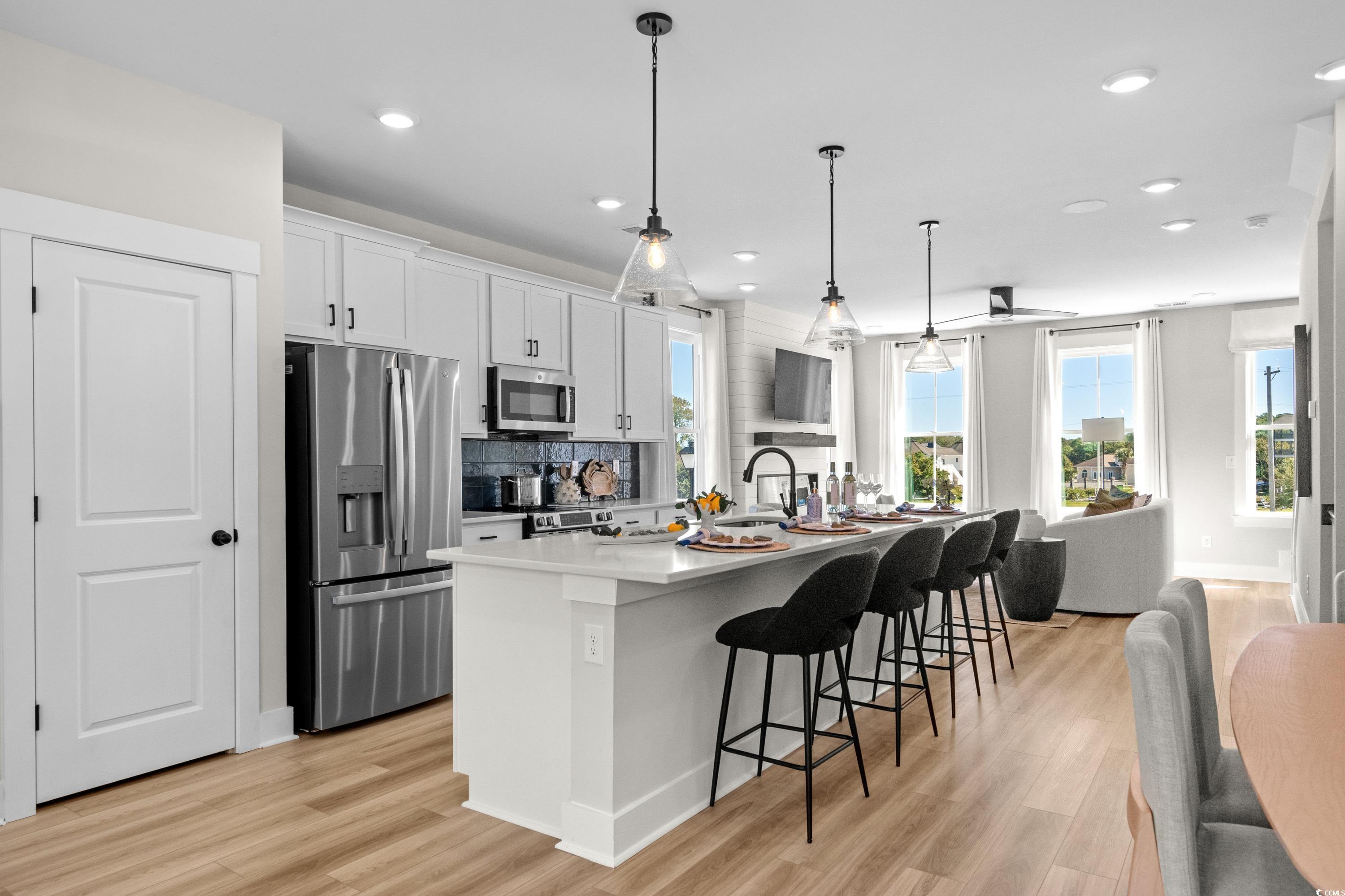 Discover this right end unit Brookgreen model with views of the intracoastal waterway, views from this building only! A modern three-story 4 bedroom multilevel condo designed for flexible living. The main level features an open-concept kitchen with a large quartz countertop island overlooking the breakfast area, flex space, and family room. Upstairs, the primary suite includes two walk-in closets, dual vanities and an oversized tiled shower, with two additional bedrooms nearby. The entry level offers an additional open living space/game room, perfect for entertaining and covered back porch! LOCATION! LOCATION! The only new low maintenance townhome-style condo community in Little River with direct access to marinas, restaurants, and more! Seabreeze Crossing is just steps from the Intracoastal Waterway and only minutes from the beaches of North Myrtle Beach. Featuring 56 beautifully designed homes, Seabreeze Crossing combines coastal charm, low-maintenance living with low condo fee, and an unbeatable location—ideal for full-time residents, second-home buyers, or anyone seeking a relaxing beach retreat. Photos are for representation only