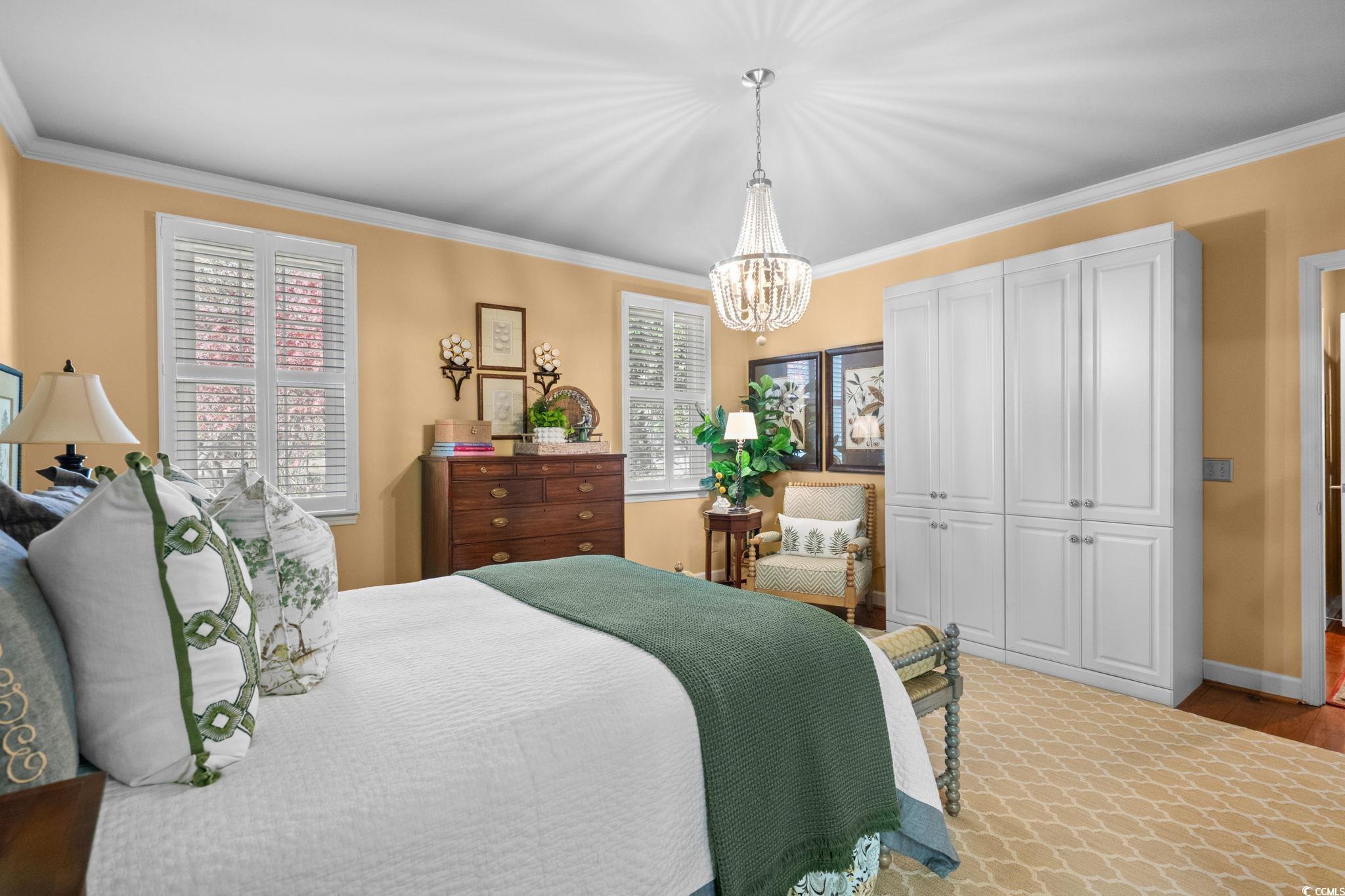 Located within the private, gated community of Wachesaw Plantation, 4415 Paddock Run Drive offers classic Lowcountry charm in one of Murrells Inlet’s most highly sought after Intracoastal Waterway view neighborhoods. This professionally decorated Carriage Run Cottage features three bedrooms, three and one half bathrooms, and a detached two car garage, all overlooking the peaceful waters of Lake Lachicotte. Heart pine floors anchor the main living level and extend throughout the primary living spaces, creating a warm and inviting feel. The home has been tastefully renovated with a thoughtful balance of coastal style and timeless finishes. The kitchen and bathrooms have been updated with quality materials, tile flooring in the baths, and finishes that complement the character of the home without feeling trendy. The primary suite is located on the main level and includes an updated ensuite bathroom with custom tile work and generous storage. Upstairs, two guest bedrooms each feature private ensuite bathrooms, offering excellent separation and privacy for family and guests. Heart pine flooring continues throughout both upstairs bedrooms. A covered front porch provides a welcoming space to relax, read, or unwind, while the rear of the home enjoys tranquil water views across Lake Lachicotte, perfect for morning coffee or quiet evenings. The detached two car garage offers convenient parking and additional storage while maintaining the traditional cottage streetscape. Wachesaw Plantation offers optional membership to its private country club, featuring a Tom Fazio designed golf course, clubhouse, pool, tennis courts, and Kimbels, the club’s waterfront dining venue known for panoramic Intracoastal Waterway views. The Wachesaw community also features a three acre park with pickleball courts, playground, and dog park, available to all property owners. Conveniently located near area beaches, the Murrells Inlet MarshWalk, dining, shopping, and nearby medical facilities, this move in ready home presents an exceptional opportunity to enjoy Lowcountry living in one of the Grand Strand’s most established gated communities.