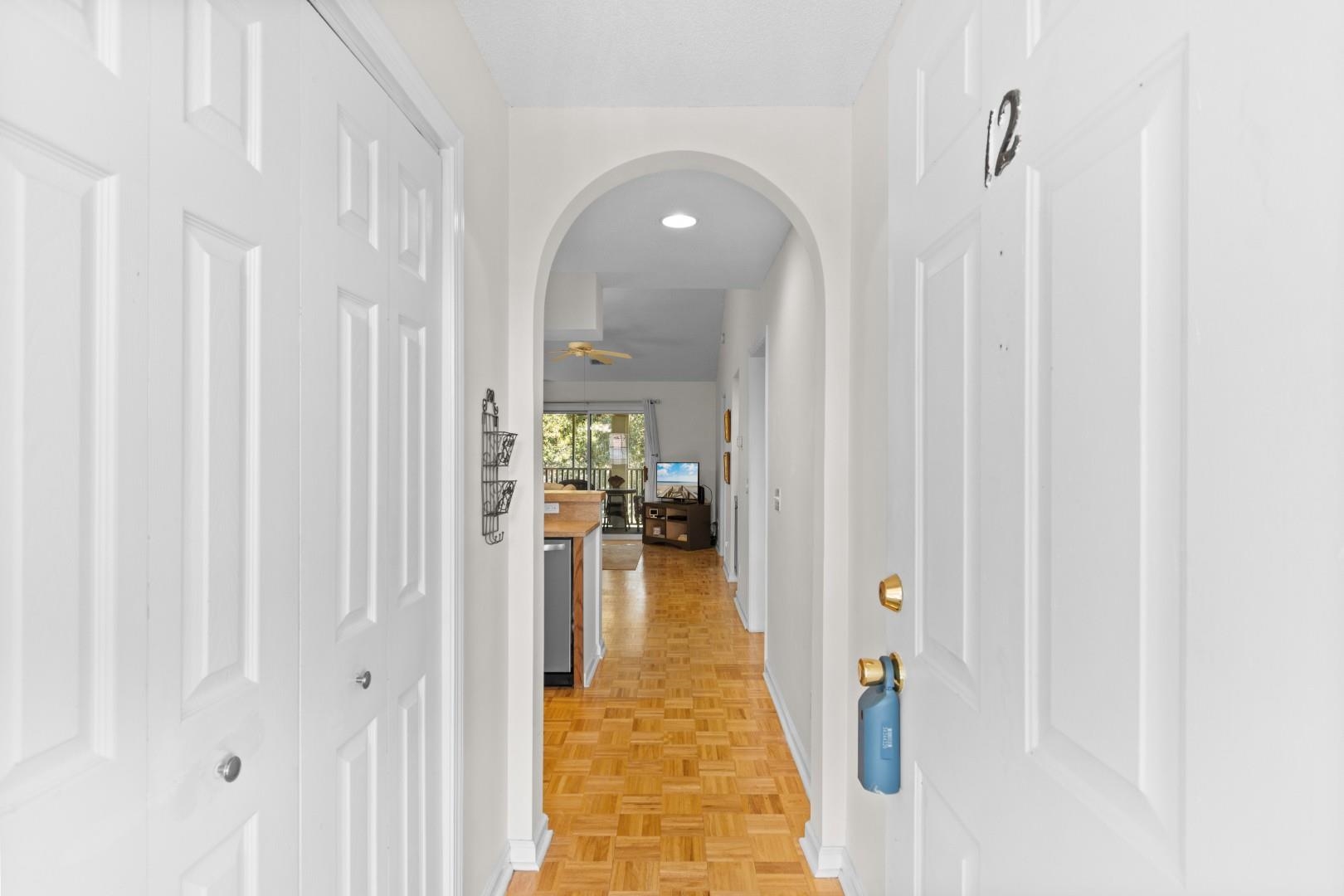 Discover a truly enchanting and meticulously cared for home in the highly coveted Spinnaker Cove community. This delightful, fully furnished, top-floor condo offers a peaceful retreat with breathtaking views of the Eastport golf course and the nearby Intracoastal Waterway. Step inside this bright and airy 2-bedroom, 2-bathroom unit to find a living space that is both elegant and comfortable. The vaulted ceilings create an expansive feel, while the gleaming parquet hardwood floors add a touch of classic charm. The modern kitchen, complete with new stainless steel appliances, is perfect for any home chef, and a convenient breakfast bar is ideal for casual meals. Outside, a spacious, screened-in balcony invites you to relax and enjoy the tranquil surroundings. The master bedroom is a cozy sanctuary, offering private access to the balcony and a soothing en-suite bathroom. Spinnaker Cove provides a quiet, welcoming atmosphere with fantastic amenities, including a sparkling pool and a community clubhouse. This charming residence is an excellent choice for a permanent home or a luxurious coastal getaway. Located just minutes from the beach and an array of shops and restaurants, this impeccable condo offers an unbeatable blend of comfort and convenience. Don't miss your chance to own this inviting piece of paradise and schedule your showing today!