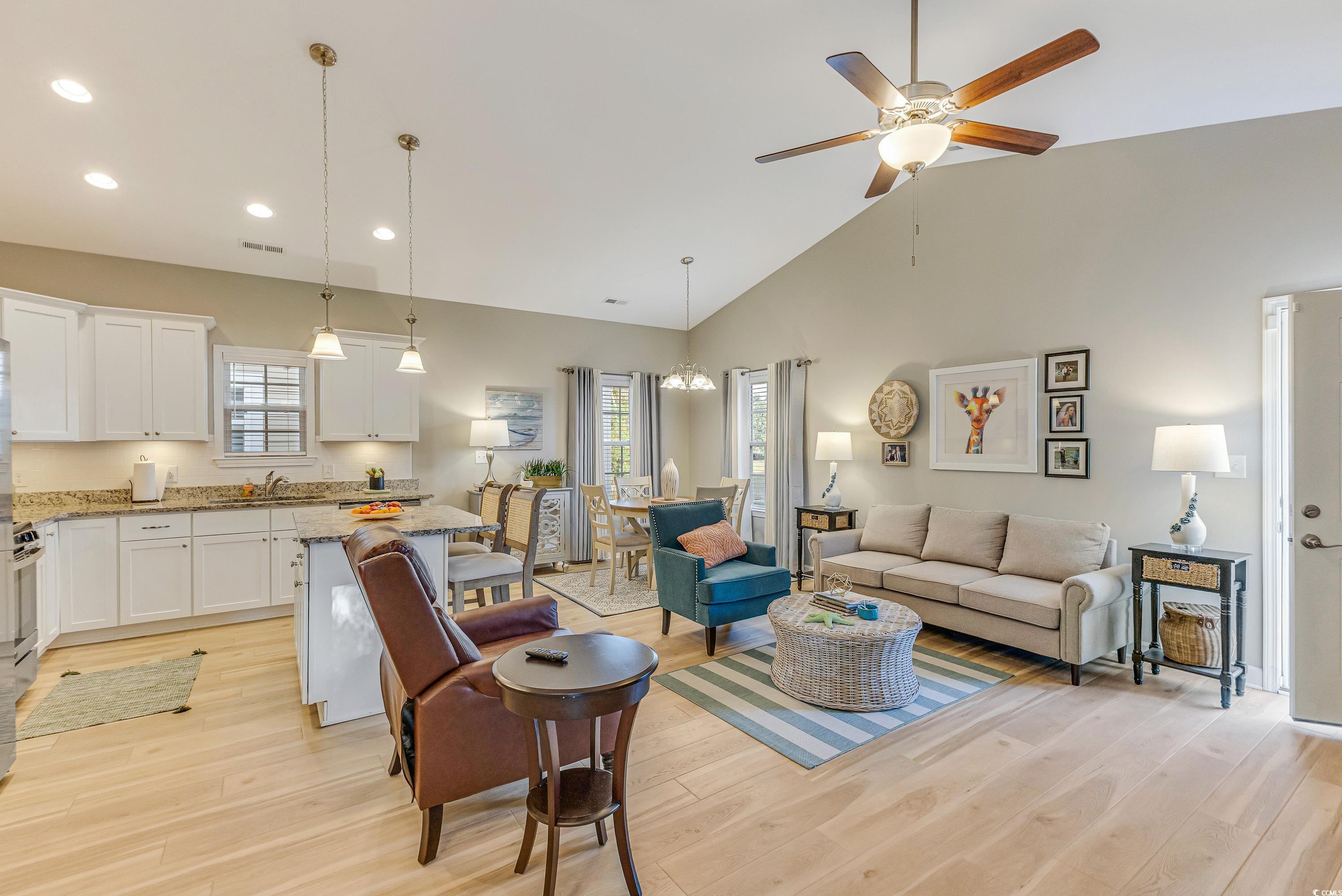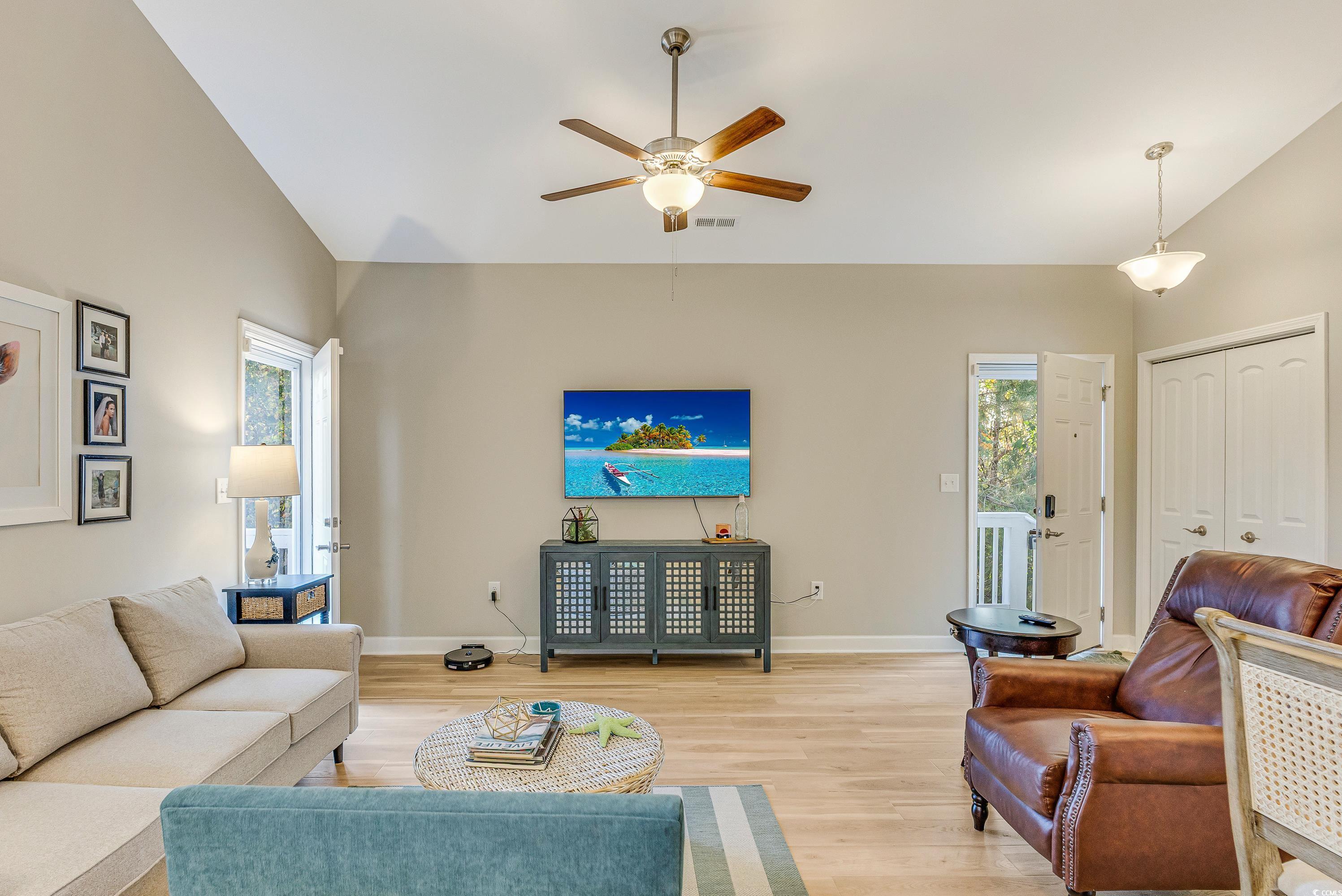 Welcome home to 4420 Grande Harbour Boulevard - your Dream Beach home located along the coast of SC in the Grande Harbour community. Built in 2020, this better than new, 2-bedroom, 2-bathroom raised beach home offers an open-concept floor plan, with beautiful upgrades, ample storage, has a Pond view and is an end unit providing a great amount of privacy. You’ll be welcomed into the home with an open-concept kitchen and family room featuring a vaulted ceiling, fresh interior paint, upgraded light fixtures and luxury vinyl plank flooring. The kitchen is a chef’s dream highlighted by solid surface granite countertops, an island, stainless steel appliances and soft-close cabinetry. The lvp flooring is carried throughout the entire home including the home’s two bedrooms and two full bathrooms. The exterior of the property is just as striking, with Hardie Plank siding, a low maintenance metal roof & two exterior storage closets beneath the home. An added bonus to this home is the fact that your monthly HOA dues include: High speed fiber optic internet, irrigation, landscaping, pool, common area maintenance, electric common. Grande Harbour is a community that offers natural gas, allowing residents to have the convenience of gas appliances including a stove, tankless water heaters, dryer and heat. Additionally, Grande Harbour residents receive discounted marina services at the nearby Grande Harbour Marina, a dry stack facility along the Intracoastal Waterway. World-class golf is just around the corner and the sands of the Atlantic Ocean and Cherry Grove Beach are minutes away! Whether you're looking for a full-time home or part-time beach retreat this turn-key, better than new home is perfect for you. Schedule your showing today!