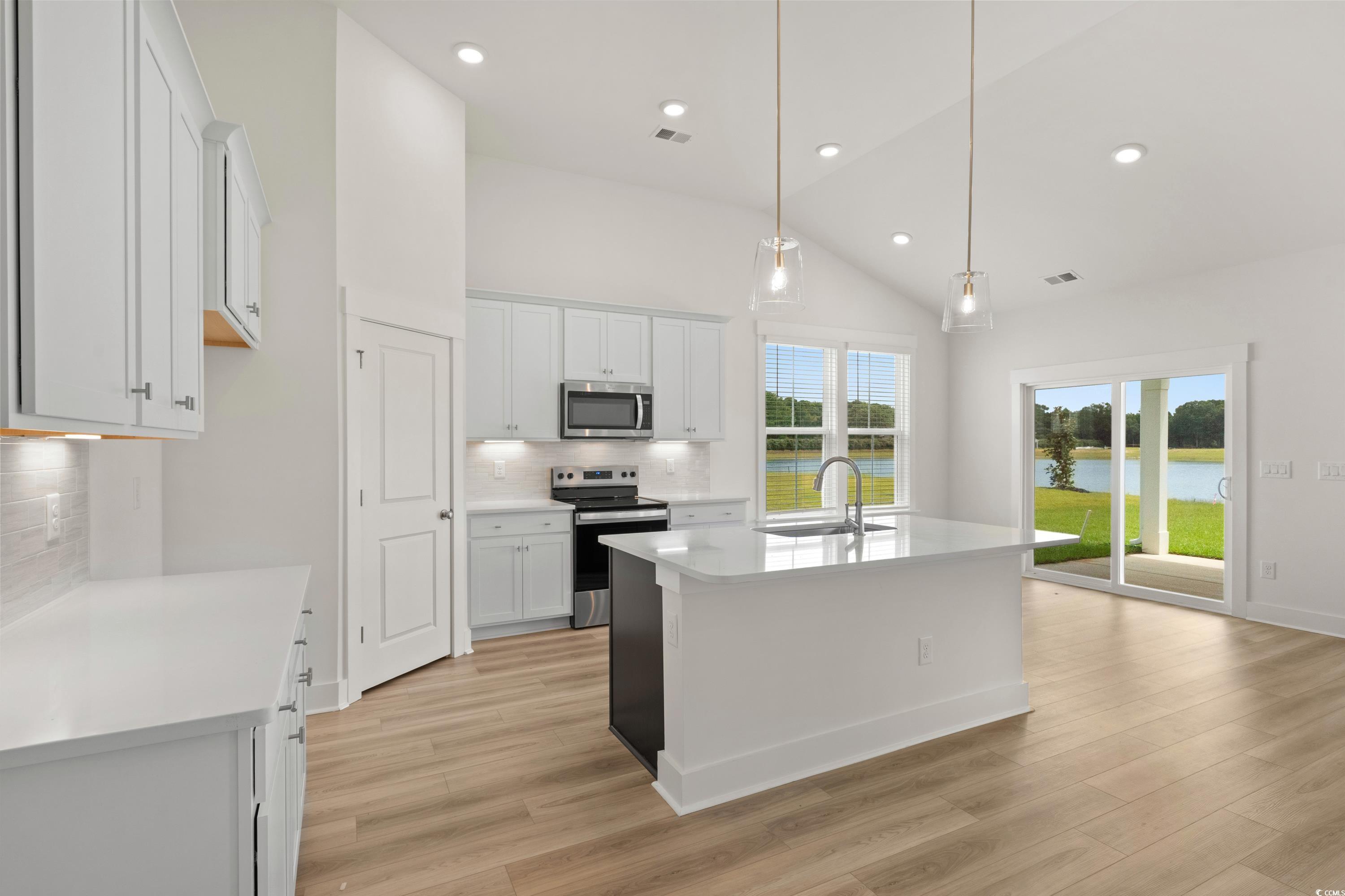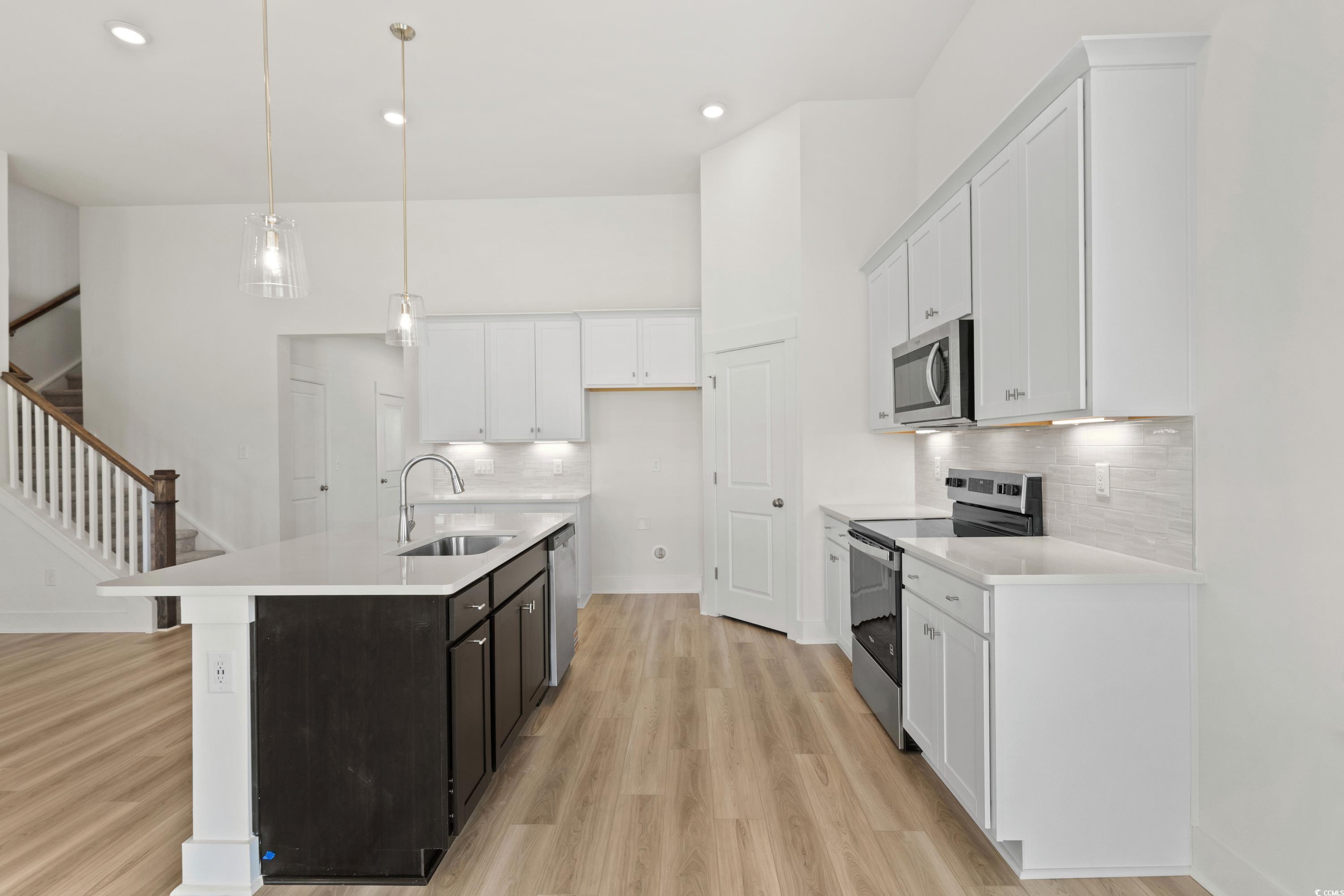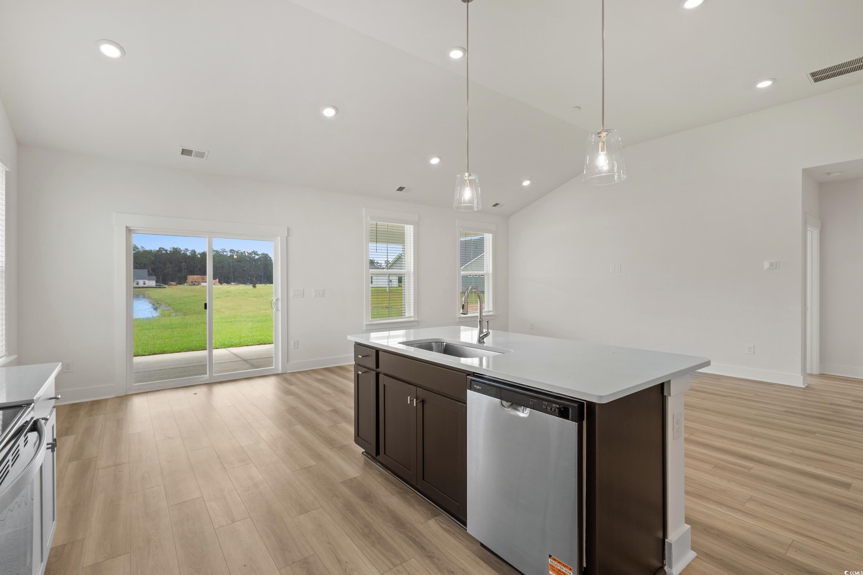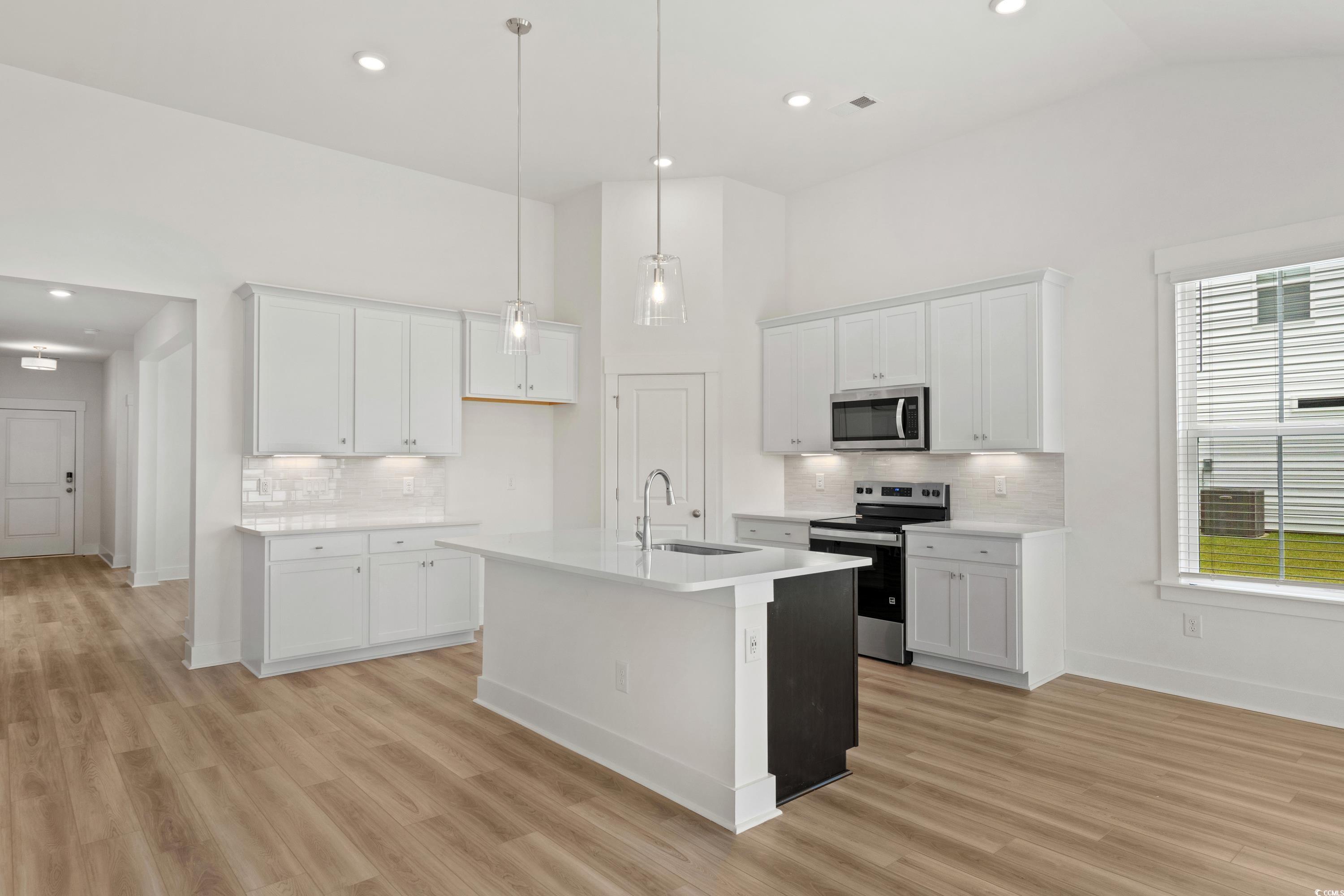 This beautiful Avondale plan offers a tranquil setting for evenings on the large covered rear porch. Looking for a 3rd car garage, this home has it. Featuring lovely and durable LVP throughout the main living areas, this home is light, bright, and airy, thanks to the 12-foot gathering room ceiling and 6-foot tall windows, complete with tons of upgrades. The first floor primary suite includes a walk in shower, dual vanity, and walk in closet. The kitchen is equipped with a quartz countertops, pendant lights over the island, backsplash, and stainless steel appliances and a walk in pantry. 2nd bedbroom and study are also on 1st floor. The second floor boasts a large bonus room, bedroom and full bathroom, Located in Chestnut Farms, only 7 miles from the beautiful beaches of Arcadian Shores, and a short drive to all the Grand Strand has to offer. **Photos of another Avondale; colors and selections may vary