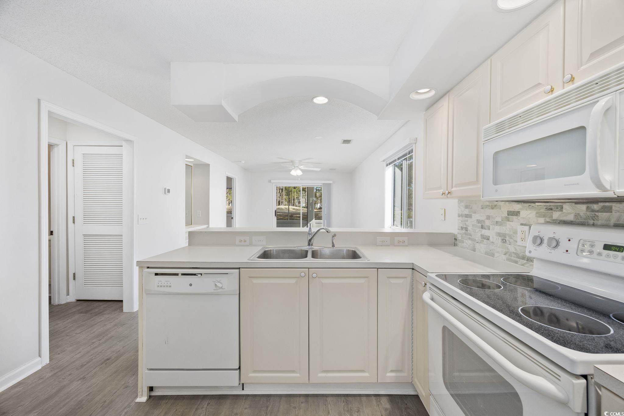 Now offered at a newly adjusted price, this beautifully updated first-floor, end-unit condo in Spinnaker Cove delivers one of the best values in the Eastport community. With fresh paint, new LVP flooring, and a bright, airy layout, this 2-bedroom, 2-bath home offers comfortable coastal living just off the 18th tee box of Eastport Golf Course. The end-unit location adds extra windows and natural light, while the screened-in porch, which is accessible from both the living room and the primary bedroom, provides a quiet spot to enjoy the peaceful golf course setting. Inside, you’ll find a spacious primary suite with a private bath, generous closets in both bedrooms, and an outdoor storage closet perfect for beach and pool gear. Residents enjoy their own community pool and hot tub just steps from the back porch, plus access to the main Eastport clubhouse and additional pool amenities. The location is unbeatable, just minutes from Little River’s waterfront dining, quaint shops, and casino boats, and less than five miles to the beaches and attractions of Cherry Grove and North Myrtle Beach. Whether you're seeking a full-time residence or a low-maintenance coastal retreat, this move-in-ready condo offers comfort, convenience, and standout value in a prime setting. Living room and bedroom (2) photos have been virtually staged. Schedule your tour today!