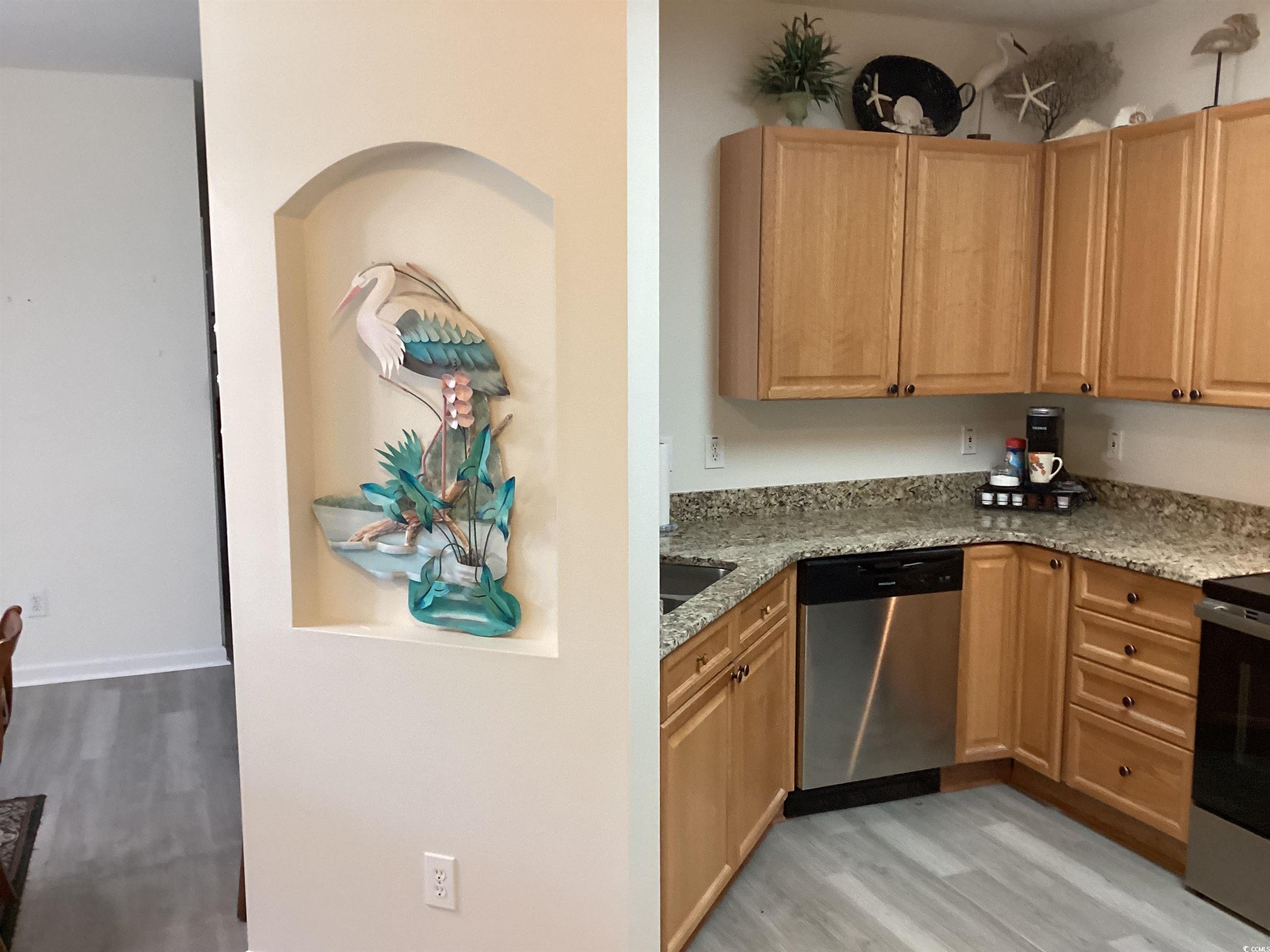 One owner family condo lightly lived in as a 2nd home. 2 bedrooms, 2 baths. Renovated kitchen.10x12 screen porch. Panoramic views of the 9th hole of Wachesaw East golf course. Gated DETACHED 10X20 DETACHED GARAGE. Occupied only a few weeks per year as a 2nd home. All appliances, vinyl plank floors, granite kitchen countertops are new within 2 years. Newly painted kitchen area. New light fixtures in entrance, hall and dining area. Greenside screen porch faces north toward 9th green. Wachesaw East is a gated community with walking trails, tennis & pickleball courts, swimming pool and exercise area. 2 gated entrances on the east and west. Located close to Tidelands Hospital and many medical facilities. Murrells Inlet restaurants, entertainment and shopping 5-10 minutes away. Huntington State Park and Brookgreen Garden a mere 15 minutes. Myrtle Beach airport is 35 minutes for your travel needs.