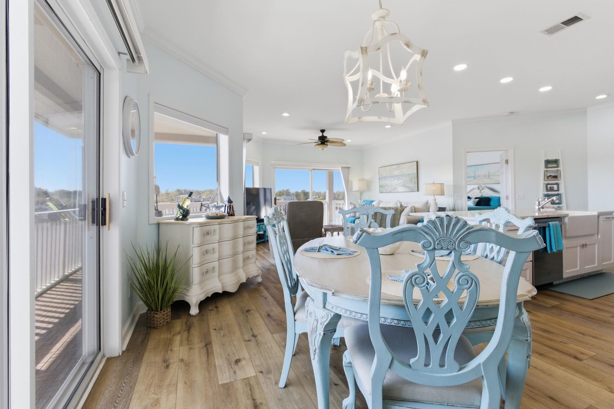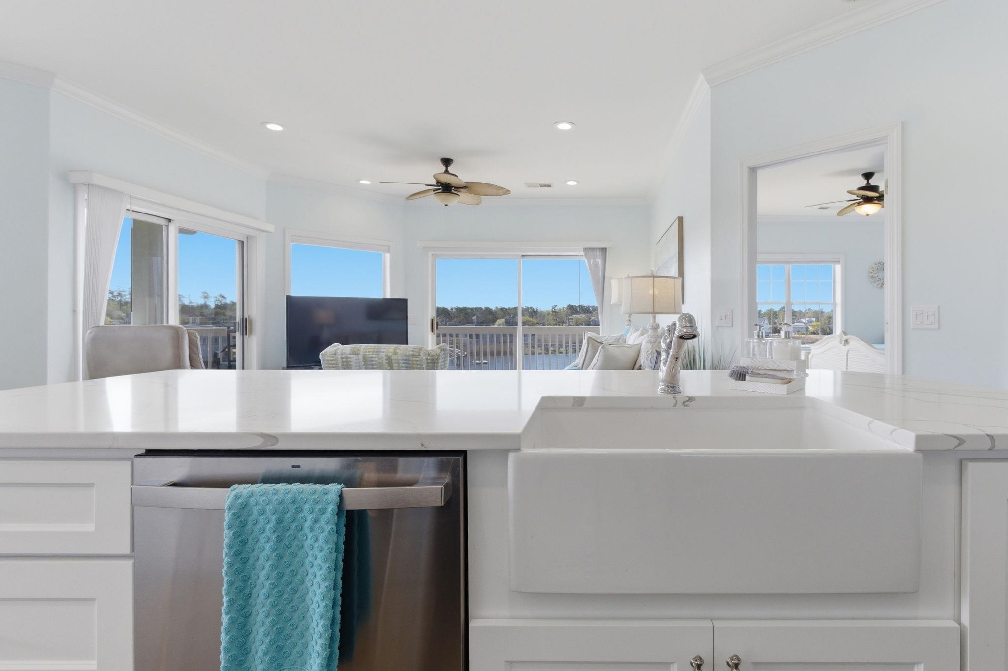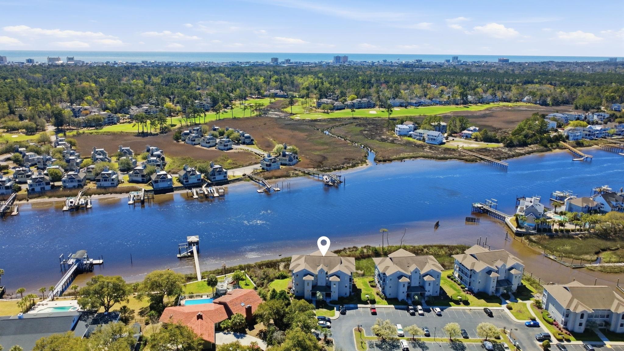 Experience panoramic Intracoastal Waterway views in Little River, South Carolina that are truly unmatched, this rare top-floor penthouse condo in the highly sought-after Eastport Golf Course community offers a level of luxury, privacy, and scenery that is nearly impossible to find. Located in an elevator building with only six residences, this third-floor, fully renovated and completely turnkey furnished condo features an expansive wraparound balcony with four sliding glass doors, all replaced with hurricane-rated glass and screens in 2019, delivering breathtaking, unobstructed waterway views from nearly every room. Inside, this property showcases a complete high end renovation completed in Spring 2023, thoughtfully designed with high-end finishes throughout, including all new luxury vinyl plank flooring, smooth ceilings (no popcorn), fresh paint, updated LED lighting, ceiling fans, and designer fixtures. The gourmet kitchen has been fully reimagined with soft-close shaker cabinetry with pot drawers and double pantry, marble countertops, farm sink, tile backsplash, and new GE stainless steel appliances, flowing seamlessly into a spacious dining area and living room with multiple access points to the balcony and endless water views. The primary suite offers stunning waterway views, private balcony access, two walk-in closets with 8-foot barn doors, and a completely reconfigured luxury bath featuring a tiled glass shower, double vanity, updated fixtures, and custom finishes, while the guest suite also features balcony access, a walk-in closet, and a beautifully renovated bathroom with a tile shower and modern upgrades. Additional improvements include a renovated laundry room with added storage, new stackable washer and dryer, new hot water heater, updated window treatments, and outdoor interlocking deck flooring. The HOA provides exceptional value, covering water, sewer, trash, premium cable and internet, exterior insurance, pest control, landscaping, management, and maintenance, along with access to two community pools in Eastport and Spinnaker Cove, creating a truly low-maintenance, lock-and-leave coastal lifestyle. This residence is being offered fully furnished, including all new living room furniture, bedroom suites, dining furniture, fully stocked kitchen, TVs, linens, and select décor, making it completely move-in or rental ready from day one. Set within the beautifully maintained Eastport Golf Course community, residents enjoy scenic surroundings, peaceful coastal charm, and close proximity to one of the area’s most enjoyable public golf courses, all while overlooking the Intracoastal Waterway with views of Tidewater Golf Club across the water. Living in Little River, SC offers a unique blend of relaxed coastal lifestyle and convenience, known for its waterfront dining, fishing, boating, local marinas, and the famous Blue Crab Festival, all just minutes from North Myrtle Beach and Myrtle Beach attractions. This property is ideal for a boat lover, golf enthusiast, or buyer seeking a luxury second home or turnkey investment property, offering the ability to enjoy stunning views, low-maintenance living, and immediate use or rental potential truly a one-of-a-kind waterfront penthouse opportunity.