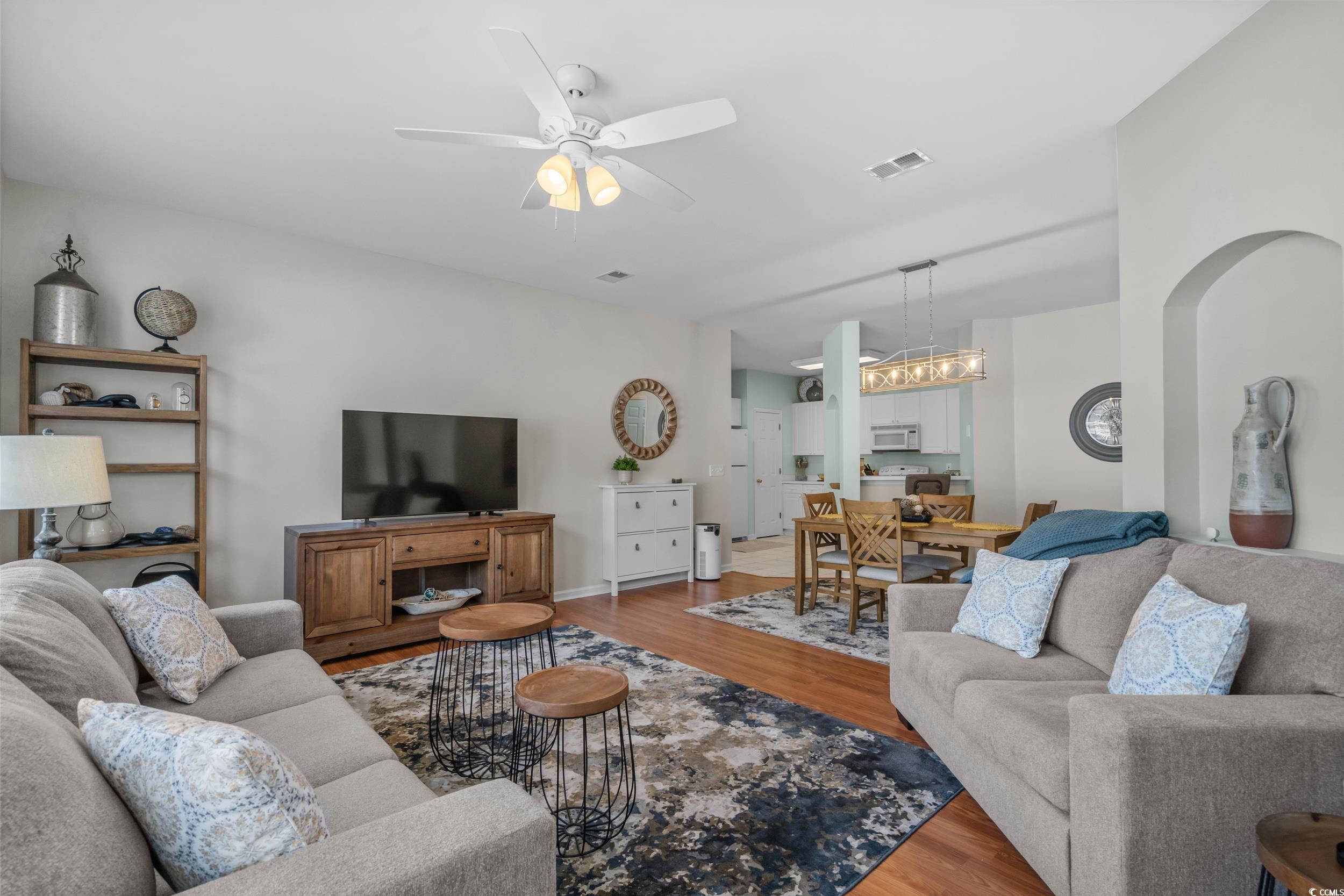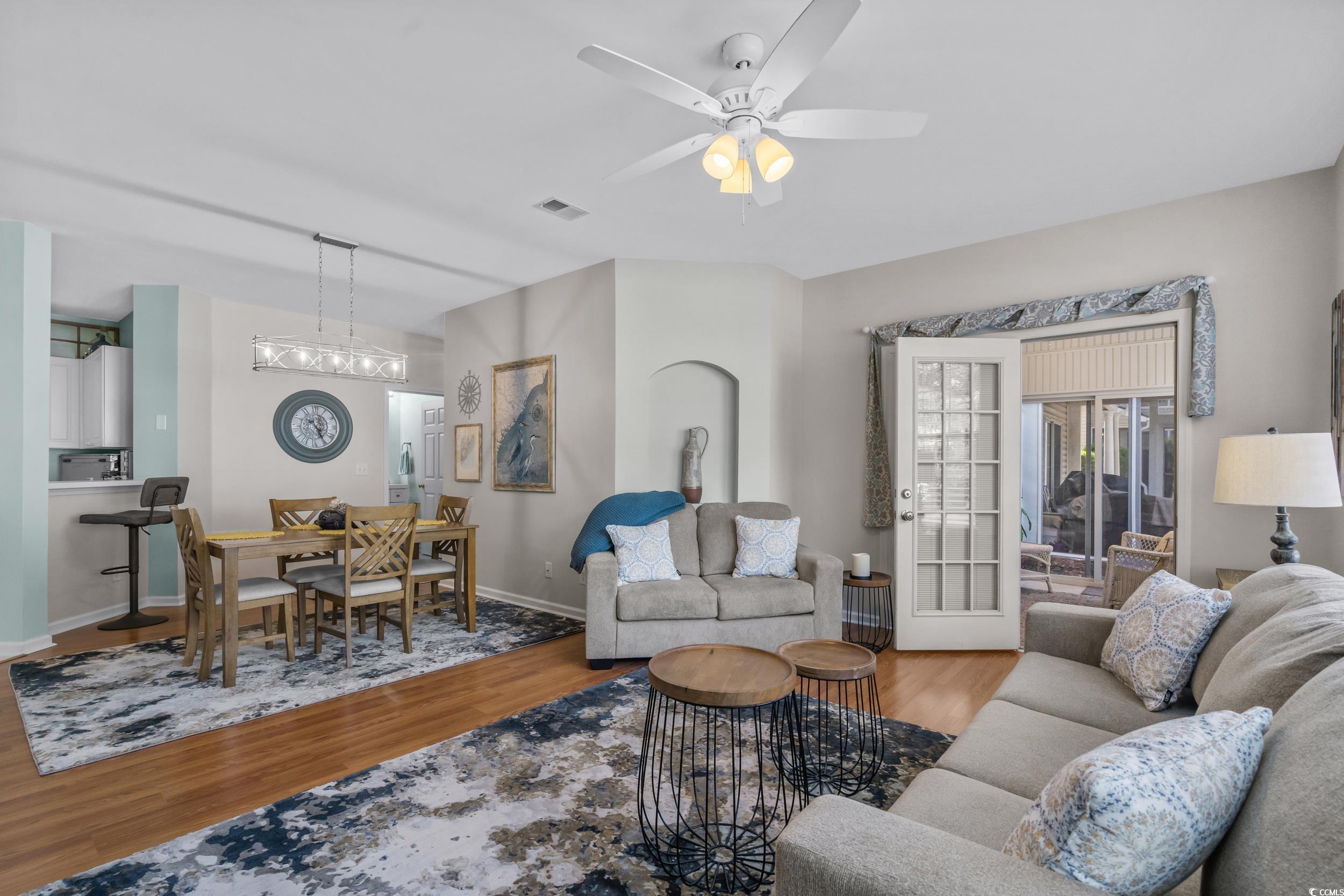 Ground Floor Golfing Retreat in Wachesaw Plantation East, Gated Luxury & Coastal Comfort! Experience the perfect blend of resort style living and everyday convenience in this beautifully updated 2-bedroom, 2-bath ground-floor condo located in the prestigious gated community of Wachesaw Plantation East in Murrells Inlet. Surrounded by lush landscaping and a championship 18-hole golf course, this home offers a peaceful setting just minutes from the Atlantic shoreline. Inside, a bright, open-concept living and dining area is framed by updated flooring and an abundance of natural light. The sleek kitchen boasts crisp white cabinetry, generous counter space, and a functional design suited for everything from quiet mornings to lively gatherings. The primary suite features a private en-suite bath and generous closet space, while the second bedroom and full bath are equally well-appointed. Every detail reflects thoughtful updates and a clean, coastal aesthetic. Beyond your door, enjoy serene golf course views and access to exceptional amenities: Championship 18-hole golf course Two outdoor pools Fully equipped fitness center Tennis courts Scenic walking & biking trails 24/7 gated security All of this is within a short stroll to Tidelands Waccamaw Hospital and just minutes from the MarshWalk, beaches, shopping, and award-winning dining.