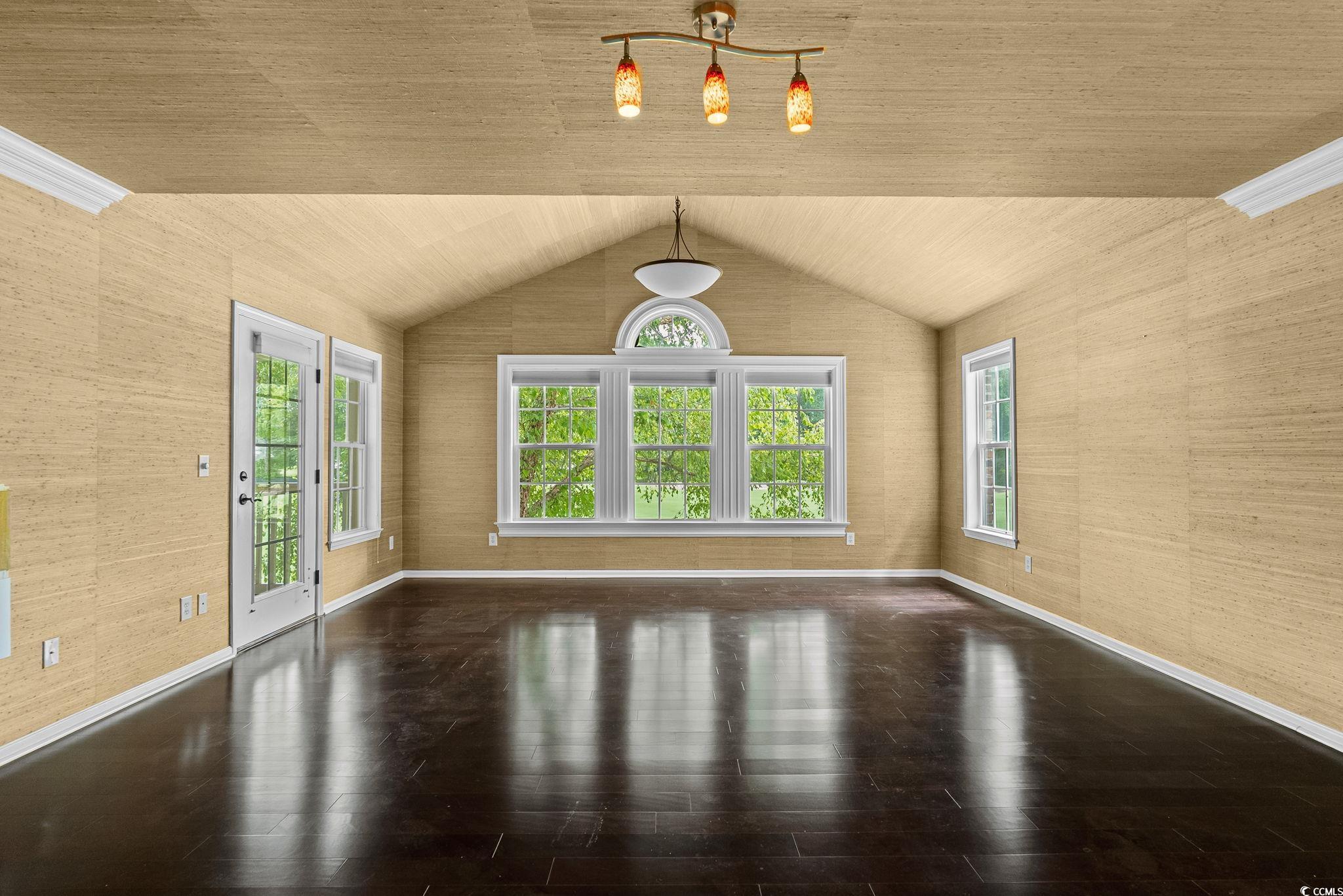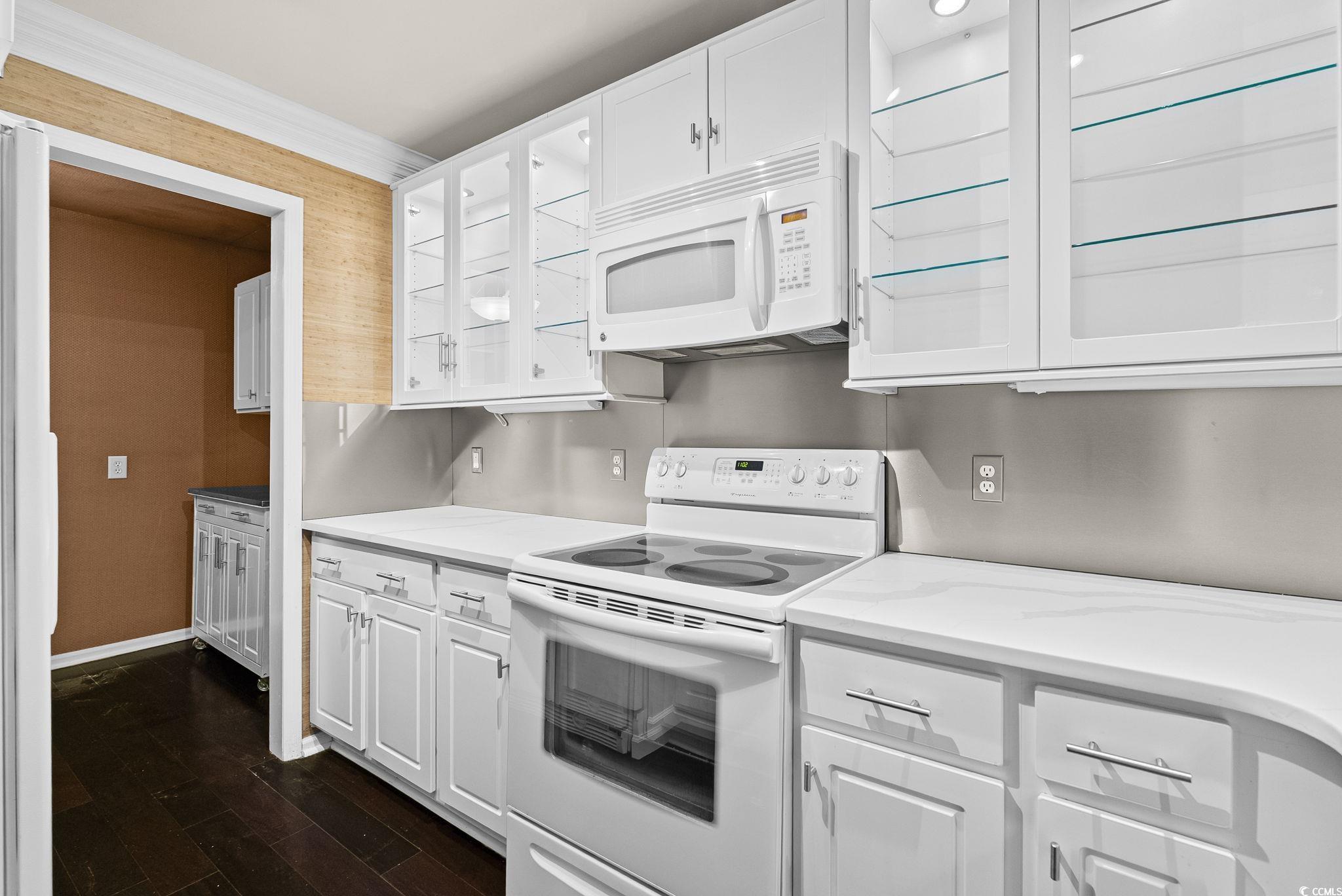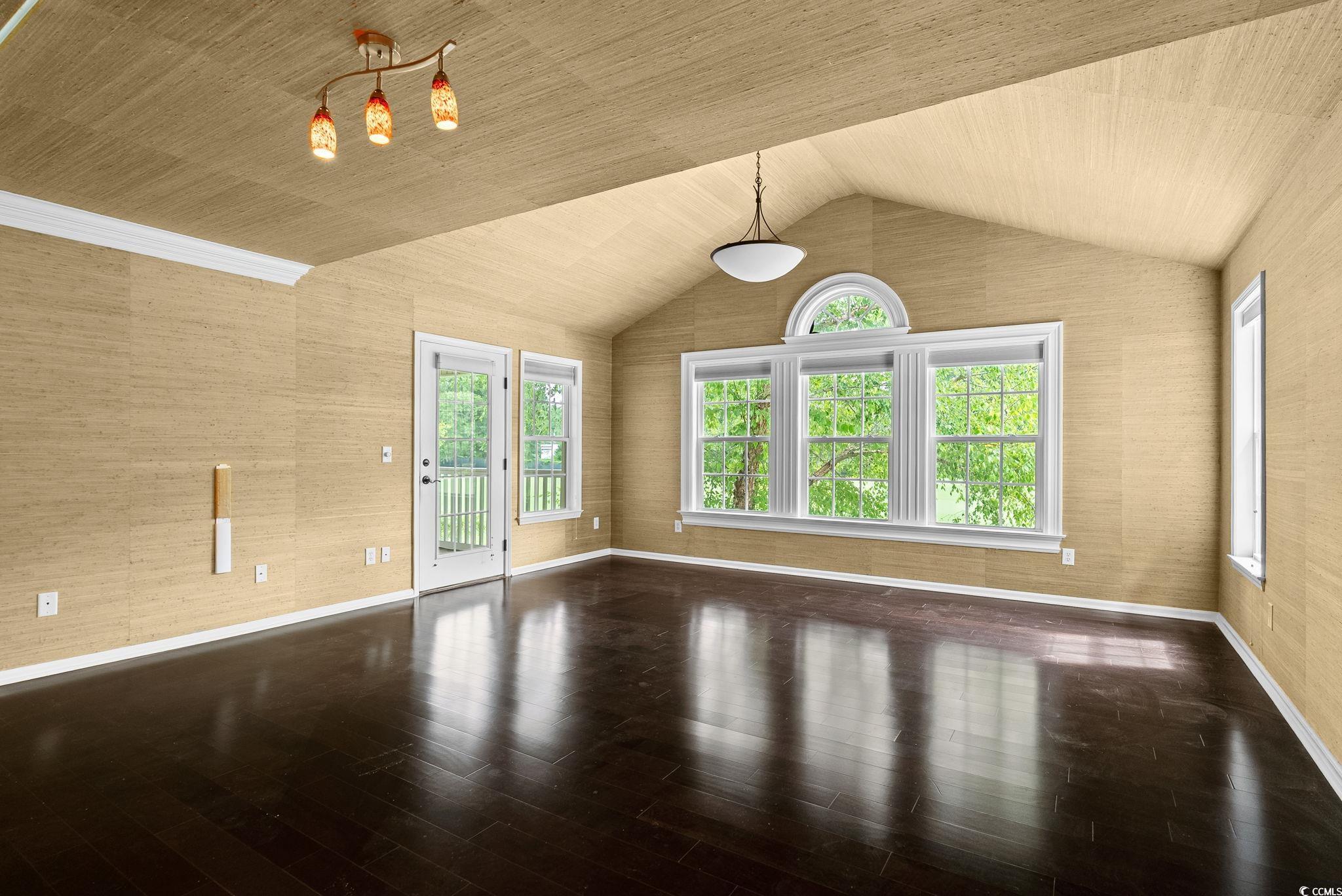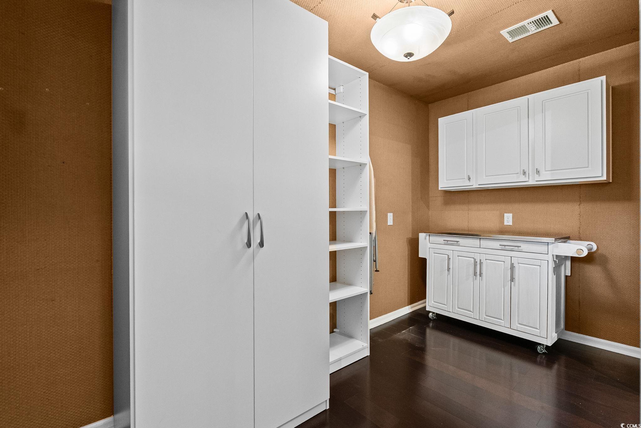 Discover your dream home in Wyngate- located at Wachesaw East in Murrells Inlet. This gated-community condo was updated by the current owner/interior designer and has vaulted ceilings for a spacious feel- with breathtaking private golf course views. It has decorative columns, custom molding, and hardwood flooring throughout the living area, brand new berber carpeting in bedrooms, dimmable designer light fixtures, new quartz countertops, custom-templated stainless steel kitchen backsplash, and ‘California Closets’ installed in pantry room, guest rooms, and both walk-in master bedroom closets. Wachesaw East amenities consist of a large community pool, fitness room, tennis/pickleball courts and walking trails. Ideal location nears the beach, Inlet Marsh-walk, Brookgreen gardens, boat landing on the Intracoastal waterway, amazing restaurants and Waccamaw hospital. Truly, one of a kind! Living room, dining room and screened-in porch have vitually staged pictures.