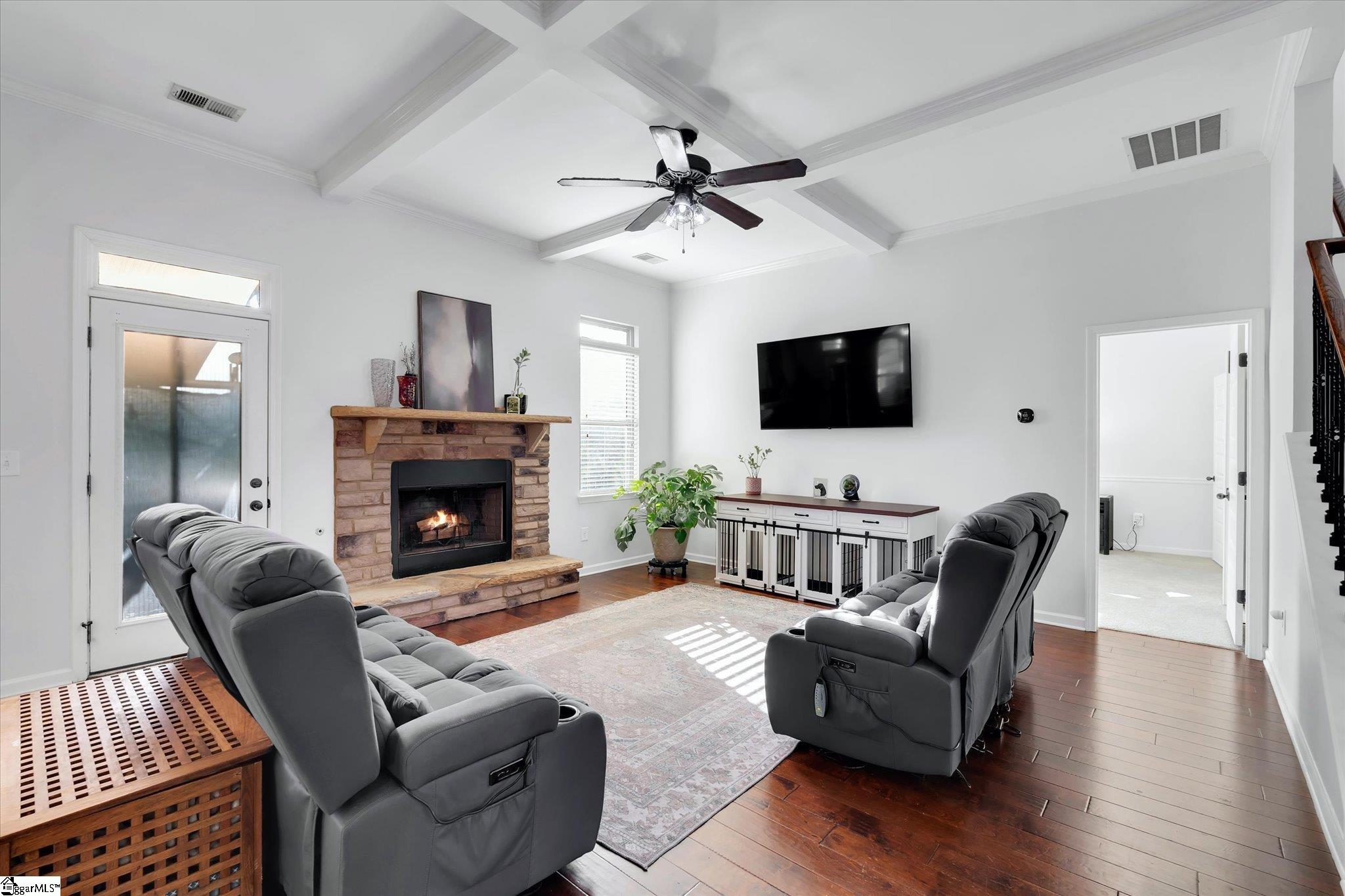 Welcome to 445 Jameswood Court, a beautiful 5-bedroom, 4.5-bathroom home tucked away at the end of a quiet cul-de-sac in one of Greer’s most desirable neighborhoods. With over 4100 square feet of thoughtfully planned living space, this home offers a wonderful blend of privacy, elegance, and everyday comfort. Surrounded by mature trees and with no neighbors behind or on one side, it feels like your own peaceful retreat while still being just minutes from all the conveniences of Greer and Greenville. Step inside and you’re immediately greeted by an open, inviting floor plan filled with natural light. Warm hardwood floors and high ceilings set the tone, and the spacious living room quickly becomes the heart of the home. The stone fireplace adds a cozy touch and flows seamlessly into the gourmet kitchen, where you’ll find wood cabinetry, granite countertops, double ovens, stainless steel appliances, and a generous island that’s perfect for cooking, gathering, or simply chatting with friends and family. The breakfast area is wrapped in windows overlooking the private backyard, making it a lovely spot to enjoy your morning coffee. The primary suite is conveniently located on the main floor and feels like a true retreat. With its tray ceiling, sitting area, and spa-like bathroom complete with dual vanities, a soaking tub, separate shower, and a large walk-in closet, it's designed for comfort and relaxation. Upstairs, you’ll find three more spacious bedrooms, each offering flexibility for family, guests, or whatever your lifestyle needs, think home office, hobby room, or playroom. One of the standout features of this home is the finished walk-out basement. This space is perfect for entertaining or simply unwinding. With a custom wet bar, a large recreation area, and direct access to the patio and backyard, it’s easy to imagine game nights, movie marathons, or weekend gatherings here. The basement also includes abundant storage and an additional bedroom with ensuite access, making it ideal for guests, in-laws, or even a private home office setup. Outdoor living is a treat at 445 Jameswood Court. The spacious deck offers peaceful wooded views and is perfect for grilling, relaxing, or hosting a summer dinner outdoors. The fenced backyard provides both privacy and functionality, great for children, pets, gardening, or simply enjoying the quiet surroundings. The lower patio offers another great spot to unwind or entertain. All of this is located just minutes from shopping, dining, parks, GSP airport and highly rated schools, giving you the perfect balance of convenience and tranquility. This home truly checks all the boxes: generous space, modern finishes, exceptional storage, a fantastic layout, and a setting that feels private and inviting. 445 Jameswood Court isn’t just a place to live, it’s a place to settle in, relax, and enjoy. With its thoughtful design, finished basement, and beautiful natural surroundings, it’s ready for its next owners to fall in love and make it their own.