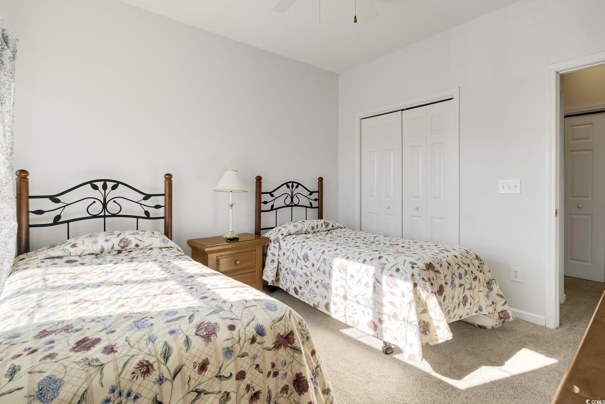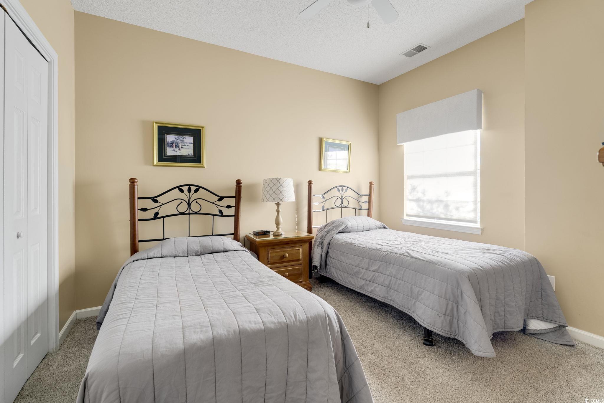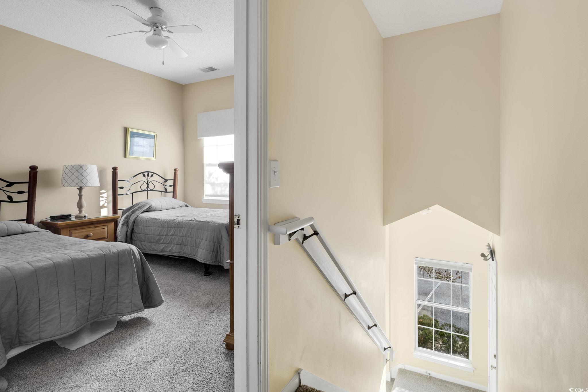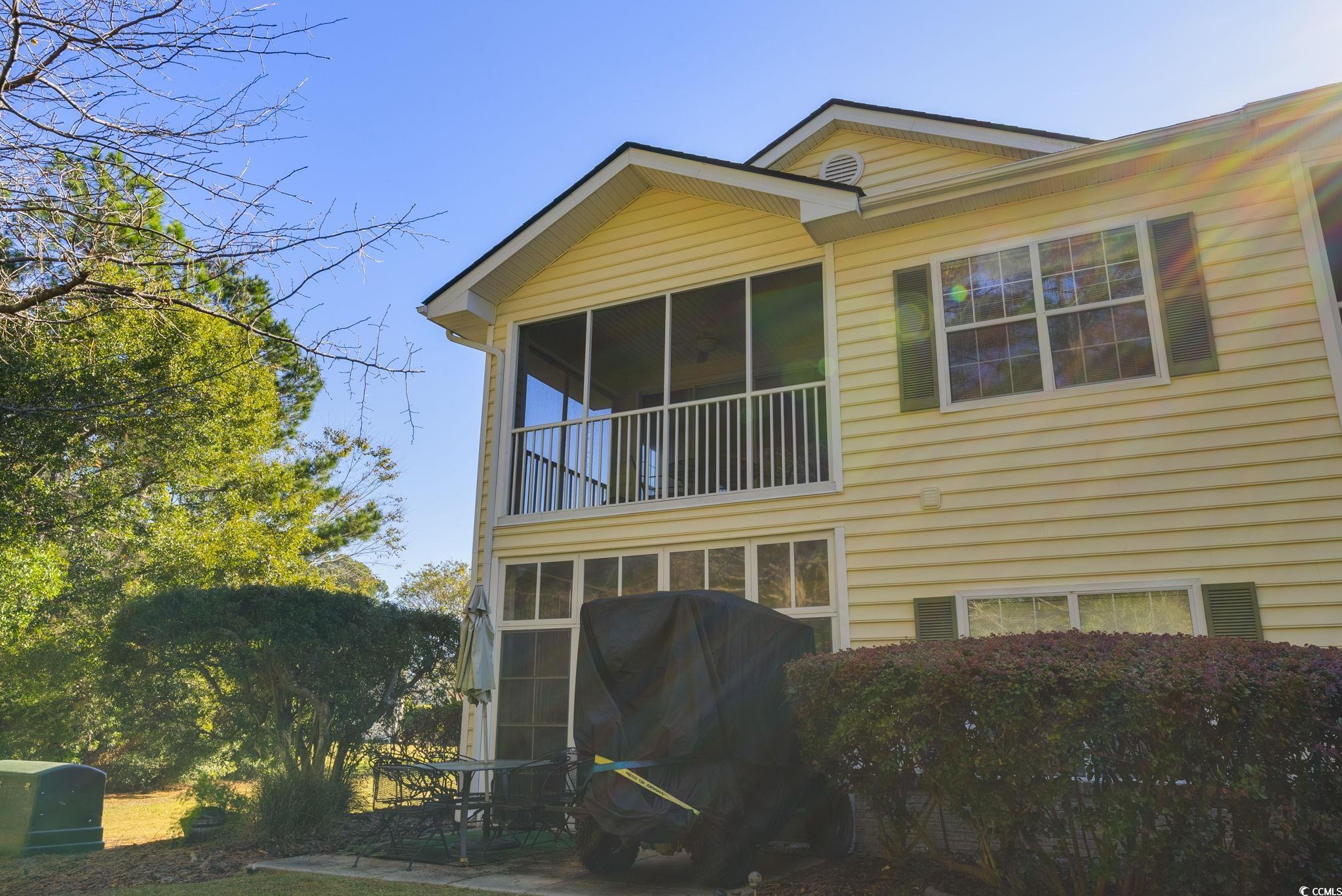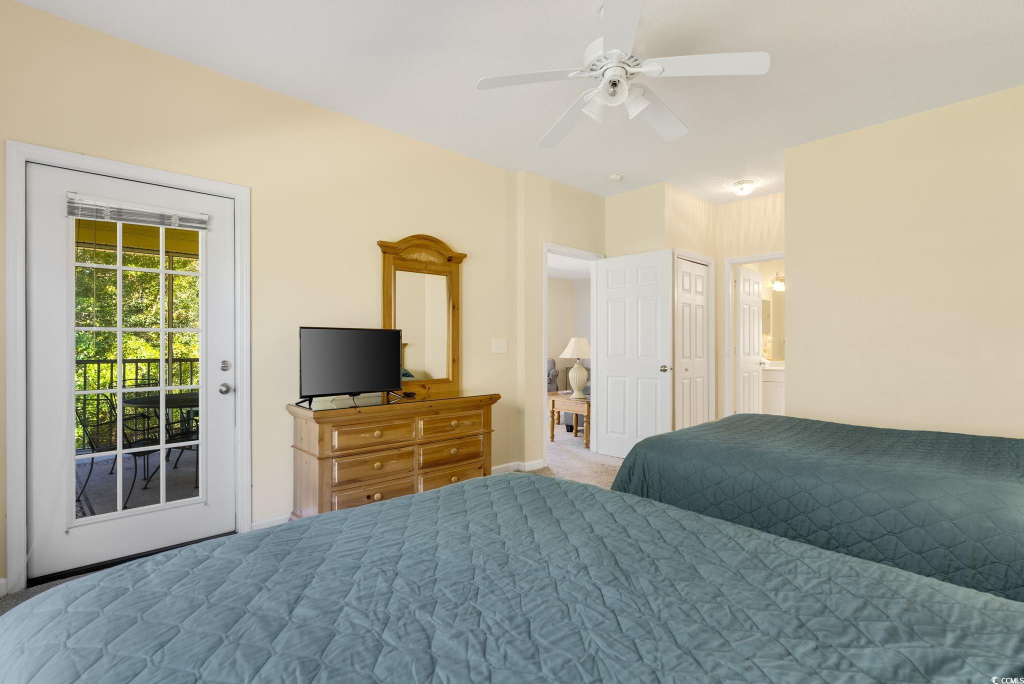 Welcome to Legends – A Premier 1,330-Acre Master-Planned Community Offering Resort-Style Living, Dining, and Championship Golf. This beautifully maintained second-floor end unit features 3 bedrooms and 2 full bathrooms, with a private entrance and a convenient owner’s storage closet at the base of the stairs—perfect for storing golf gear, beach essentials, or seasonal items. As you ascend to the single-level residence, you’ll find two bedrooms located on either side of the entry hall, with the main living area directly ahead. The spacious kitchen is equipped with stainless steel appliances, a pantry, tile flooring, generous counter space, a breakfast bar, and a cozy eat-in area. Across from the kitchen is a designated dining space ideal for entertaining. The open-concept living area flows seamlessly onto a screened-in porch—an inviting spot for relaxing or socializing with guests. Being an end unit, it benefits from additional natural light through side-facing windows. The home features carpet in the living and bedroom areas and is offered fully furnished for your convenience. Enjoy serene wooded views in a private and peaceful setting, while being just minutes from two on-site dining options: the acclaimed Legends Resort and the popular Ailsa Pub. Legends is centrally located near shopping, dining, and just a short 18-minute drive to the beach. Gleneagle units at Legends are highly sought after and do not stay on the market long. Don’t miss your opportunity—schedule a private showing today and experience the Legendary Lifestyle.
