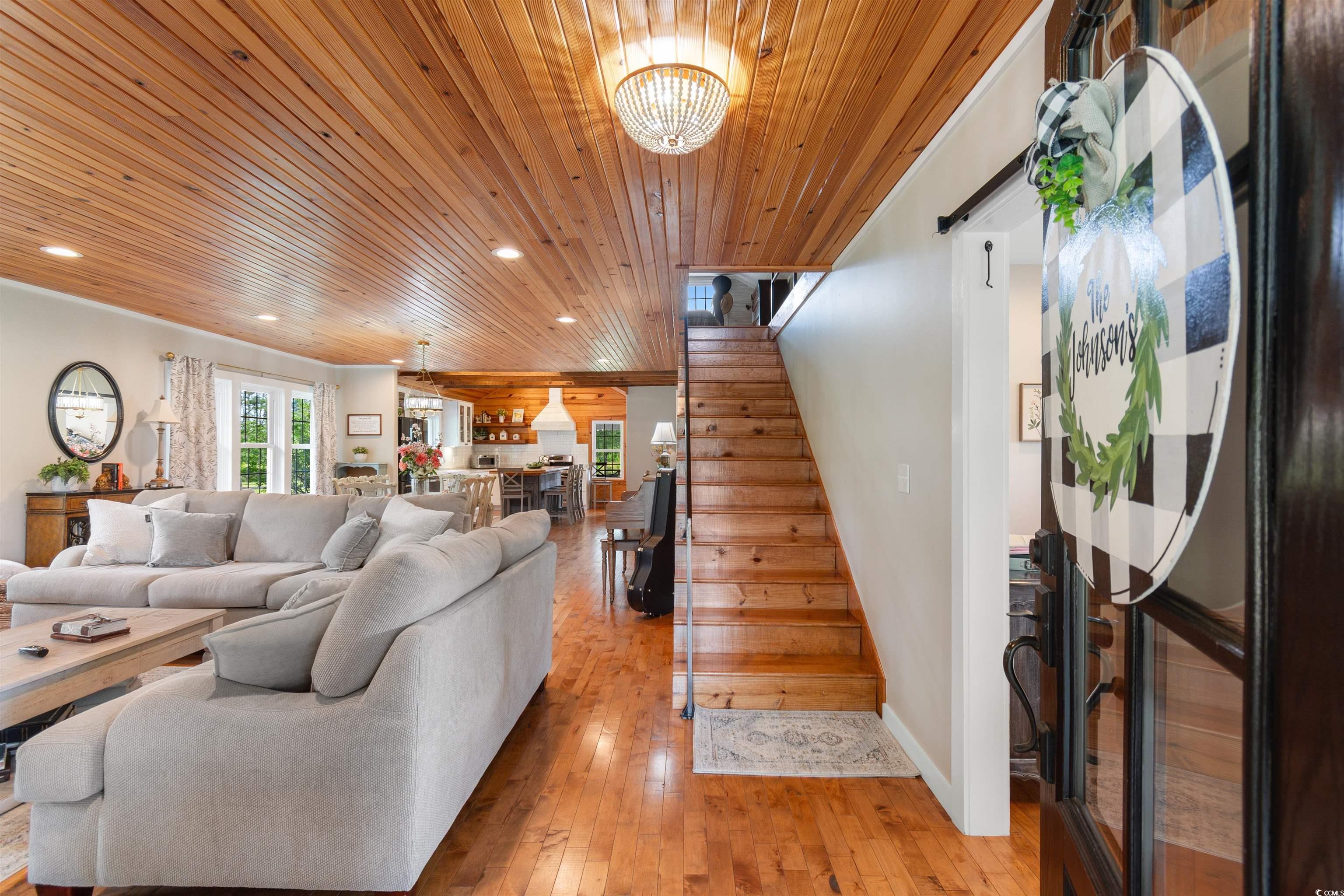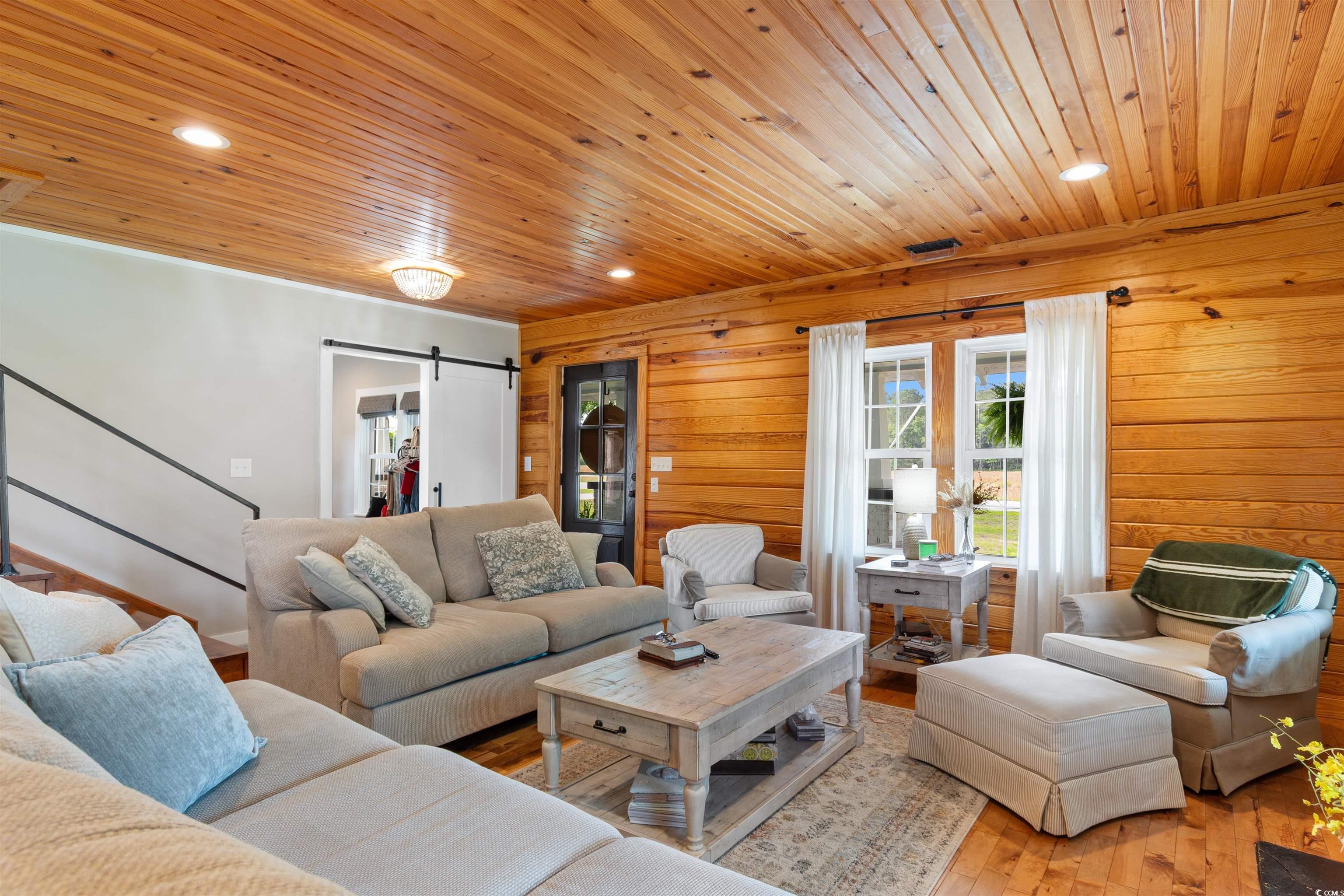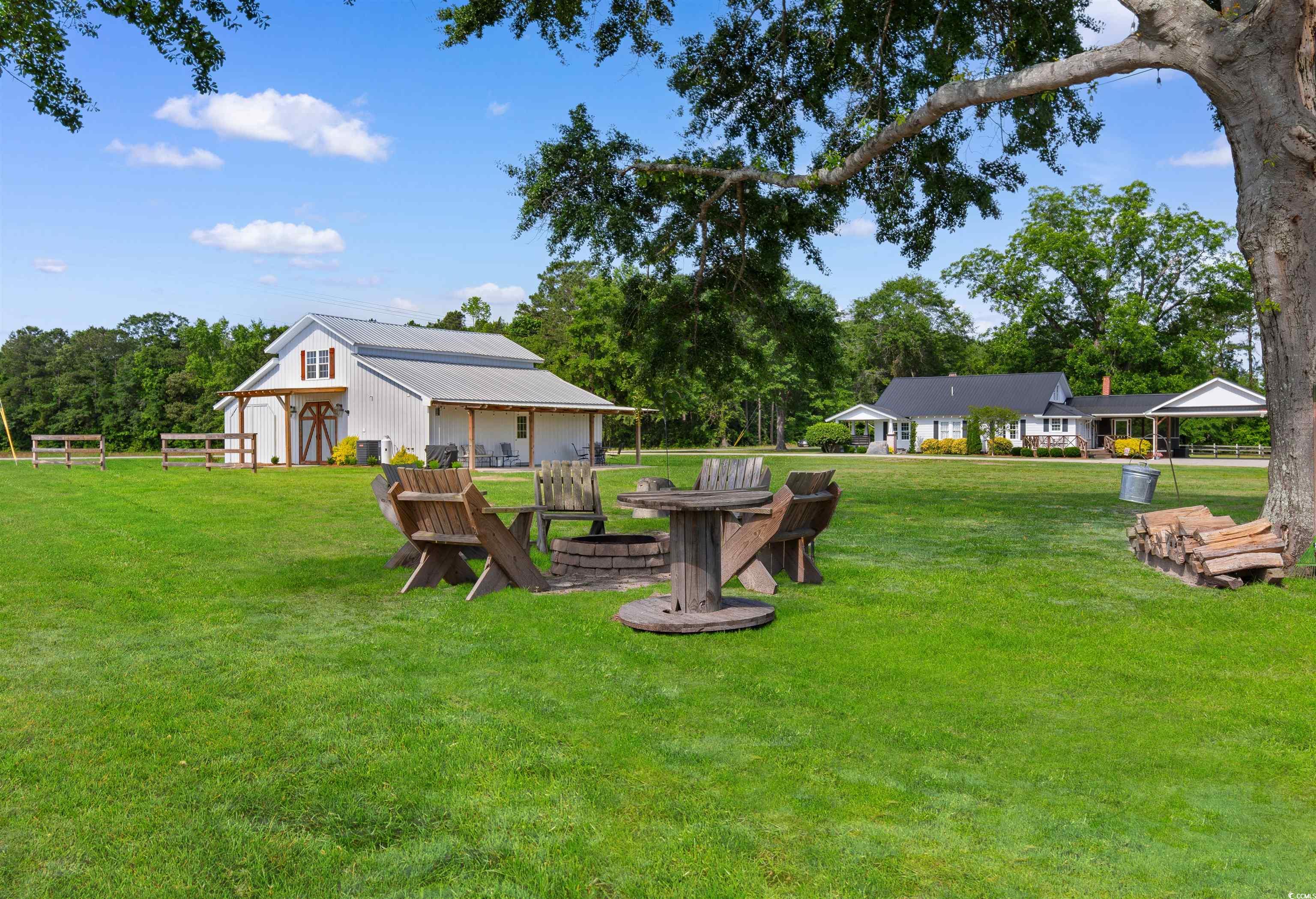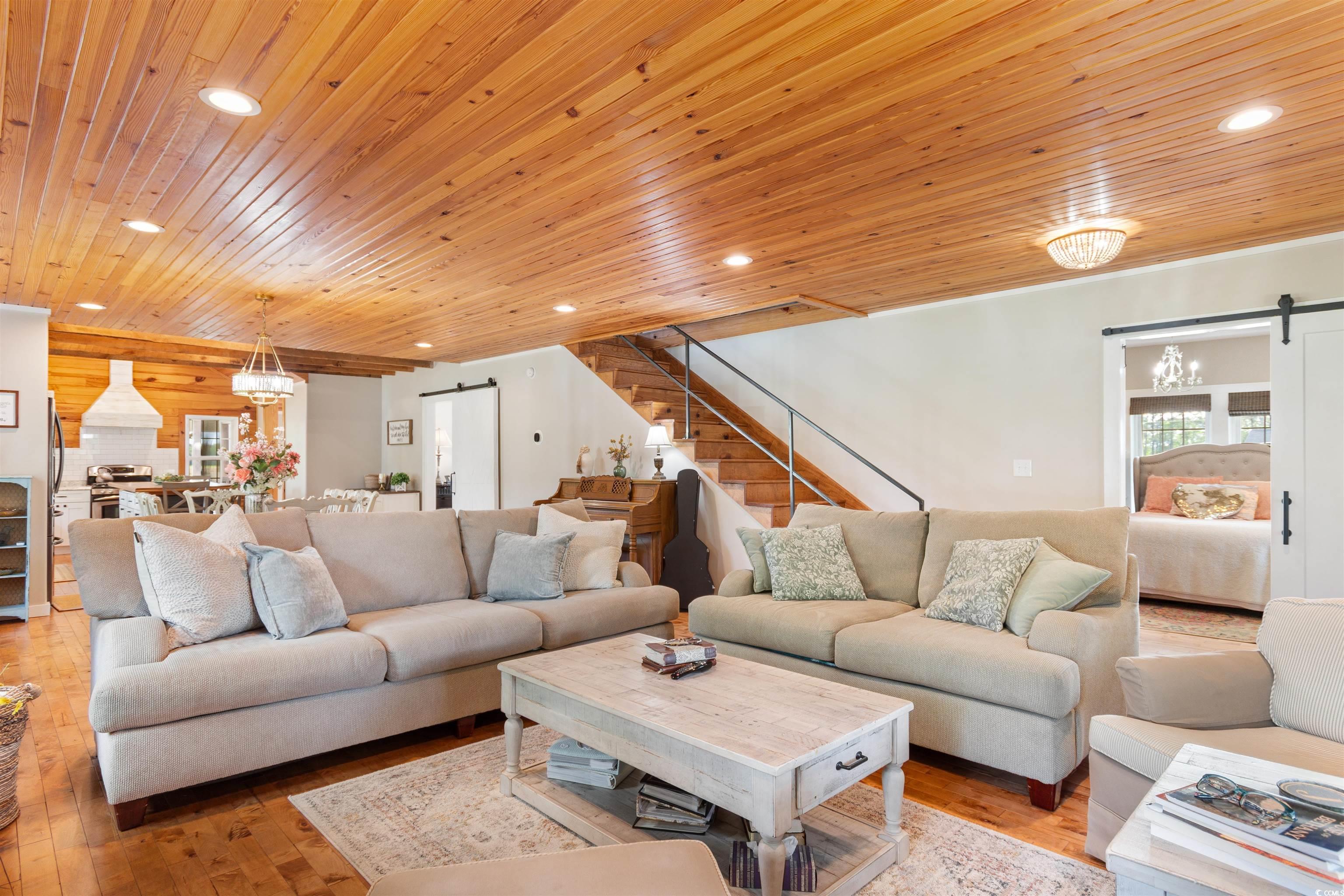 Welcome to your dream! WOW!! This one is a modern farmhouse retreat! What began as an old, abandoned farmhouse has been lovingly transformed into a charming, updated home while preserving the warmth and character of its original time with wood floors and ceilings. From the moment you step onto the inviting wrap-around front porches, you’ll feel the timeless beauty and craftsmanship this home offers. The heart of the home follows a classic shotgun-style layout, allowing you to see from the front porch straight through to the spacious screened back porch. A massive kitchen island serves as the hub for gathering with family and friends, making it the perfect spot for meals, conversations, and memories. Downstairs, you’ll find two comfortable bedrooms, including the primary, and a beautifully renovated bathroom featuring dual sinks and a stunning clawfoot soaking tub. Upstairs is an open, versatile space stretching the entire depth of the home, currently serving as two additional bedrooms. This property is made for enjoying South Carolina’s sunny weather. Sip your morning coffee on the wrap-around porches overlooking lush acreage and a fenced horse pasture, or unwind by the outdoor fireplace on the screened porch during cool evenings. And there’s so much more this one has to offer — a fully restored old barn has been converted into a stunning event venue with a full kitchen, full bath, and enough space for 50 guests. Upstairs offers a cozy bedroom and living area, ideal for overnight stays or a hang out for the teens. Whether you keep it for personal gatherings or turn it into a profitable rental space for parties, showers, or events, the possibilities are endless. Additional features include: Hardy plank siding with vinyl gables. Roof and dual-zone HVAC only 10 years old with gas pack. Mature trees and beautiful landscaping. Multi-car carport and a separate 3-bay garage with lean-to spaces. Fenced area for horses. A charming she-shed for hobbies or storage All of this located in the desirable Aynor School District, just 10 miles outside of town on a quiet, scenic road where farming is still a way of life and neighbors value both community and privacy — with NO HOA. Just 30 miles from the beaches and an easy 30-minute drive to historic downtown Conway. Don’t miss your chance to own this one-of-a-kind country estate. Schedule your private showing today!