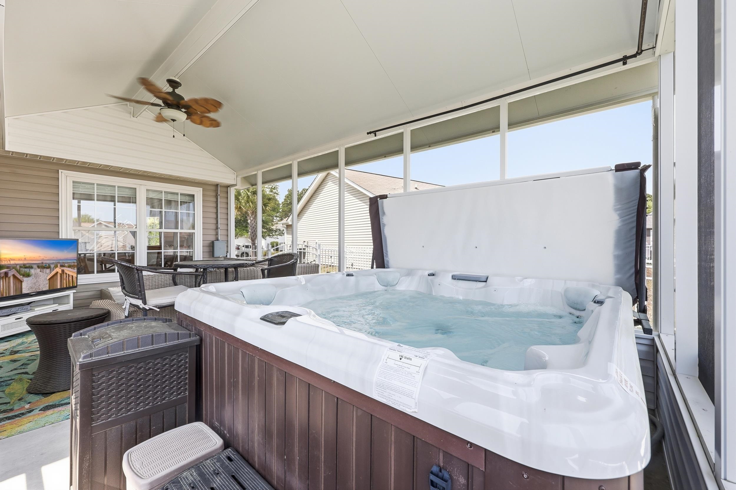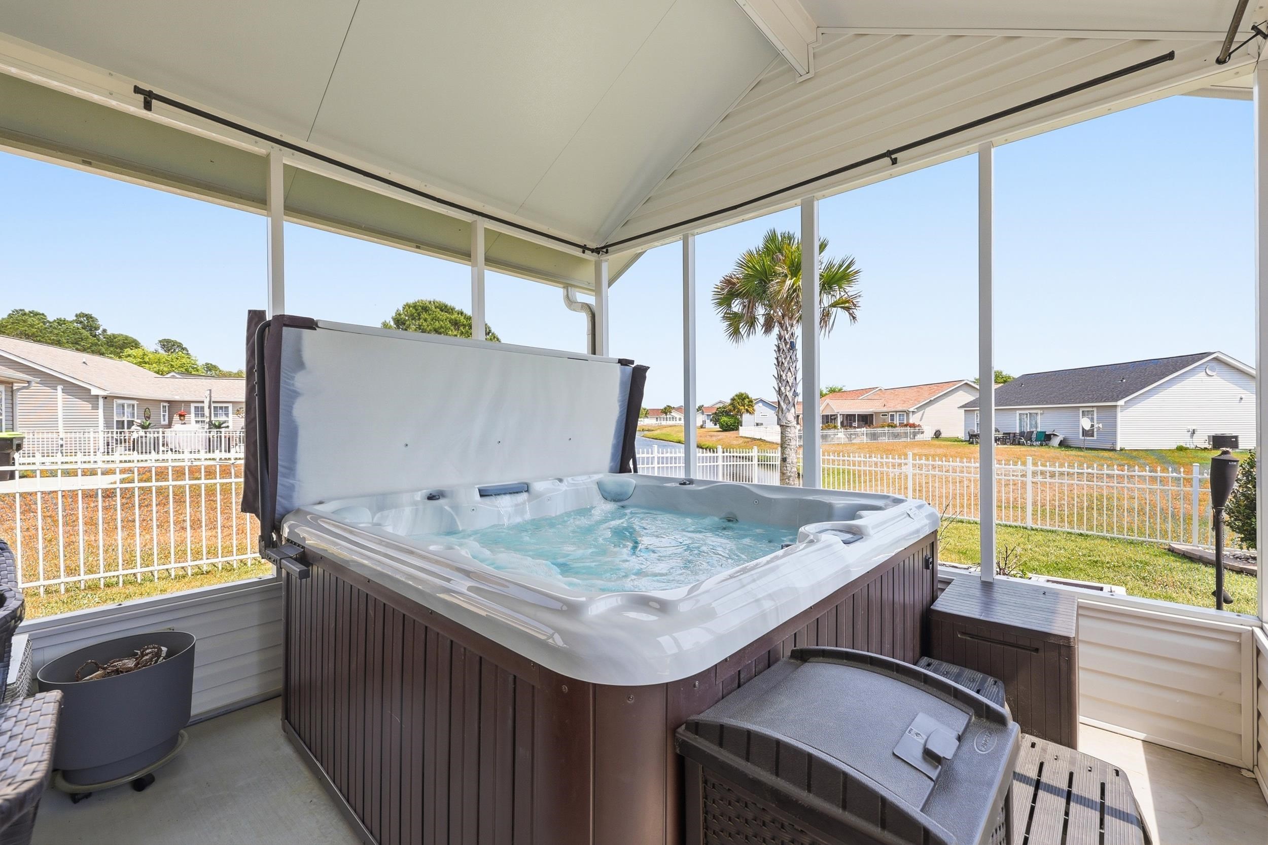 Located in the highly sought-after Carolina Forest area of Myrtle Beach, SC, this home offers the perfect blend of coastal lifestyle and everyday convenience. Just a short drive to the beautiful shores of the Atlantic Ocean, you’ll enjoy easy access to sandy beaches, top-rated golf courses, shopping, dining, and entertainment, while still being tucked away in a peaceful, established community. Welcome to this beautifully upgraded home in the desirable Walkers Wood subdivision. This property has been extensively updated and thoughtfully improved, offering both style and peace of mind. Major exterior upgrades include a 2021 roof with lifetime warranty shingles, new gutters and downspouts, added concrete slab in the backyard, widened driveway, and a charming brick walkway. The fully fenced yard features lush Bermuda grass, new landscaping, and three 15-foot palm trees, all overlooking a serene pond view. Enjoy outdoor living on the screened porch or relax in the spacious 7-person hot tub, which conveys and has its own dedicated circuit breaker. Inside, the home boasts new luxury vinyl plank flooring throughout the Carolina room, living room, and hallways, along with updated tile flooring in the bathrooms. The kitchen has been beautifully refreshed with new cabinets featuring soft-close doors, granite backsplash, and newer appliances including dishwasher, microwave, oven, and refrigerator. Washer and dryer also convey. Additional interior upgrades include new light fixtures throughout, an electric fireplace in the living room, and updated bathroom features such as a new vanity and toilet. The garage has been enhanced with a utility sink and installed cabinetry for added storage. Comfort and efficiency are key with new ductwork, insulation, attic access barriers, and a 2022 HVAC and heating system. The home also features a 2022 irrigation system, whole-home surge protection, and a full security system with window sensors, front and rear cameras, and monitoring through Vector Security. Residents of Walkers Wood enjoy access to community amenities including a pool and playground, all within the sought-after Carolina Forest area close to everything Myrtle Beach has to offer. Come check it out—you have to step foot inside to truly appreciate all this home has to offer. All measurements are estimates and buyer and buyer agent are responsible for verification.