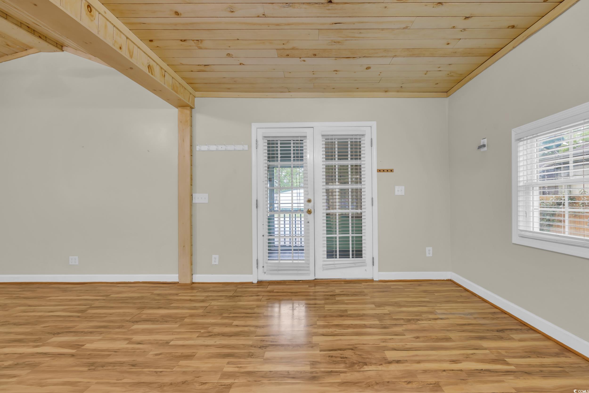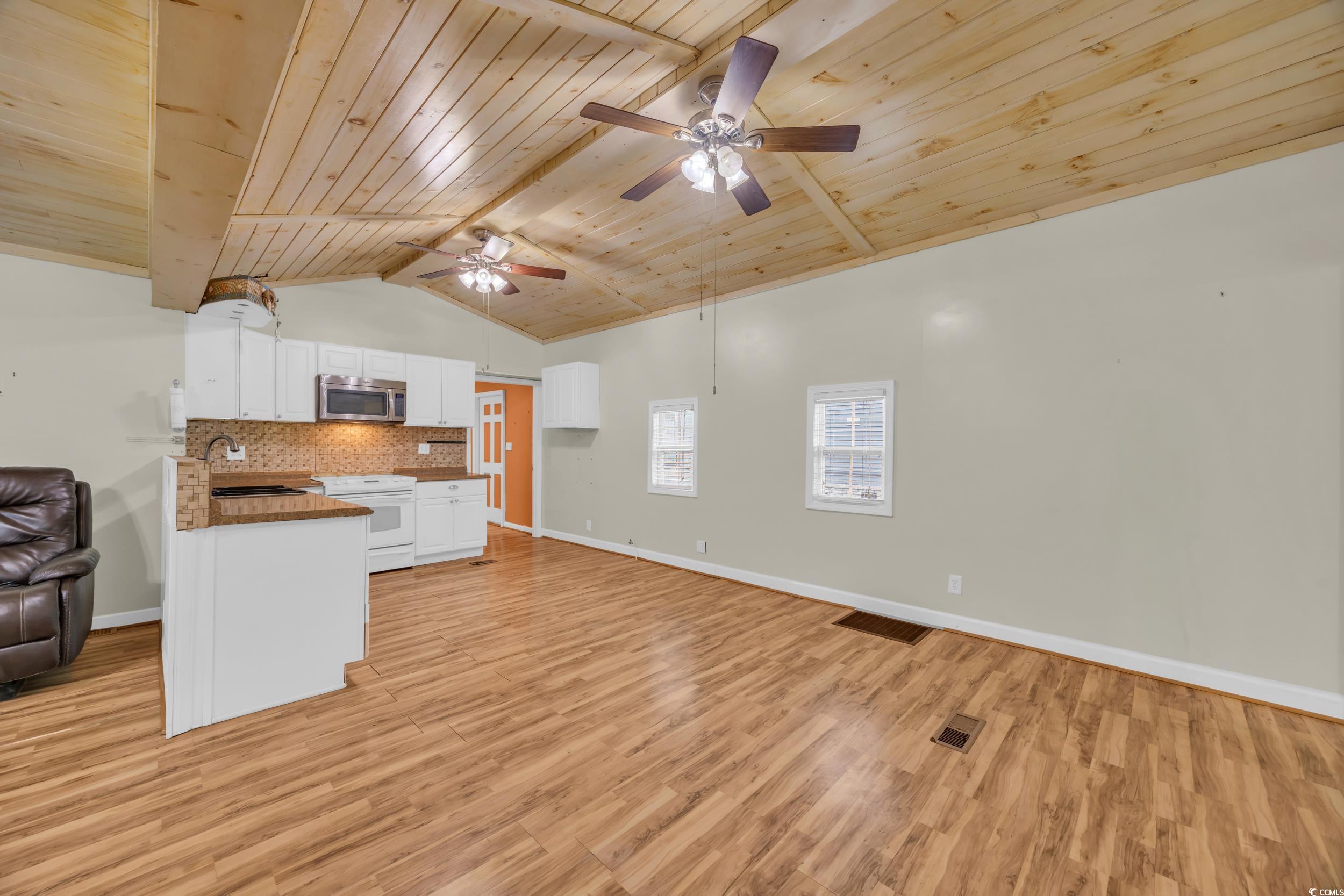 RARE FIND!!! NO HOA & ON DEEDED LAND!!! Located in the sought-after Creekside community in North Myrtle Beach, this beautifully updated 2-bedroom, 2.5-bath manufactured home offers the perfect blend of comfort, style, and convenience—all on deeded land with NO HOA! This home was thoughtfully updated approx. 15 years ago with 2x4 construction of new walls, and 2x8 flooring for added durability. Additionally, the wiring, plumbing, doors, and windows were updated with insulation added for year-round comfort. Inside you’ll love the gorgeous whitewashed tongue-and-groove walls and vaulted 11 ft. ceilings. In addition to the two spacious bedrooms, there’s a flex room perfect for a small bedroom, home office, or creative space. The exterior features low-maintenance Hardi board siding, giving the home great curb appeal and lasting protection. The detached 1-car garage is a standout, fully equipped with heating and air conditioning, shelving, and generator-ready wiring—ideal for a workshop, studio, or secure storage. Whether you're looking for a primary residence, vacation home, or investment property, this home checks all the boxes. Just a quick golf cart ride to the beach, restaurants, and all the activities North Myrtle Beach has to offer! Don’t miss your chance to own a slice of paradise just minutes from the beach—without the restrictions of an HOA! All measurements are approximate. Buyer and buyers agent responsible for verification of all information.