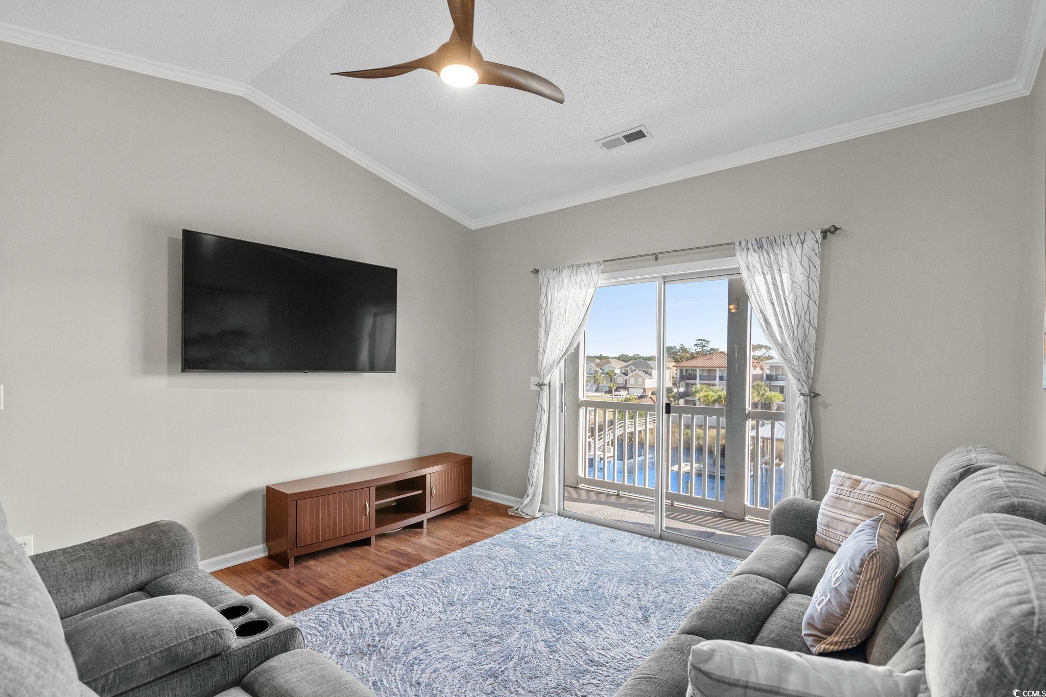 Live the dream in this fully furnished 3-bedroom, 2-bath condo with sweeping views of the channel leading to the Intracoastal Waterway. Imagine sipping morning coffee on your private balcony as boats drift by—pure paradise! Step inside to a bright, open layout with laminate floors throughout and an updated kitchen featuring sleek countertops and stainless steel appliances. The spacious primary suite includes his-and-hers closets plus direct balcony access for the ultimate retreat. Located in the gated Carolina Yacht Landing community, enjoy resort-style amenities like a pool, clubhouse, and fitness center. Lease private or community boat slips, park your golf cart, and take an easy ride to the beach, restaurants, shopping, and all the fun the area offers. This turnkey waterfront gem won’t last — schedule your showing today!