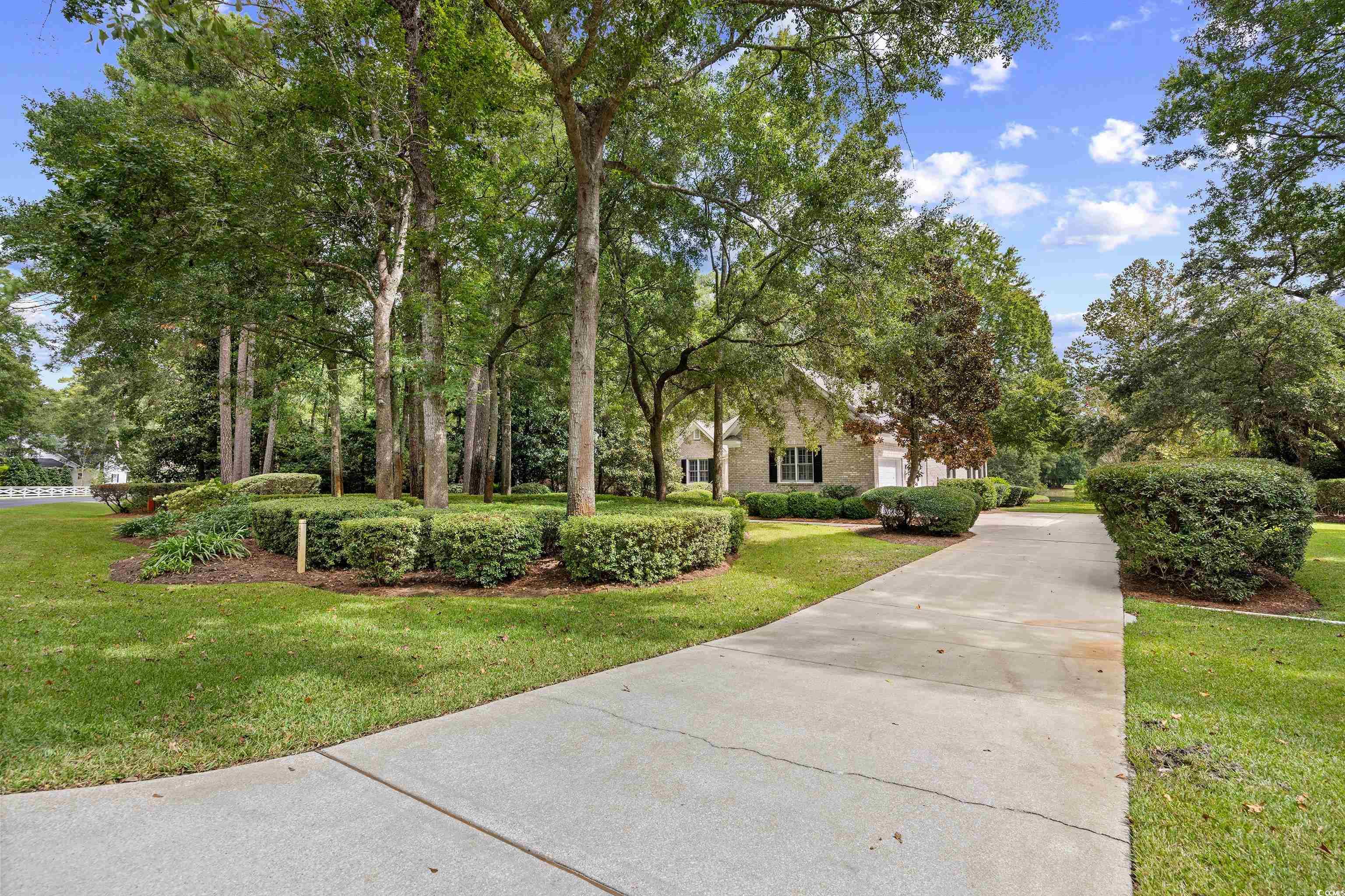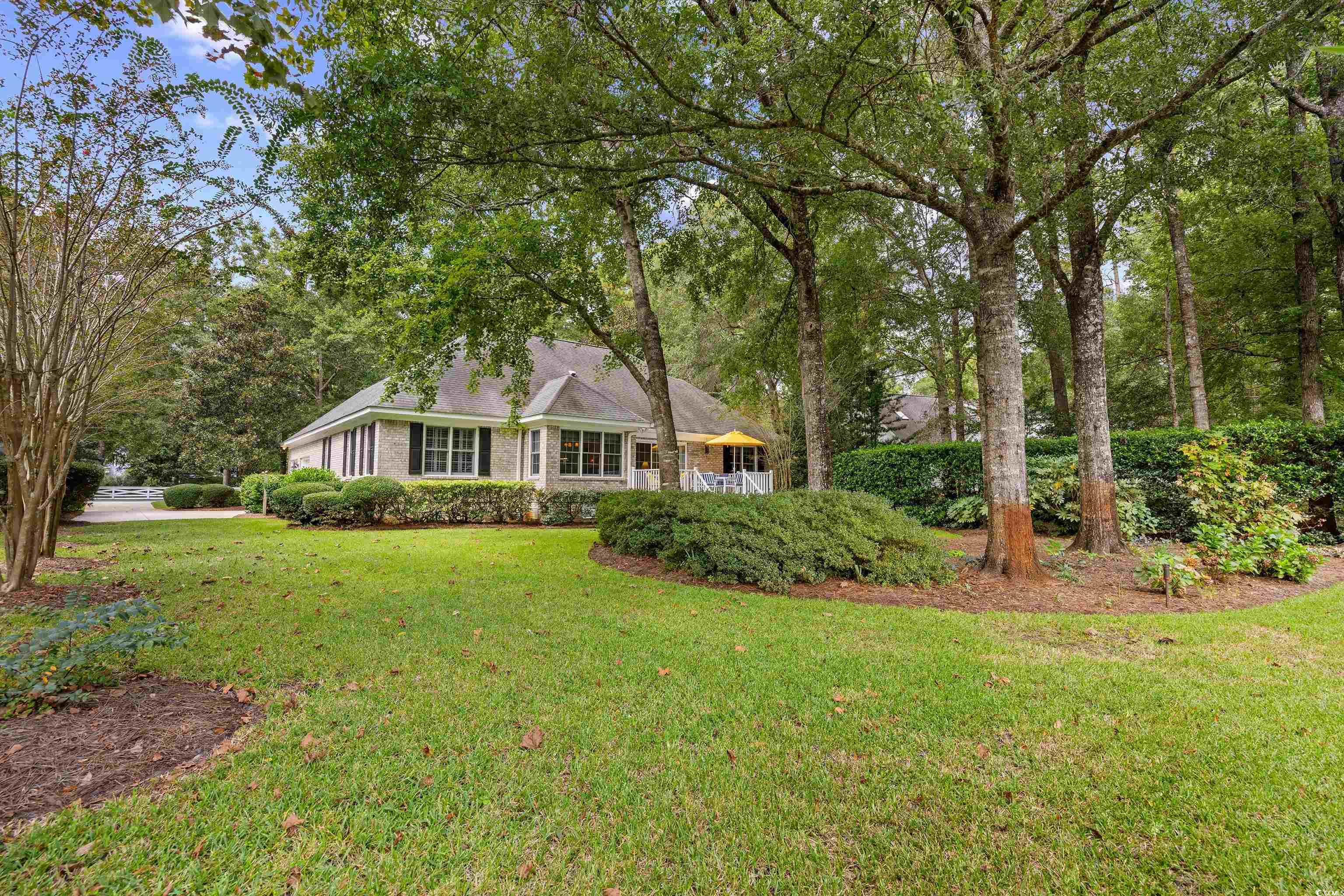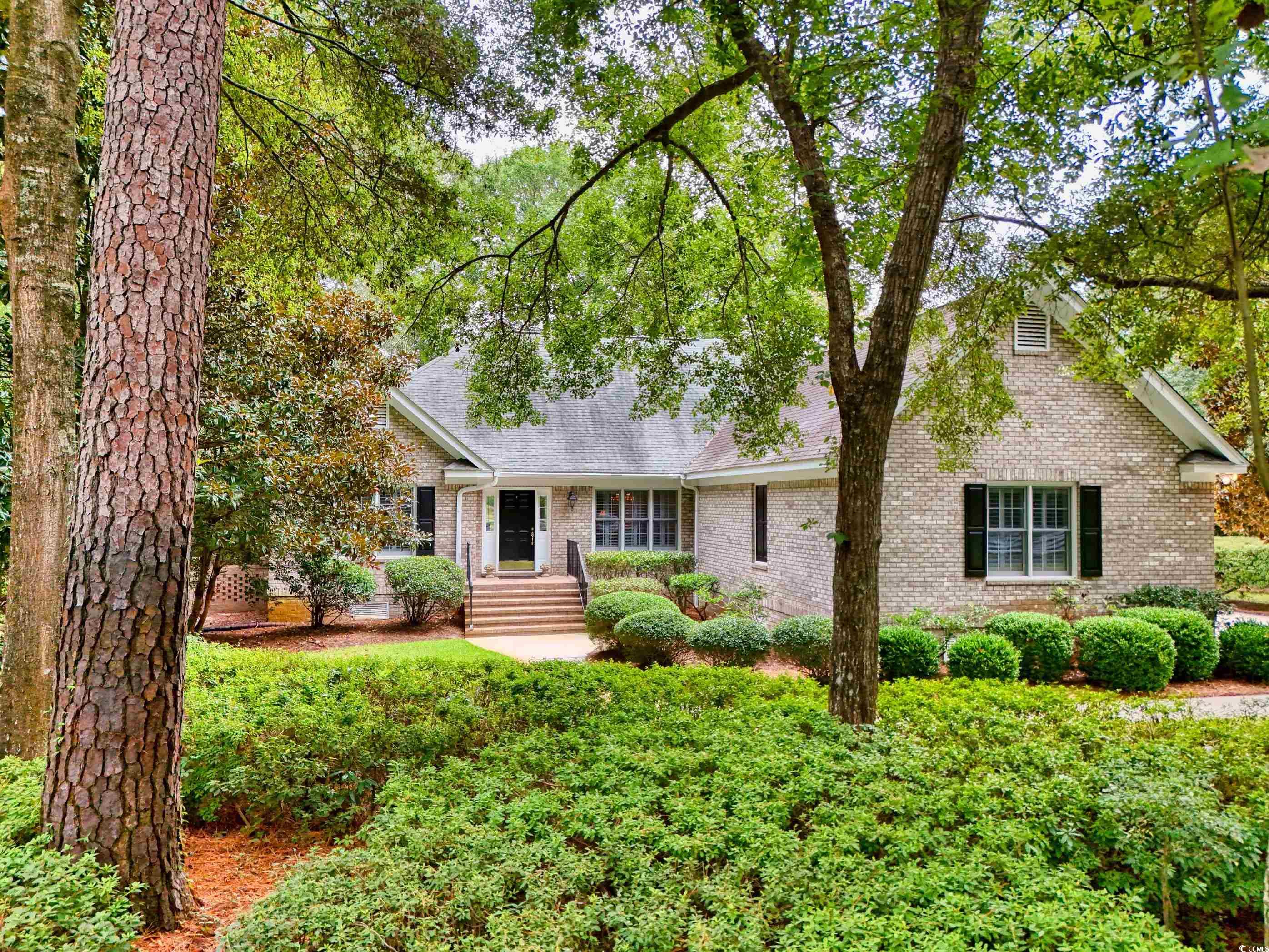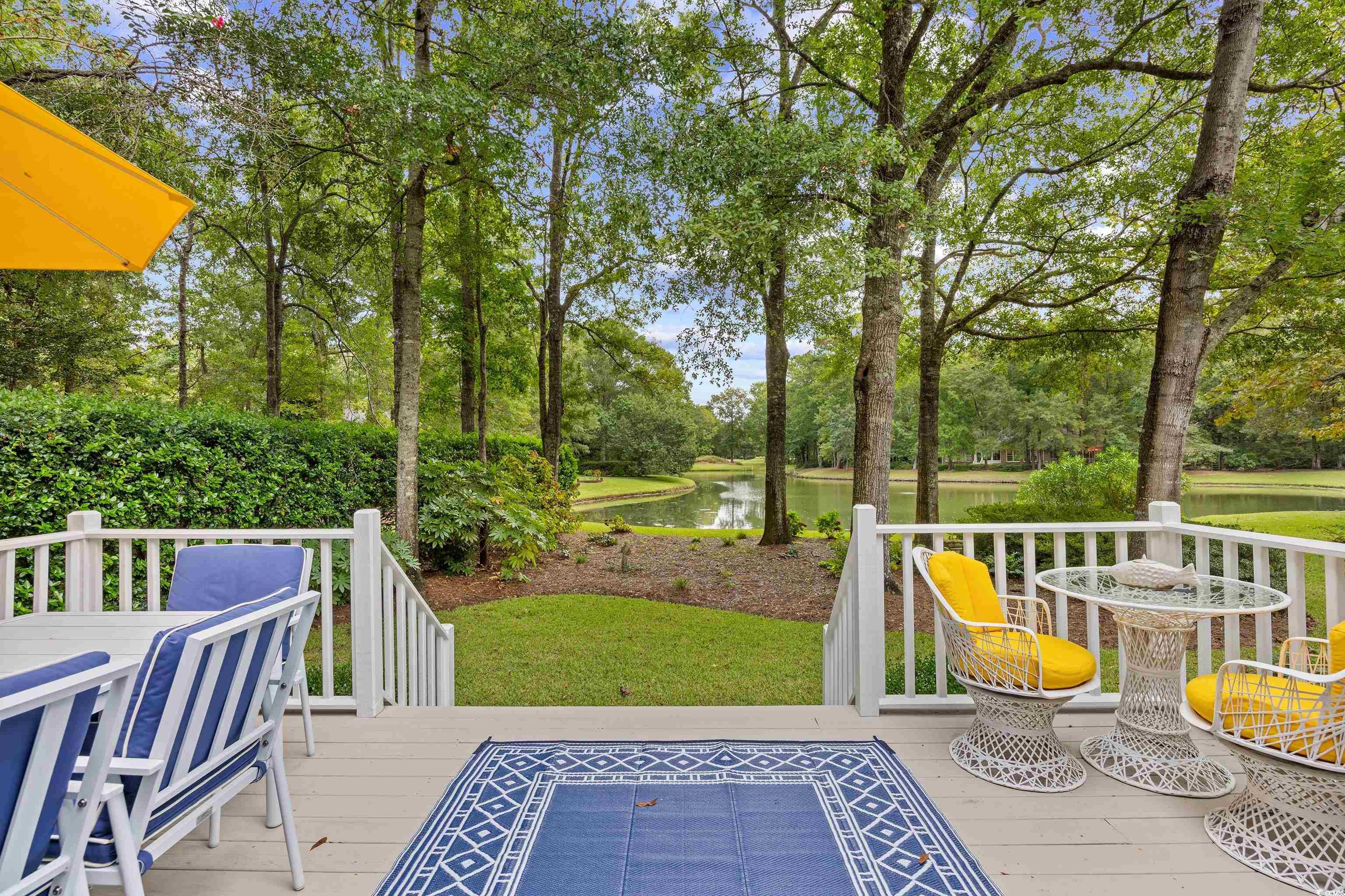 Peaceful, private, and charming in a prime location! This all-brick home has a lot to love. Sitting on an extraordinary lot, this single-level, 3 bedroom and 2.5 bath property provides a secluded setting with beautiful views of a large pond to the back while the front is buffered by an abundance of Azaleas throughout the yard. The split-bedroom layout features a large and open living room space with sliding glass doors to the back that open to a large wood deck and frame a picturesque view across the backyard and pond with the tee box for hole No. 6 of the Wachesaw Plantation Club golf course beyond. The living room flows into a well-appointed kitchen that hosts ample counter space and a built-in desk / work area as well as a large breakfast nook that also provides more spectacular views to the back of the property. Just inside the front door and open to the living room is a large dining room space with a tray ceiling and plantation shutters on the windows that offer views to the front of the property. The master suite sits to the back right of the home and features more views of the backyard, a built-in desk, tray ceiling, plantation shutters, and a large en suite with a double-sink vanity, expansive counter space, walk-in closet and walk-in shower. The two secondary bedrooms combine with a full bath to create an ideal guest wing to the left of the home while the hall entrance from the garage holds the laundry area, a half bath and three separate closets including a pantry option just off the kitchen. Wachesaw Plantation is one of the most desirable communities in Murrells Inlet with meticulously landscaped common areas, live oaks draped in Spanish moss, 24-hour guard gate entrance, and a community area that includes a playground, dog park, and basketball / pickleball courts. The members-only Wachesaw Plantation Club, which requires additional fees for access, is also on site and offers varying levels of membership that can provide access to the golf course, community pool, the on-site restaurant of Kimbels and much more. Plus, Wacca Wache Marina, a full service marina with boat storage and a restaurant, provides direct access to the Waccamaw River and is just a mile away. The ocean, golf, Murrells Inlet Marshwalk, shopping and restaurants are also just minutes away. Don’t miss the opportunity to own this truly unique property inside the gates of Wachesaw Plantation. For more information or to schedule a showing, please contact the listing agent or call your Realtor before this one is gone. Square footage is approximate and not guaranteed. Buyer / buyer’s agent is responsible for verification.