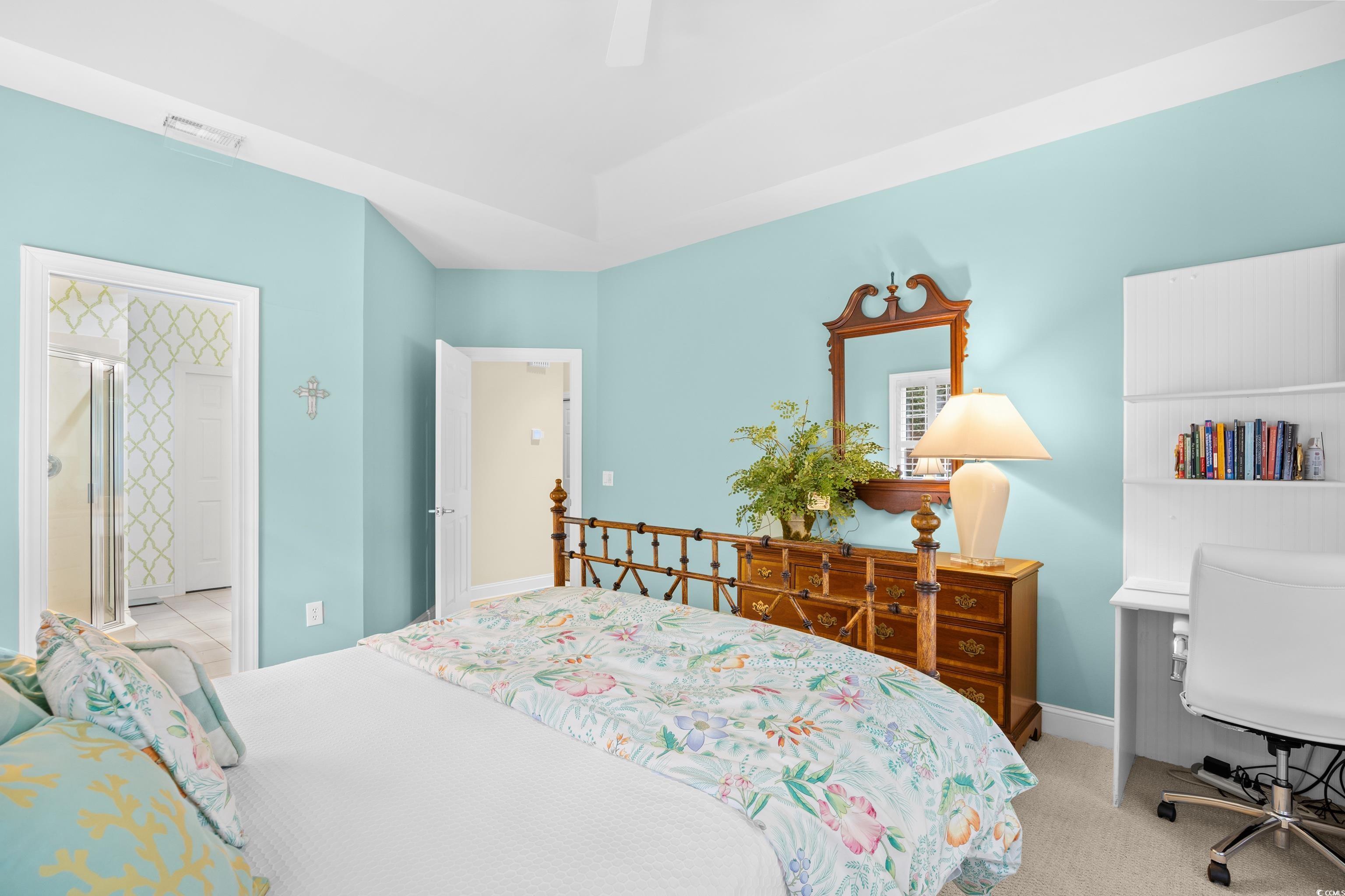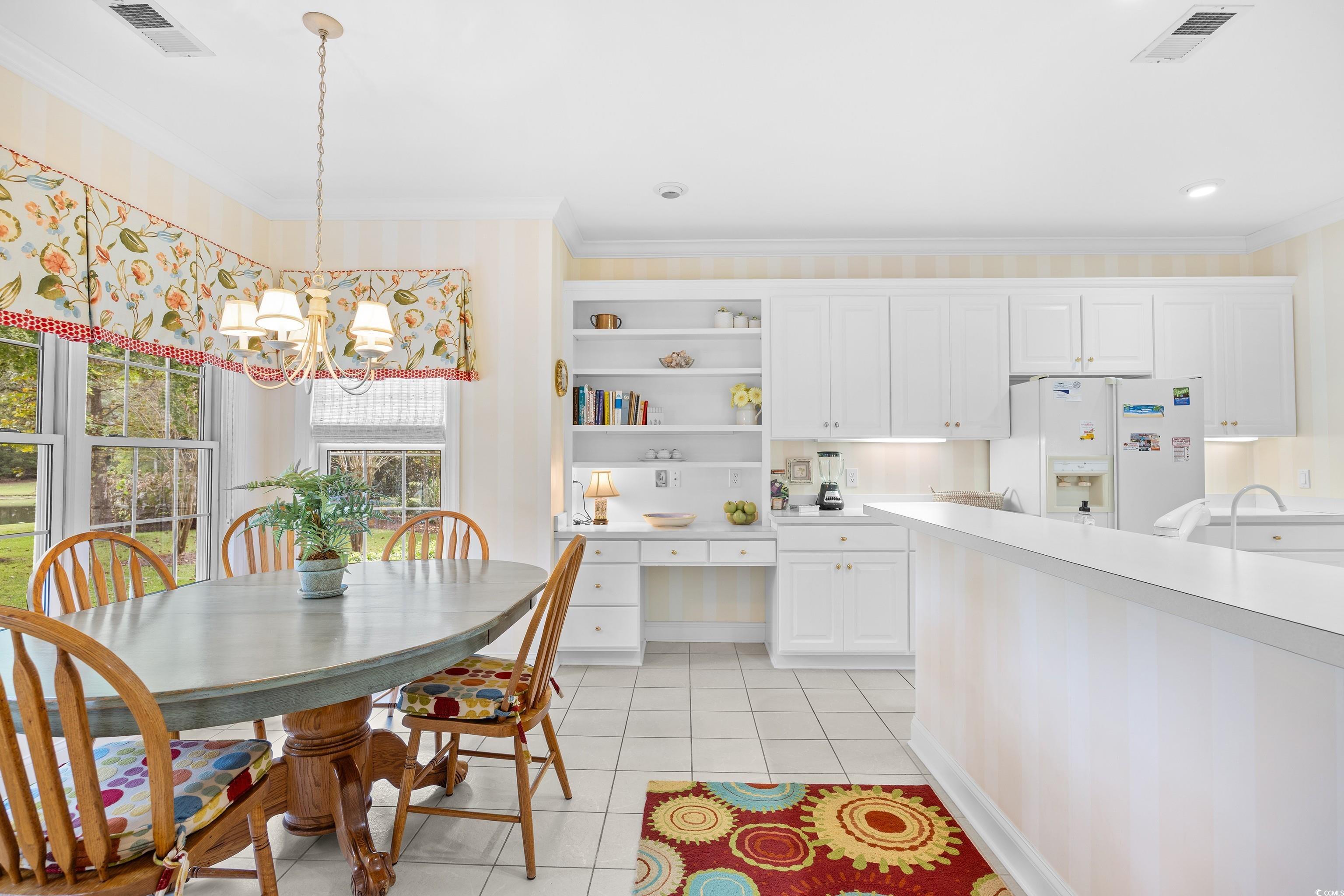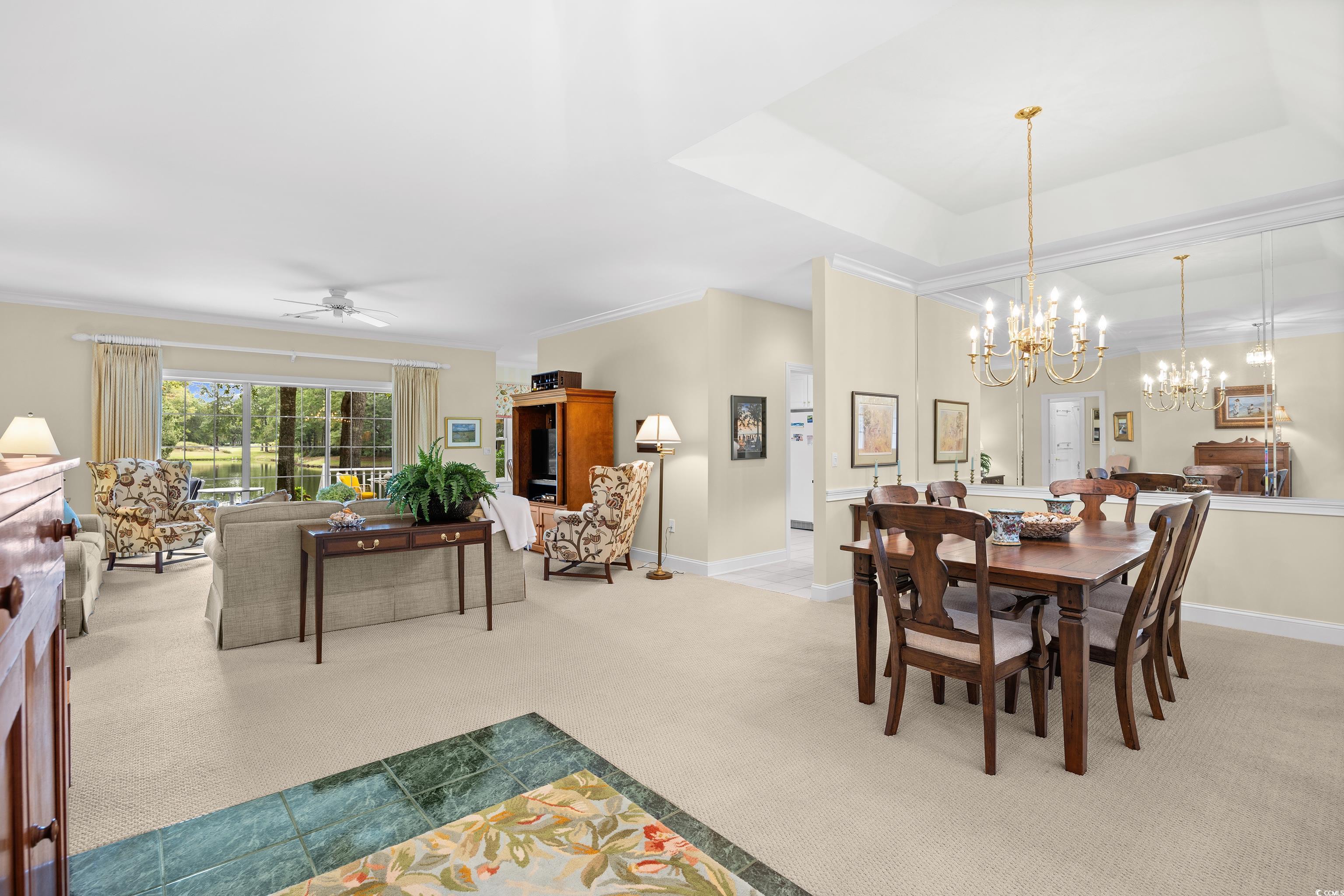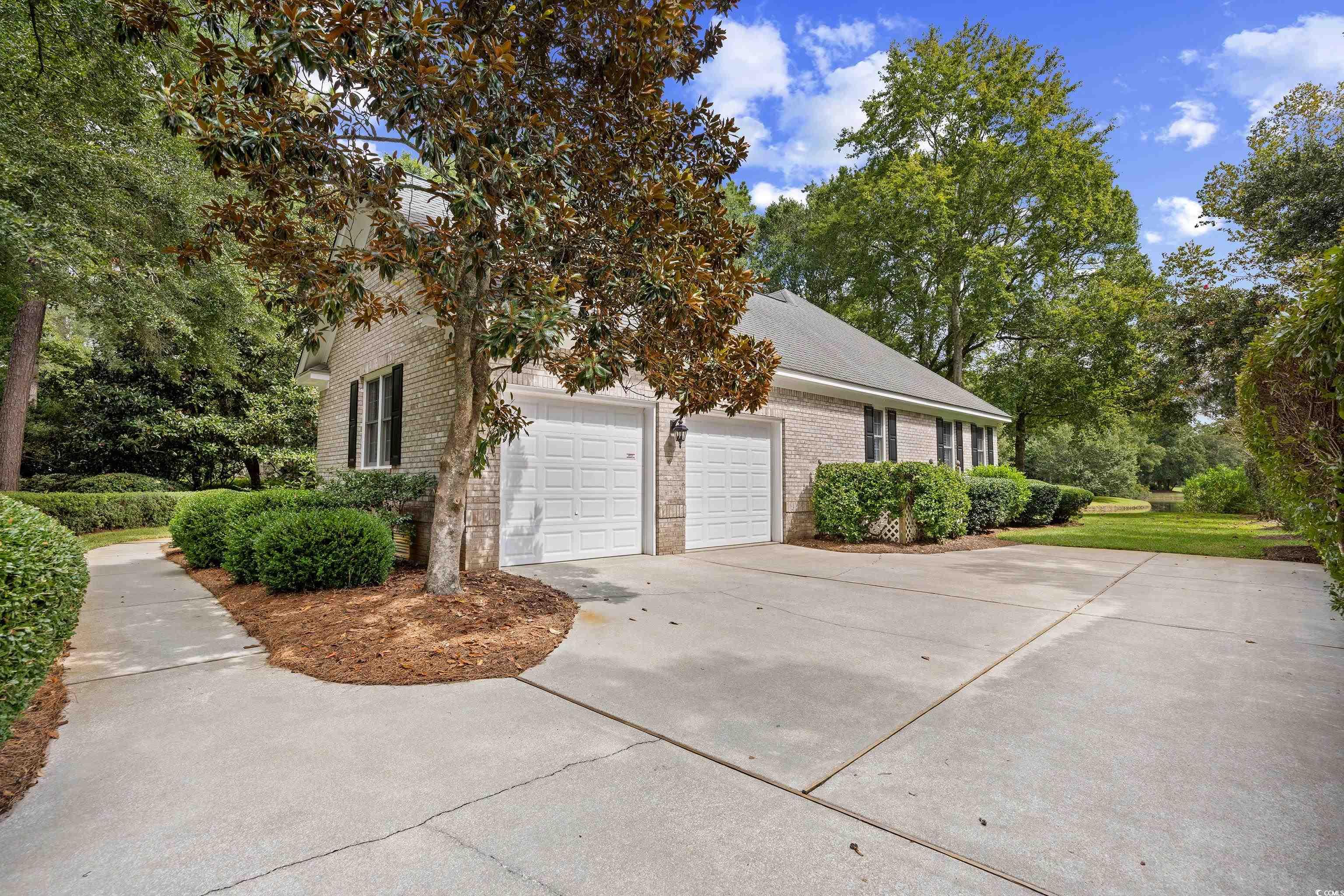 Peaceful, private, and charming in a prime location! This all-brick home has a lot to love. Sitting on an extraordinary lot, this single-level, 3 bedroom and 2.5 bath property provides a secluded setting with beautiful views of a large pond to the back while the front is buffered by an abundance of Azaleas throughout the yard. The split-bedroom layout features a large and open living room space with sliding glass doors to the back that open to a large wood deck and frame a picturesque view across the backyard and pond with the tee box for hole No. 6 of the Wachesaw Plantation Club golf course beyond. The living room flows into a well-appointed kitchen that hosts ample counter space and a built-in desk / work area as well as a large breakfast nook that also provides more spectacular views to the back of the property. Just inside the front door and open to the living room is a large dining room space with a tray ceiling and plantation shutters on the windows that offer views to the front of the property. The master suite sits to the back right of the home and features more views of the backyard, a built-in desk, tray ceiling, plantation shutters, and a large en suite with a double-sink vanity, expansive counter space, walk-in closet and walk-in shower. The two secondary bedrooms combine with a full bath to create an ideal guest wing to the left of the home while the hall entrance from the garage holds the laundry area, a half bath and three separate closets including a pantry option just off the kitchen. Wachesaw Plantation is one of the most desirable communities in Murrells Inlet with meticulously landscaped common areas, live oaks draped in Spanish moss, 24-hour guard gate entrance, and a community area that includes a playground, dog park, and basketball / pickleball courts. The members-only Wachesaw Plantation Club, which requires additional fees for access, is also on site and offers varying levels of membership that can provide access to the golf course, community pool, the on-site restaurant of Kimbels and much more. Plus, Wacca Wache Marina, a full service marina with boat storage and a restaurant, provides direct access to the Waccamaw River and is just a mile away. The ocean, golf, Murrells Inlet Marshwalk, shopping and restaurants are also just minutes away. Don’t miss the opportunity to own this truly unique property inside the gates of Wachesaw Plantation. For more information or to schedule a showing, please contact the listing agent or call your Realtor before this one is gone. Square footage is approximate and not guaranteed. Buyer / buyer’s agent is responsible for verification.