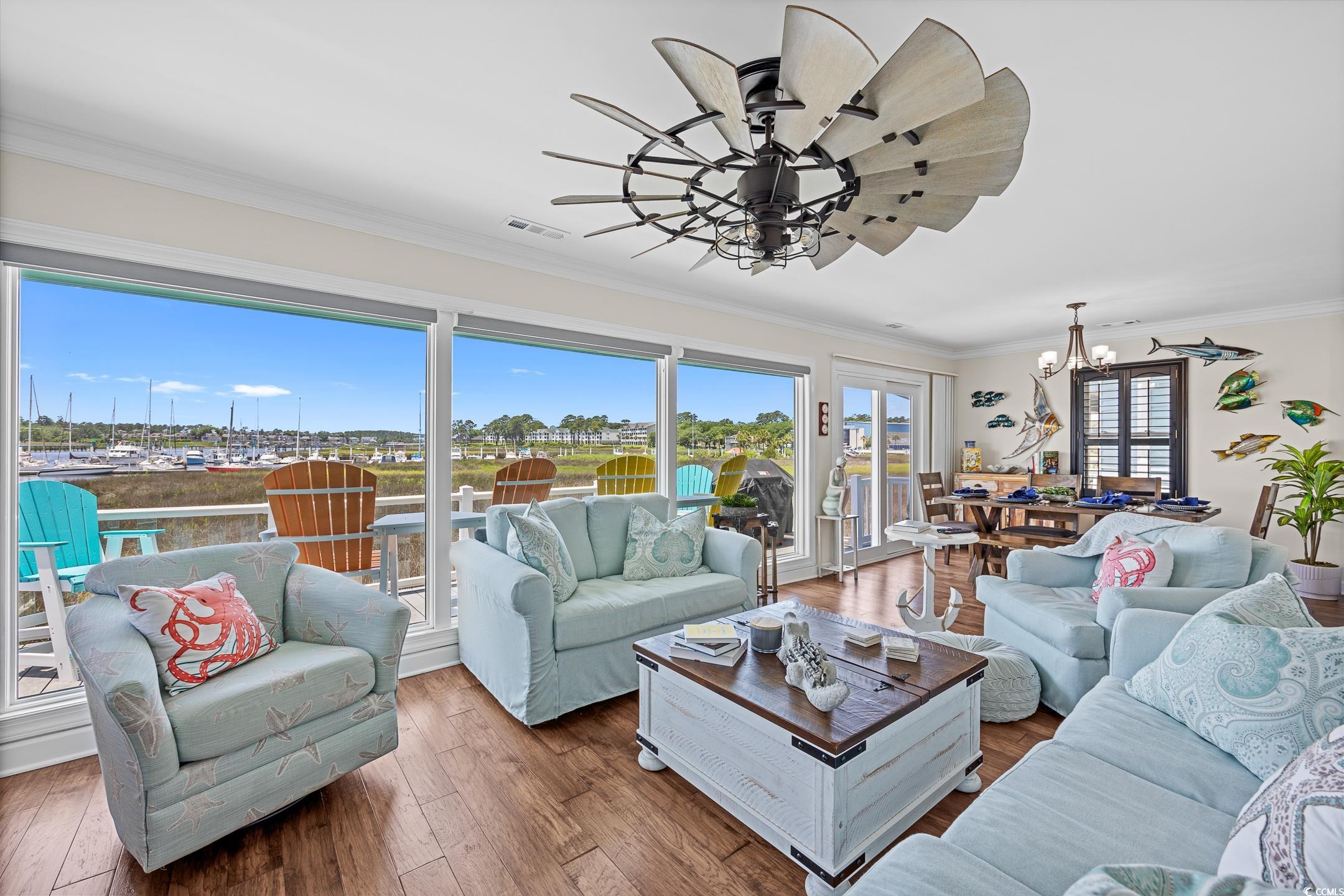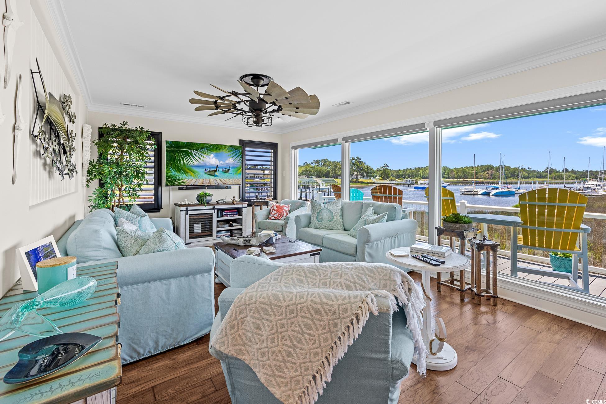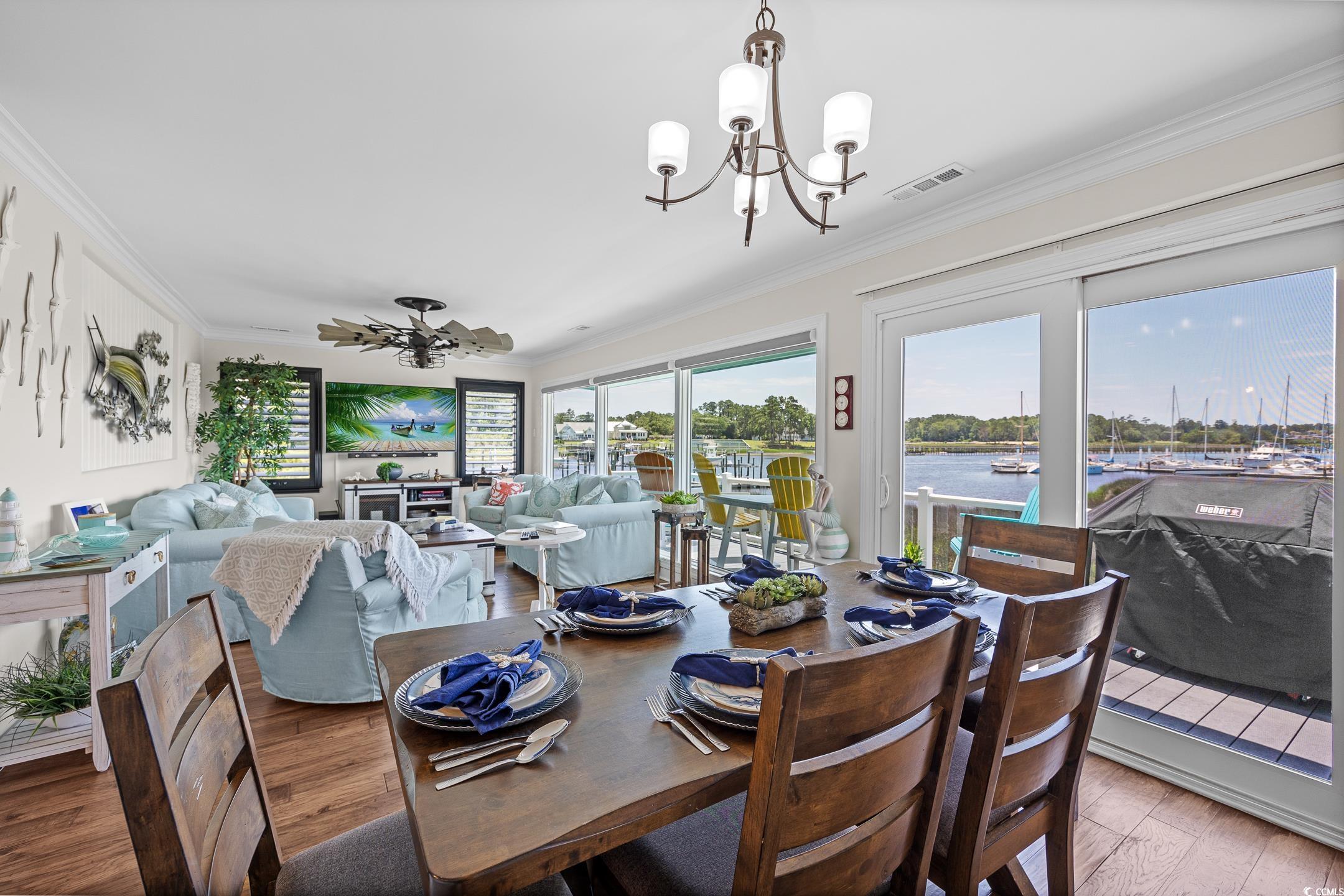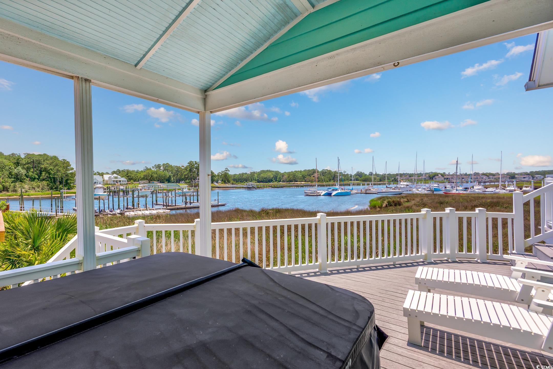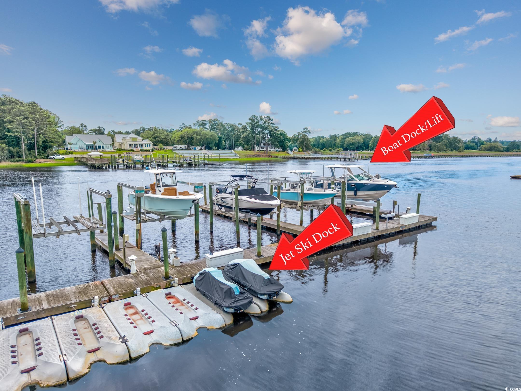 waterfront Living at Its Finest – Crystal Pointe, Little River. Hush... Don't tell Santa!!! We have the ultimate Stocking Stuffer!! Wake up to stunning Intracoastal Waterway views from the floor to ceiling windows from this beautifully upgraded 3-bedroom, 2.5-bath home in the exclusive, gated community of Crystal Pointe. This community only has 18 homes with very low HOA fees. With boats drifting by and serene water vistas, every morning coffee or sunset glass of wine feels like a getaway. Underneath is an entertainer's dream with your own bar, ping pong table and unlimited uses. Walk out to your own private hot tub with amazing waterway views. Plenty of storage for all of your boating & fishing gear. Inside, you'll find custom details throughout: hardwood floors, granite countertops, and custom shutters. The kitchen and living areas shine, while the master suite is a true retreat featuring a fully renovated tiled shower, dual walk-in closets by Closets by Design, blinds, and cabinet lighting. Other upgrades include: Roof replaced in 2016 with 30-year shingles, HVAC replaced in 2024 New ceiling fans 3 security cameras for added peace of mind Boaters, take note: This home includes a 50-foot end dock with an updated 16,500lb boat lift, fish cleaning station, storage locker and two jet ski floaters—a rare find in this quiet waterfront enclave. Crystal Pointe offers privacy, beauty, and the lifestyle you’ve been looking for. Annual HOA fees. Sold furnished with the exception of the wall art. Just reduced so that you will have instant equity. Measurements are approximate and must be verified by buyer.