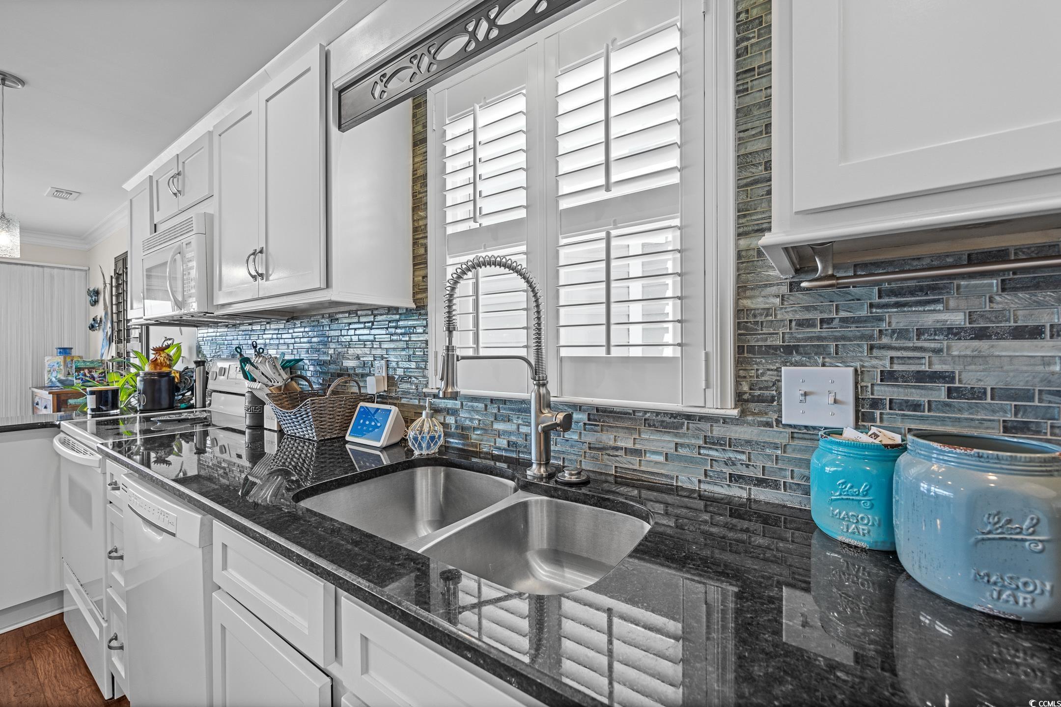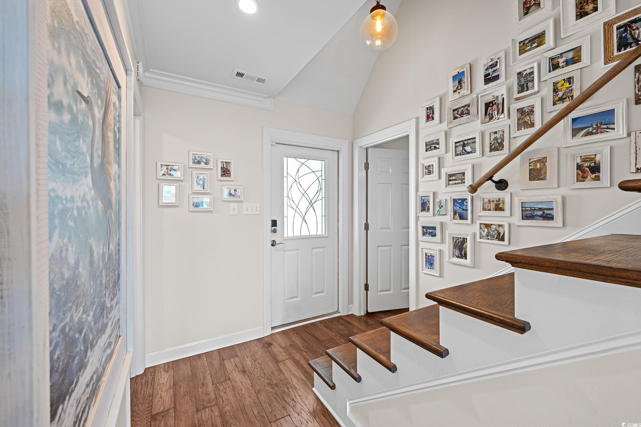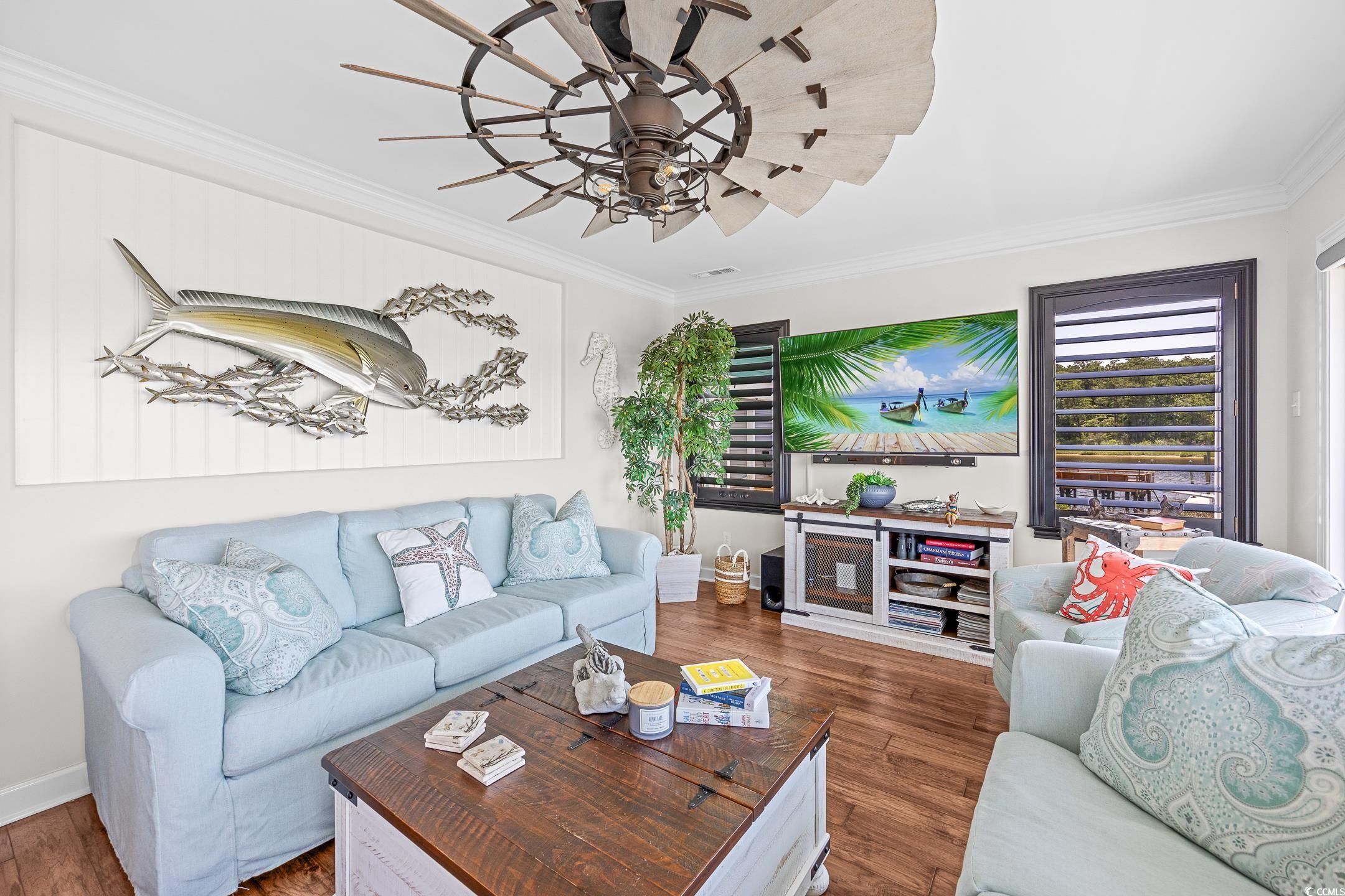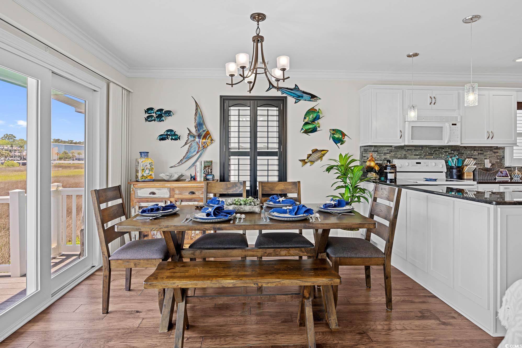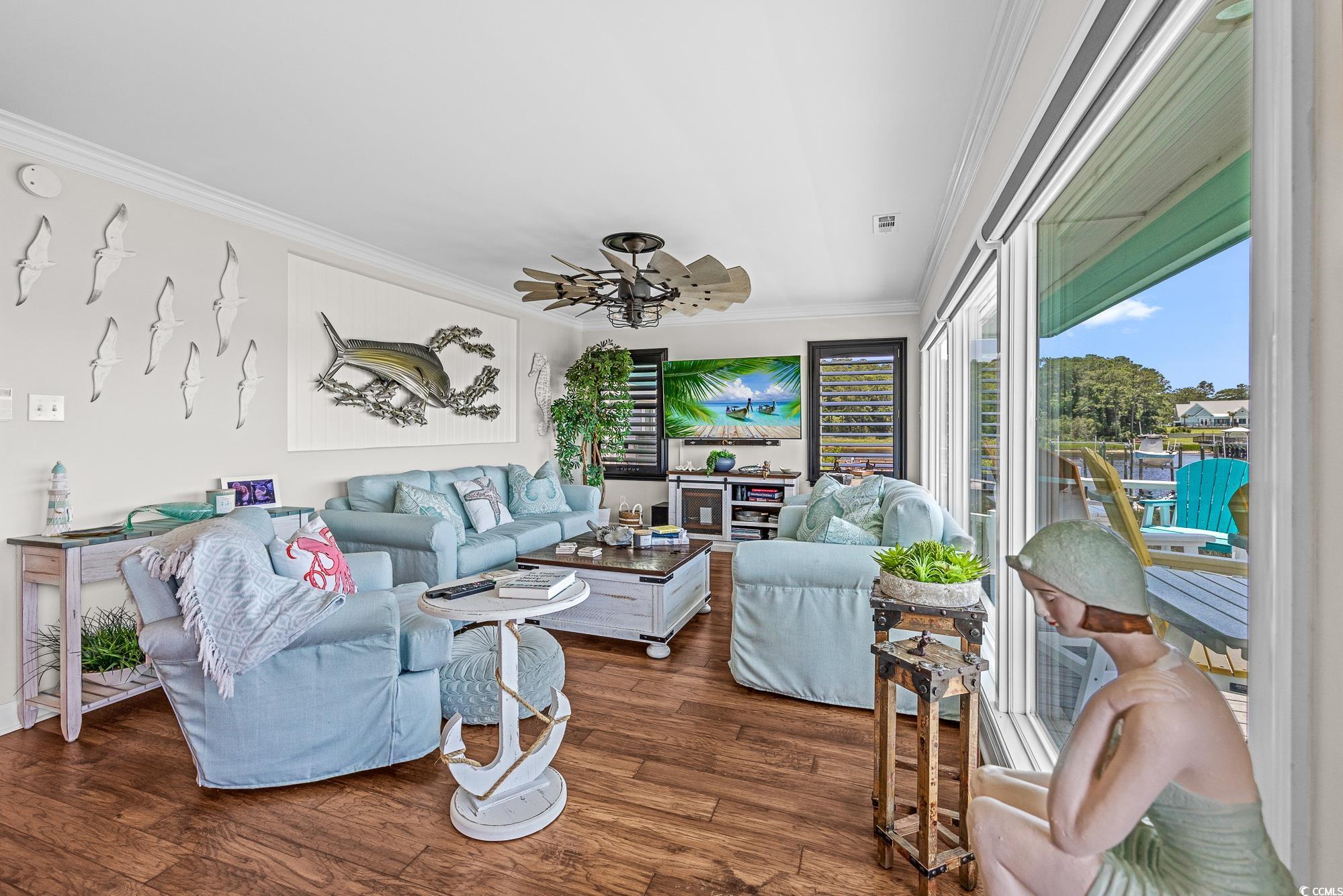 waterfront Living at Its Finest – Crystal Pointe, Little River. Hush... Don't tell Santa!!! We have the ultimate Stocking Stuffer!! Wake up to stunning Intracoastal Waterway views from the floor to ceiling windows from this beautifully upgraded 3-bedroom, 2.5-bath home in the exclusive, gated community of Crystal Pointe. This community only has 18 homes with very low HOA fees. With boats drifting by and serene water vistas, every morning coffee or sunset glass of wine feels like a getaway. Underneath is an entertainer's dream with your own bar, ping pong table and unlimited uses. Walk out to your own private hot tub with amazing waterway views. Plenty of storage for all of your boating & fishing gear. Inside, you'll find custom details throughout: hardwood floors, granite countertops, and custom shutters. The kitchen and living areas shine, while the master suite is a true retreat featuring a fully renovated tiled shower, dual walk-in closets by Closets by Design, blinds, and cabinet lighting. Other upgrades include: Roof replaced in 2016 with 30-year shingles, HVAC replaced in 2024 New ceiling fans 3 security cameras for added peace of mind Boaters, take note: This home includes a 50-foot end dock with an updated 16,500lb boat lift, fish cleaning station, storage locker and two jet ski floaters—a rare find in this quiet waterfront enclave. Crystal Pointe offers privacy, beauty, and the lifestyle you’ve been looking for. Annual HOA fees. Sold furnished with the exception of the wall art. Just reduced so that you will have instant equity. Measurements are approximate and must be verified by buyer.