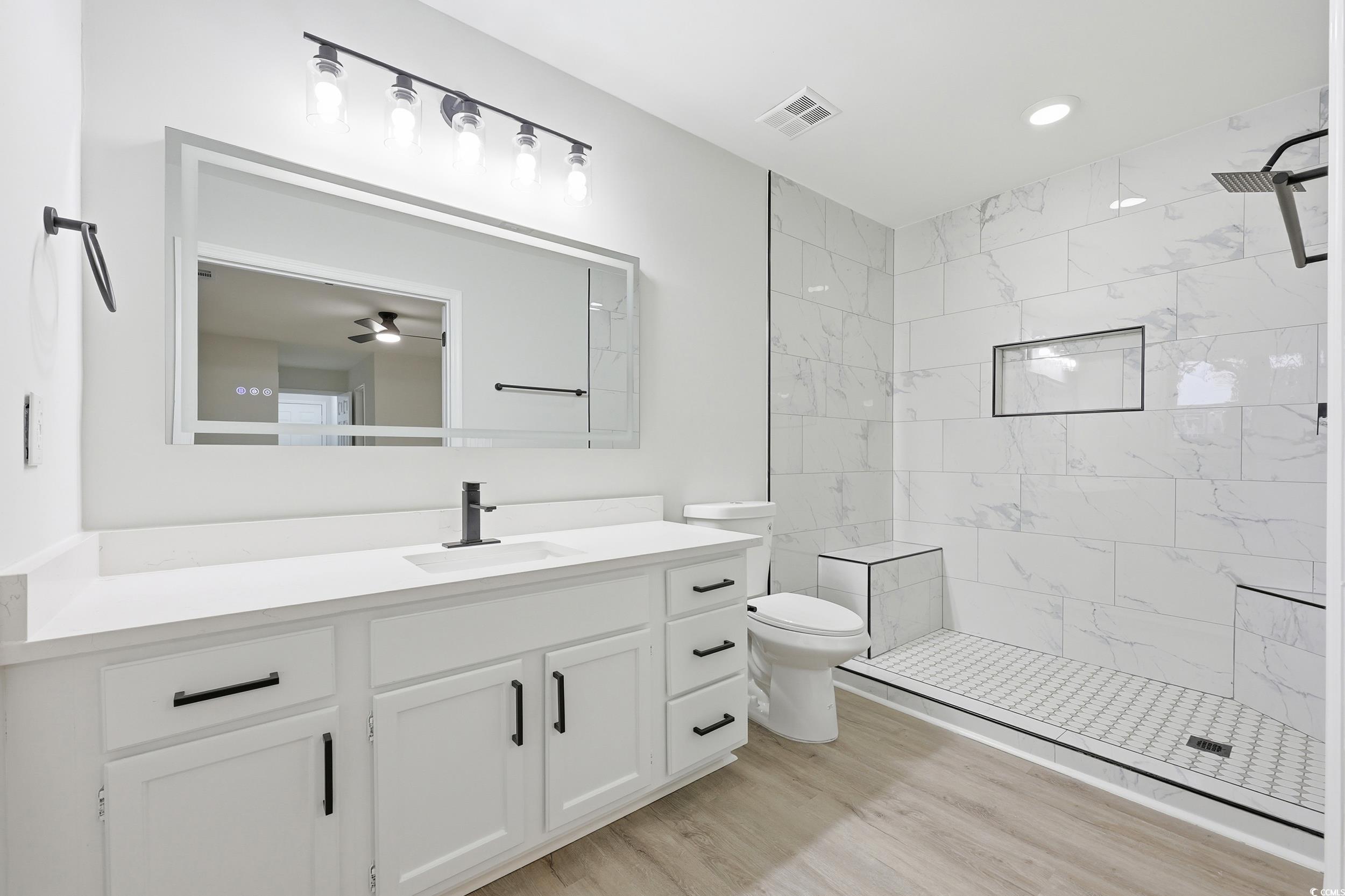 If you are looking for a home that has undergone a total renovation, has a direct golf course view, and is in a highly desired community, look no further. This home is located in Eastport Golf Course and is in the heart of Little River and just minutes to the beach. The home has just been entirely renovated as of December 2025. The outside has just been painted a fresh white with black front door. When you walk in, you'll notice the amount of natural light that comes in and the open kitchen and living area. Brand new LVP flooring has been installed throughout and the stairs have been refinished and stained. The kitchen has been reconfigured to be open and has white cabinets, new quarts countertops, new sink and faucet and new stainless steel appliances. Every light in the home has been replaced as well. The primary bedroom is on the ground level and it is very spacious, and has a slider going out to the patio that overlooks the golf course. The primary bathroom has a dual sink, quarts counters, and a huge custom tile shower that is to die for!!! There was a screened porch added off of the living room as well so you can enjoy your morning coffee while watching the golfers. There is also a half bath downstairs for guests. Upstairs, there are two more large bedrooms, a 4th bedroom that could be a small bonus room, and a shared bathroom with another tile shower, dual sinks and quarts countertops and new sinks and faucets. There is an attached one car garage that just had the floor epoxied and looks very clean! More features include a fireplace, back patio, custom lighting, all new black hinges and knobs throughout the home, fresh paint inside and out, and much more. There is also a community pool and the HOA fees are very reasonable. This isn't some cookie cutter home, this one has been remodeled and customized with endless upgrades. Direct golf course view! Do not miss out on this one, schedule a showing today!!! IT WAS RAINING THE DAY OF PHOTOS SO BETTER EXTERIOR PHOTOS COMING SOON!