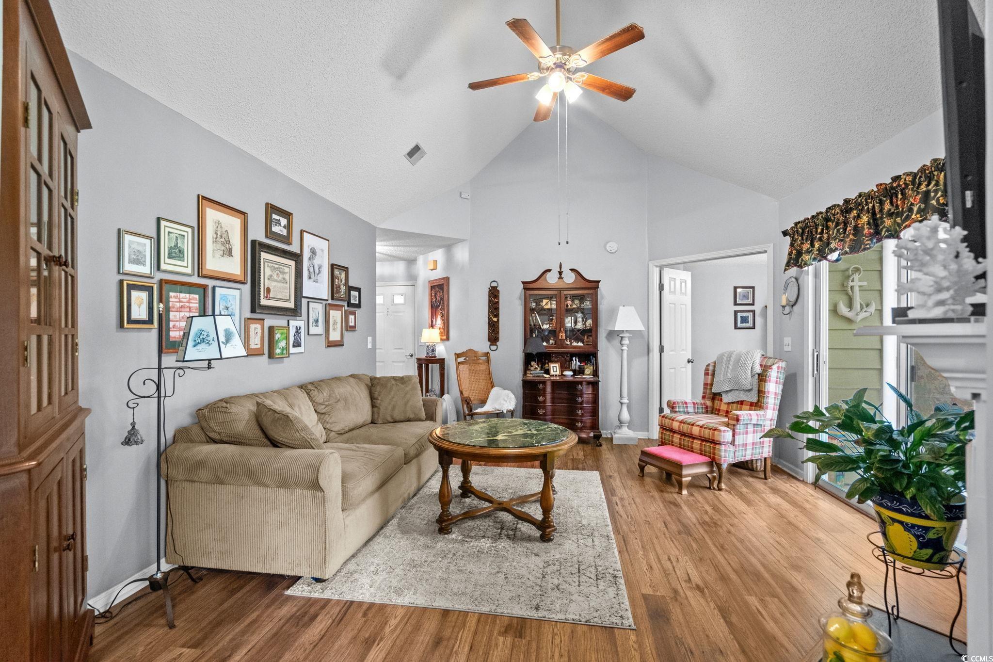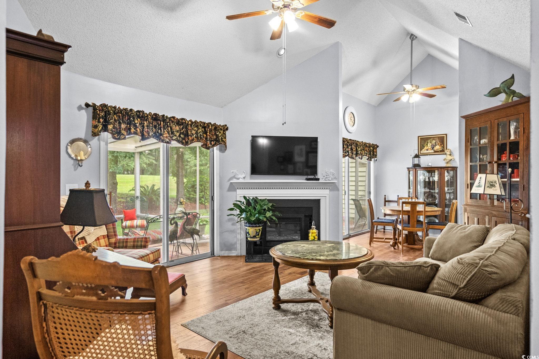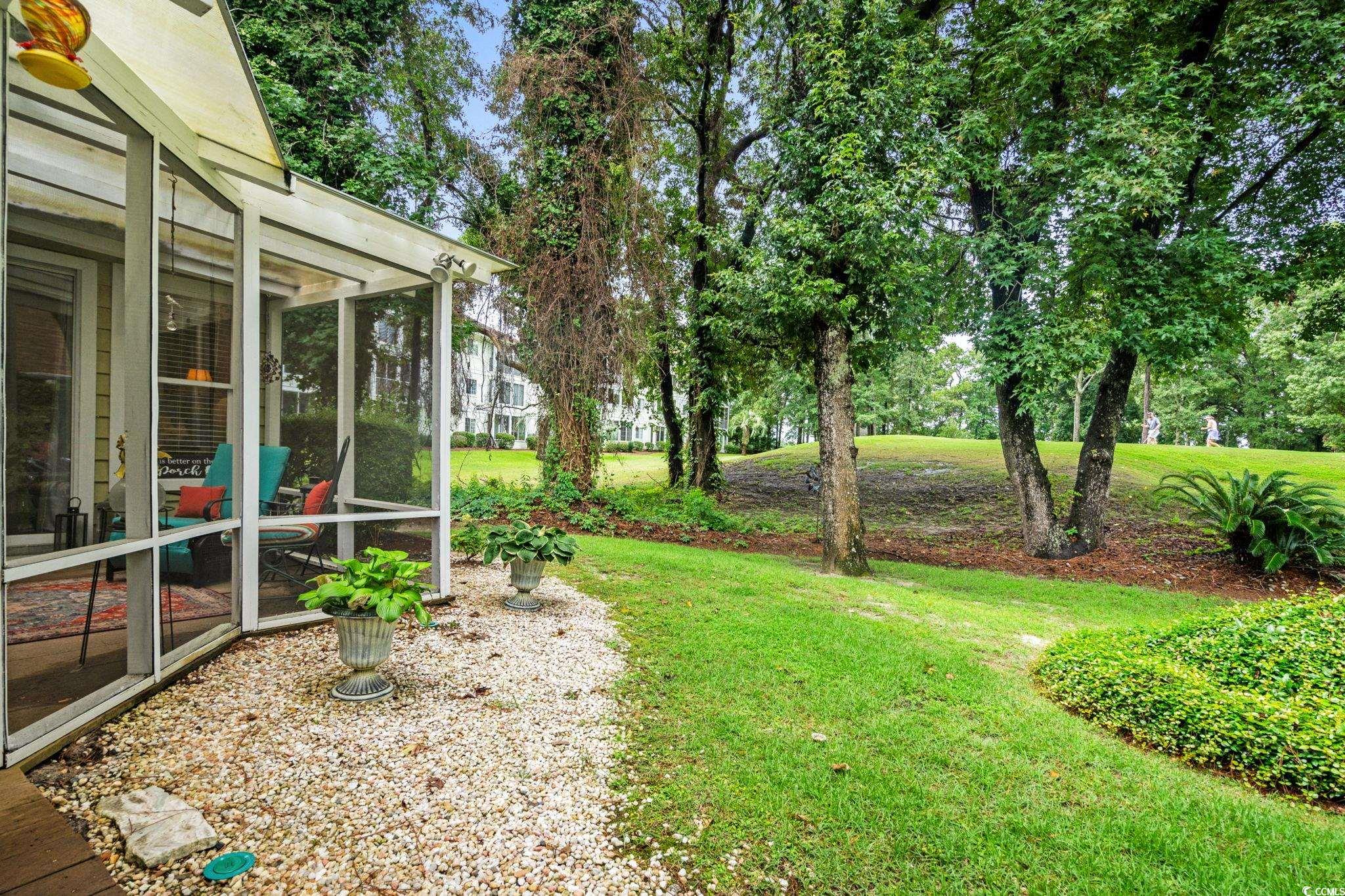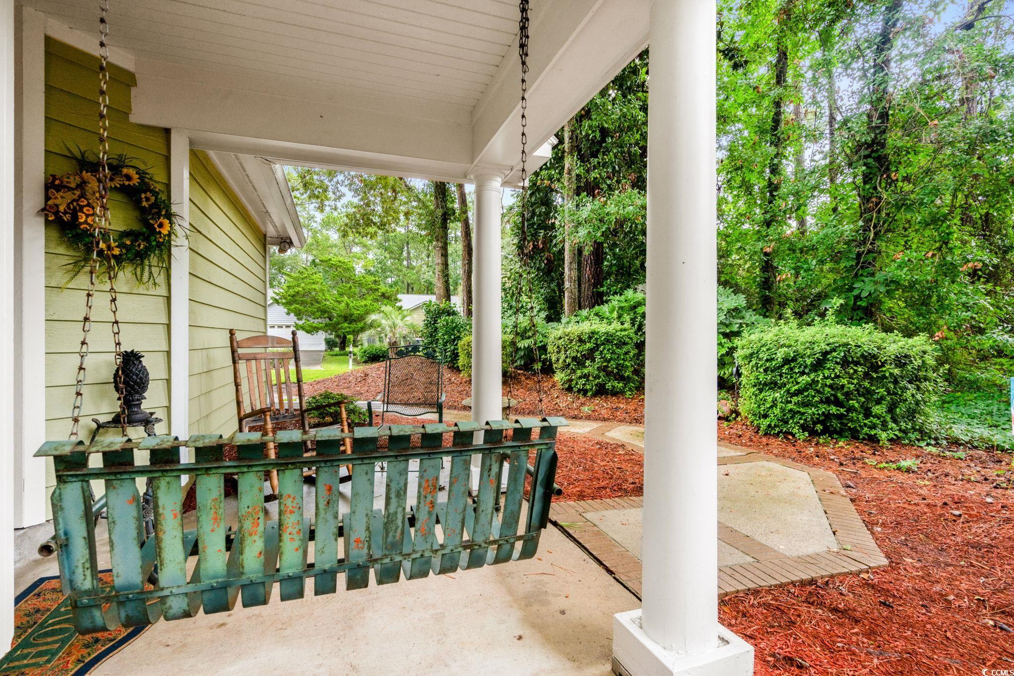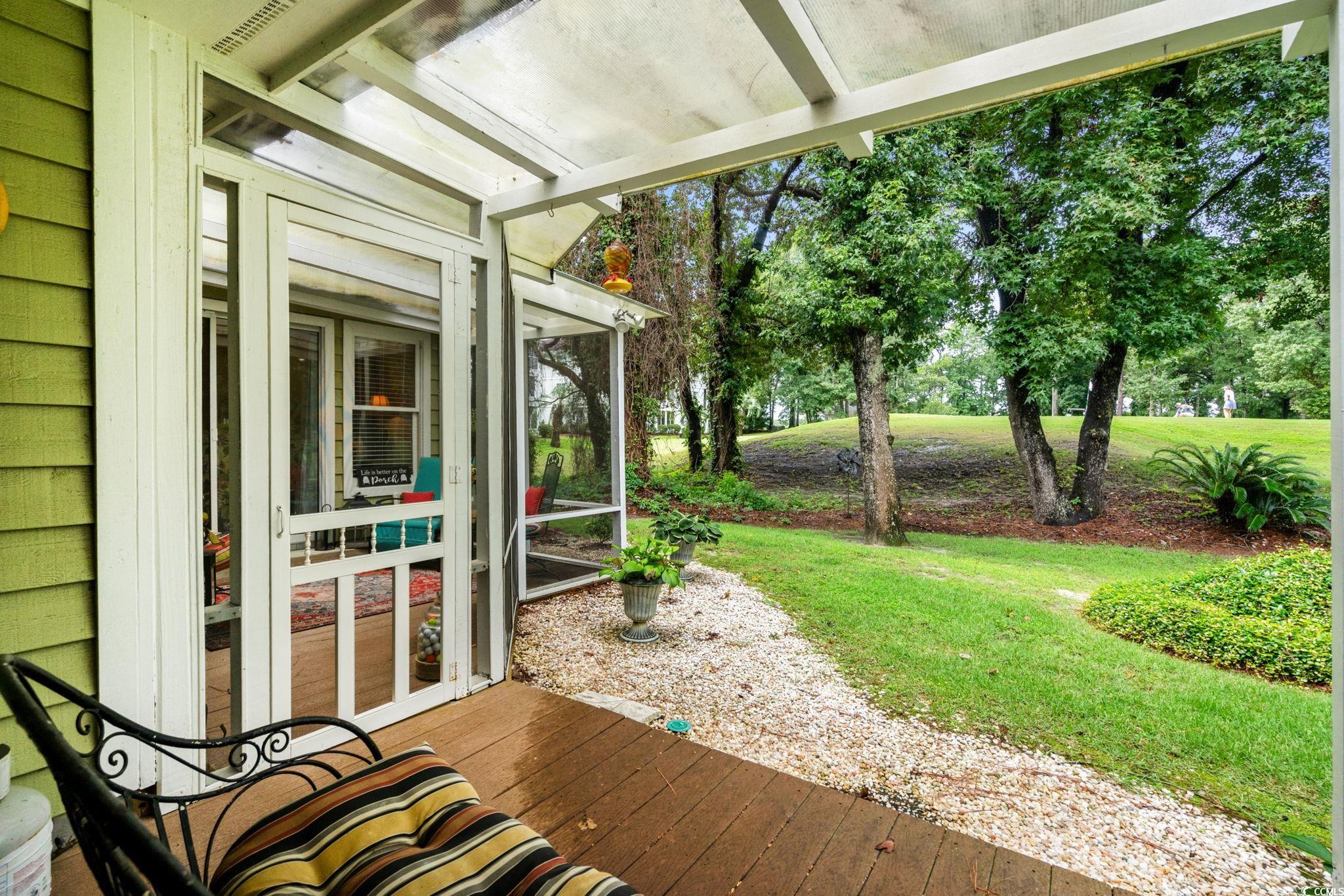 A TRULY UNIQUE OFFERING GIVING ALL THE FEELS OF A SINGLE FAMILY HOME WITH ALL THE CONVENIENCES OF A TOWNHOME!! Imagine pulling into the tree-lined streets of Eastport, where lush landscaping and a quiet, coastal charm sets the tone. As you arrive you will notice the welcoming front porch with a swing and well-manicured yard instantly invite you in. Step inside, and you’re greeted by soaring vaulted ceilings and an open, airy living space. The cozy living room centers around a fireplace—perfect for curling up with a good book or hosting friends and family. Natural light pours in through large sliding glass doors, drawing your eyes straight to the tranquil backyard views. Just beyond, you can already see the screened porch calling your name for morning coffee or afternoon lounging. As you move toward the dining area, you’ll notice how seamlessly it connects to the kitchen. The kitchen is bright and functional, with white cabinetry, stainless steel appliances, and a convenient pass-through window that makes serving guests a breeze for a quick bite to eat. Down the hall, the primary suite feels like its own retreat, offering private access to the screened porch so you can step right outside and enjoy the fresh Carolina air. The en-suite bathroom has a generous vanity, plenty of storage, and a walk-in shower. Two additional bedrooms give you flexibility—whether you need space for family, guests, or a home office. A second full bathroom is thoughtfully placed for easy access. Step out back, and you’ll find the screened porch leading to a small patio area, all framed by mature trees and well-kept landscaping over looking the golf course. It’s peaceful here—like your own private getaway. When you’re ready for some fun, the community pool is just a short stroll away. And with Eastport’s location, you’re minutes from waterfront dining, marinas, golf, and the beaches of North Myrtle. This isn’t just a home—it’s a lifestyle. Buyer is responsible for verification
