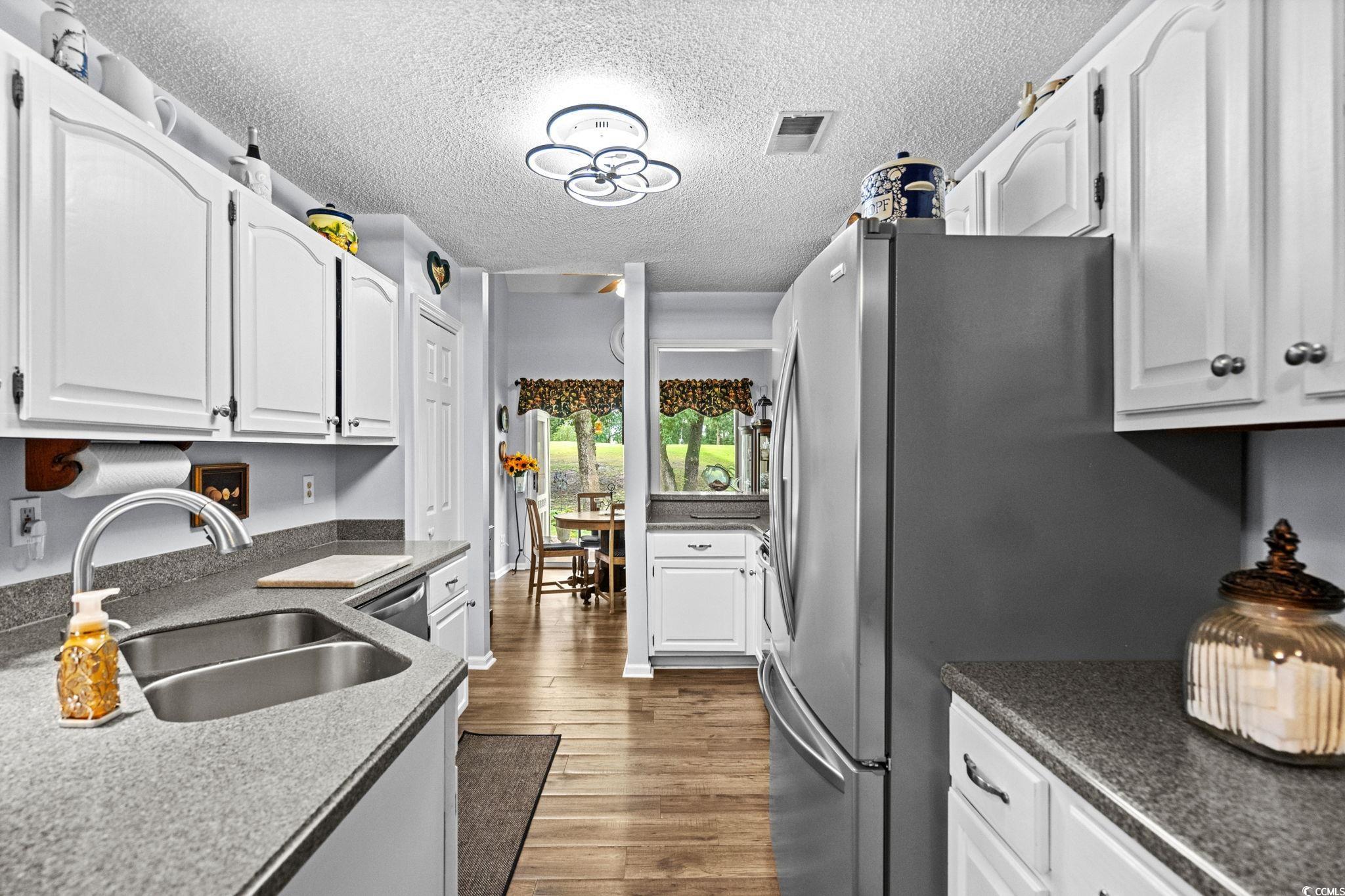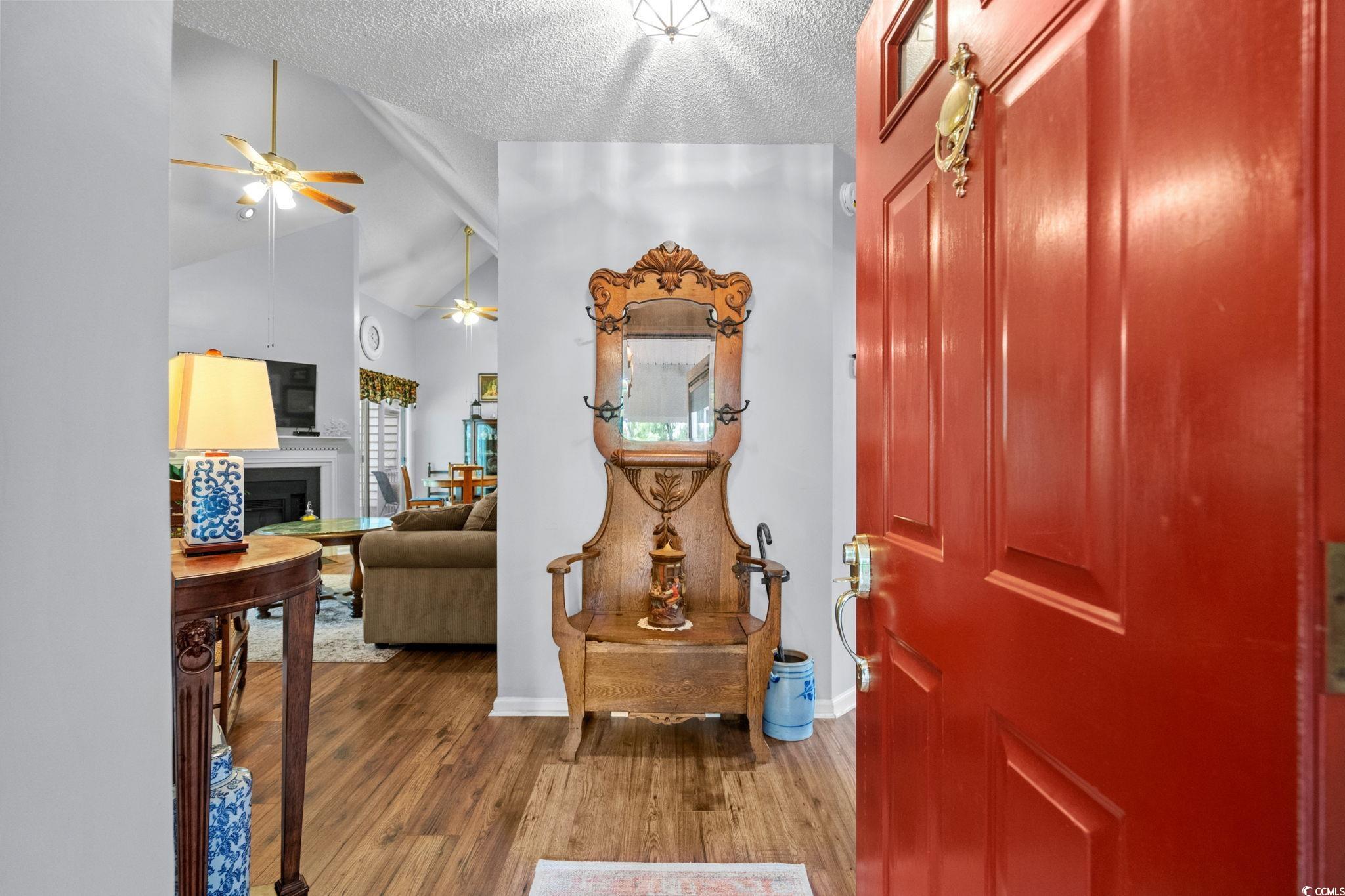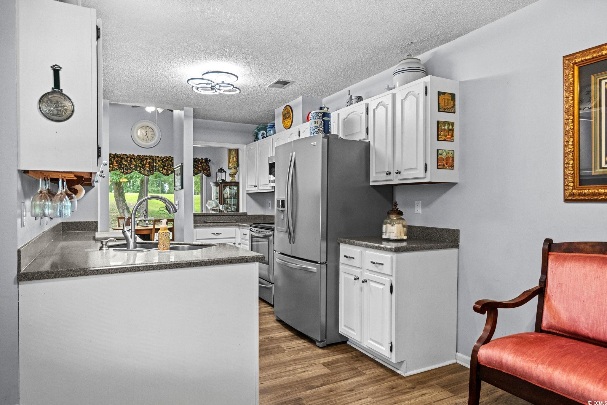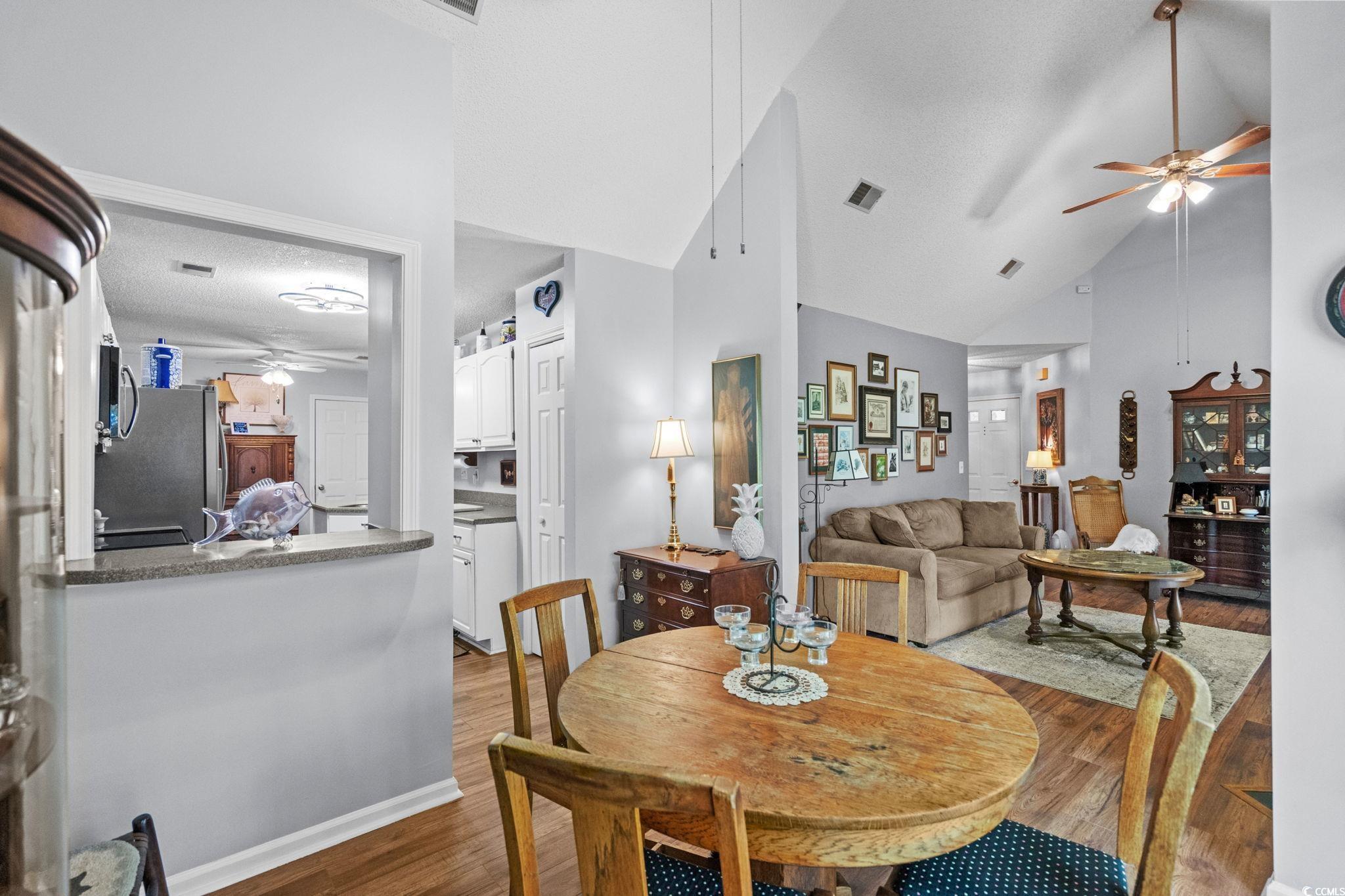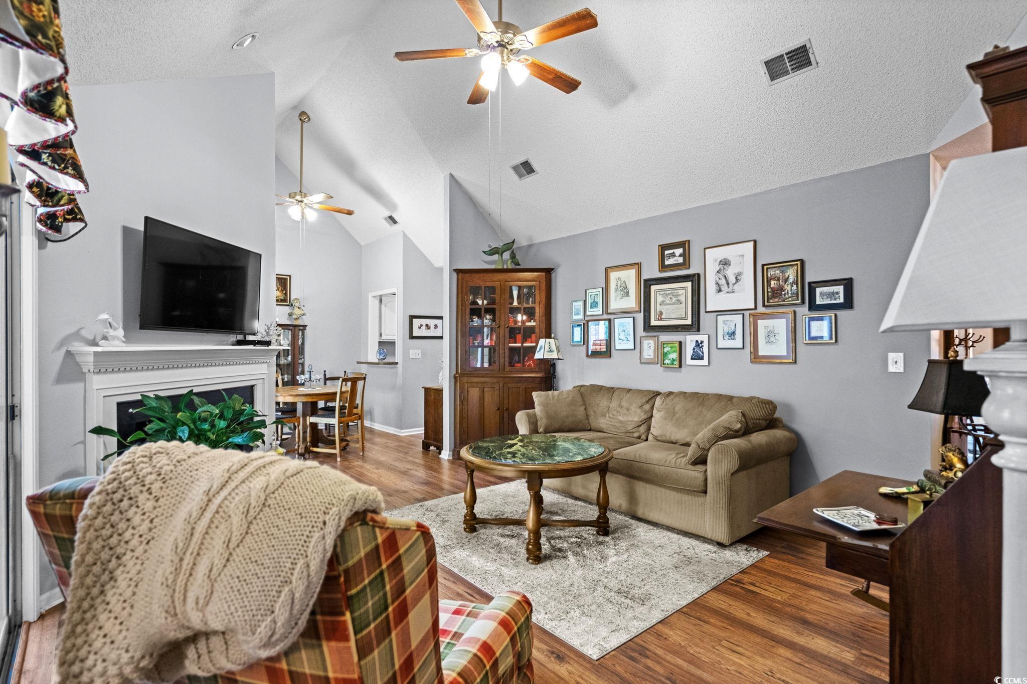 A TRULY UNIQUE OFFERING GIVING ALL THE FEELS OF A SINGLE FAMILY HOME WITH ALL THE CONVENIENCES OF A TOWNHOME!! Imagine pulling into the tree-lined streets of Eastport, where lush landscaping and a quiet, coastal charm sets the tone. As you arrive you will notice the welcoming front porch with a swing and well-manicured yard instantly invite you in. Step inside, and you’re greeted by soaring vaulted ceilings and an open, airy living space. The cozy living room centers around a fireplace—perfect for curling up with a good book or hosting friends and family. Natural light pours in through large sliding glass doors, drawing your eyes straight to the tranquil backyard views. Just beyond, you can already see the screened porch calling your name for morning coffee or afternoon lounging. As you move toward the dining area, you’ll notice how seamlessly it connects to the kitchen. The kitchen is bright and functional, with white cabinetry, stainless steel appliances, and a convenient pass-through window that makes serving guests a breeze for a quick bite to eat. Down the hall, the primary suite feels like its own retreat, offering private access to the screened porch so you can step right outside and enjoy the fresh Carolina air. The en-suite bathroom has a generous vanity, plenty of storage, and a walk-in shower. Two additional bedrooms give you flexibility—whether you need space for family, guests, or a home office. A second full bathroom is thoughtfully placed for easy access. Step out back, and you’ll find the screened porch leading to a small patio area, all framed by mature trees and well-kept landscaping over looking the golf course. It’s peaceful here—like your own private getaway. When you’re ready for some fun, the community pool is just a short stroll away. And with Eastport’s location, you’re minutes from waterfront dining, marinas, golf, and the beaches of North Myrtle. This isn’t just a home—it’s a lifestyle. Buyer is responsible for verification