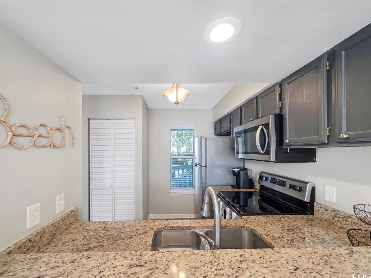 This one is a must-see! Wake up every morning to stunning views of the Intracoastal Waterway in this beautifully maintained first-floor, fully furnished 2-bedroom, 2-bath condo located in the sought-after Cascades at Eastport Golf Community. Step inside and you’ll immediately be drawn to the open-concept layout, designed to fill the space with natural light while highlighting the breathtaking waterway views from every room. The kitchen features stainless steel appliances, generous cabinet space, and a convenient breakfast bar — perfect for entertaining or a quiet morning coffee. Surrounded by large windows, the inviting living area is the perfect place to unwind and take in the scenery or step out onto the private balcony to enjoy the peaceful beauty of the water and local wildlife. The primary suite offers balcony access, a private en-suite bath, and serene views of the Intracoastal. The secondary bedroom also features its own en-suite, a spacious walk-in closet, and direct waterway views — providing comfort and privacy for guests. Recent updates include a new water heater and washer/dryer in 2024, and the HVAC system is approximately 3 years old. Additional highlights include a detached storage closet conveniently located near the front door, ideal for your beach gear or golf clubs. The building elevator makes visiting friends on the upper floors effortless. As a resident, enjoy access to a community pool, walking trails, plenty of parking for you and your guests, and the option to schedule a tee time at Eastport Golf Club. Located in the heart of Little River, you’ll be just minutes from local marinas, waterfront dining, and everything this charming coastal town is famous for — including fresh seafood, fishing charters, the annual Blue Crab Fall Festival, all surrounded by the timeless beauty of Southern live oaks and coastal charm. Schedule your showing today.