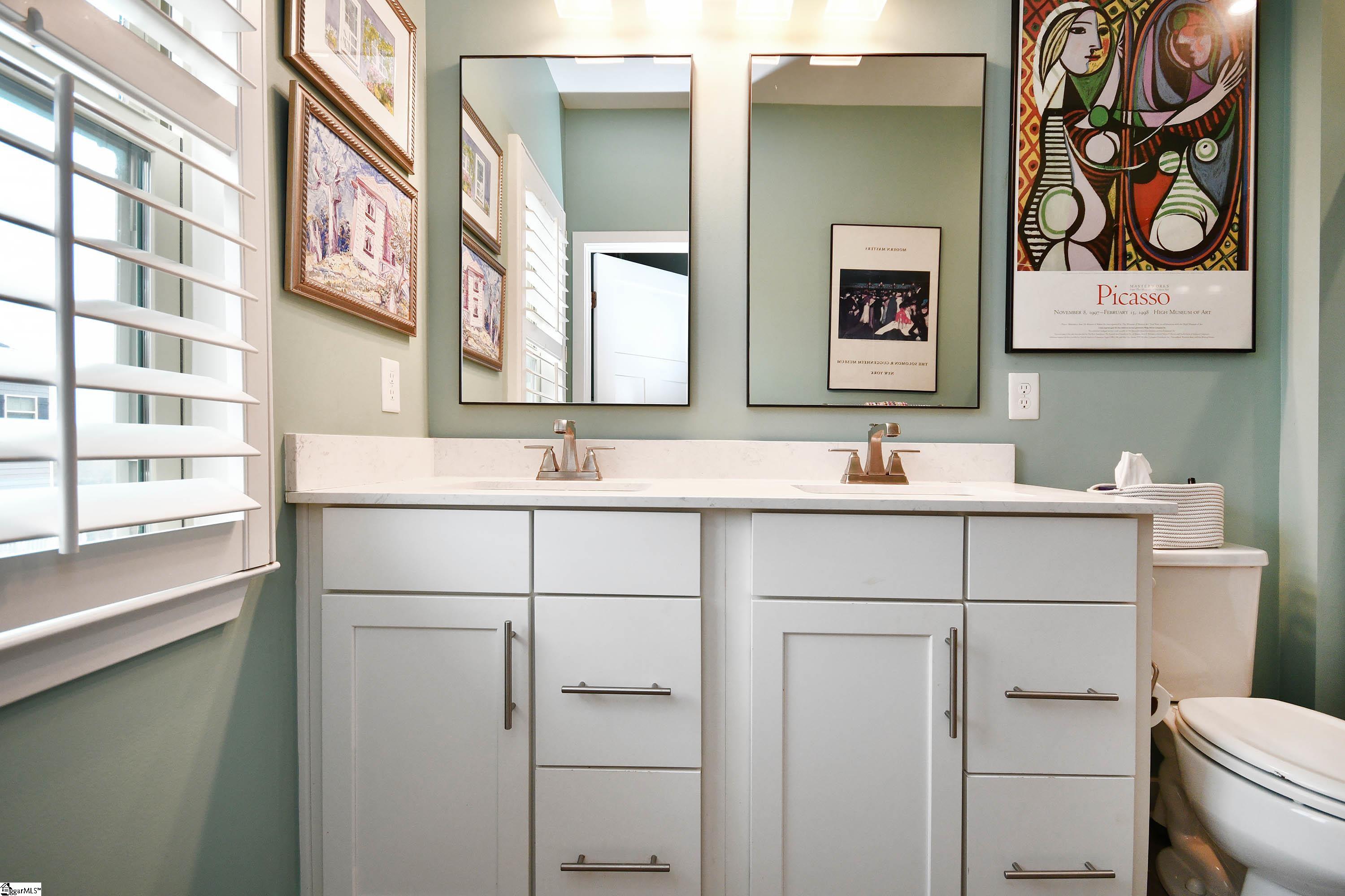 Location, Location, Location.....5 minutes from vibrant downtown Greenville South Carolina ! The number of restaurants and shops just keeps growing . This gorgeous 3 level townhome with 2 car garage is loaded with upgrades and incredible finishes. Enter on the main level into the wide open living room area with 1/2 bath that is great for entertaining friends and family. Custom 3 inch plantation shutters and crown molding with custom paint job.....the owner spared no expense. The amount of storage throughout this home will amaze you. Beautiful gourmet kitchen with huge quartz island, lots of prep space, gas stove , pristine white cabinets, ample food storage pantry that joins with a large dining space. Step out for a breath of fresh air on the large balcony thru the custom installed double doors and enjoy your morning coffee or a glass of wine as you enjoy the sunset in the evening. Owners suite upstairs with double vanity and step in shower in bathroom and custom closet. 2 additional bedrooms upstairs along with a full size laundry closet. The lower level boasts several options for storage and the 18x11 Flex/Office space can even be converted into a bedroom + bath as it is PLUMBED FOR A BATHROOM along with custom shelving in an additional closet. Walk or bike to Community Tap, Methodical Coffee, Harris Teeter.... Grocery /Pharmacy /Bar , grab some Pizza at Dal's or a burger at UJoint. Have lunch or dinner at Fork and Plough + Clare's Ice Cream right around the corner in Overbrook along with Timmons Park which is known for some intense Pickleball matches