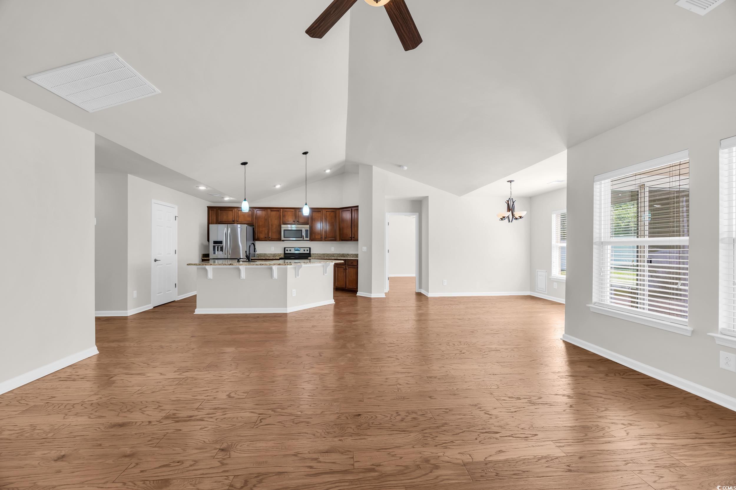 Move-in ready ranch, minutes to Cherry Grove Beach and highly desirable Lafayette Park! Summerton model built by Beazer Homes - 3 bedrooms, 2 bathrooms, Screened-in Porch & Privacy Fenced, Huge back yard. Large kitchen features a large center island, granite countertops and stainless steel appliances. LR has Vaulted ceilings and 5" wide-plank hardwood flooring that continues into the primary suite and walk-in closet. Both guest bedrooms feature wood flooring, no carpet throughout this entire home! Primary suite includes expansive walk-in closet and a 5' walk-in shower. separate laundry room, and a 2-car garage with utility sink, pull-down attic stairs, and ample storage space. Situated on over a quarter acre corner lot, enjoy outdoor living on the screened porch or brick paver patio overlooking a privacy-fenced yard with mature landscaping and an irrigation system. The home also includes a Generac whole-house generator, roof replaced in 2019, and a transferable termite bond for peace of mind. Lafayette Park residents enjoy a vibrant lifestyle with a community pool, tennis and pickleball courts, clubhouse, and year-round social activities, clubs, and seasonal events—all for a low HOA fee. A walking and golf cart path at the end of Brandywine Drive leads directly to the pool. Conveniently located just minutes to Cherry Grove Beach, Calabash, NC, shopping, and dining. Ask about owner finance option.