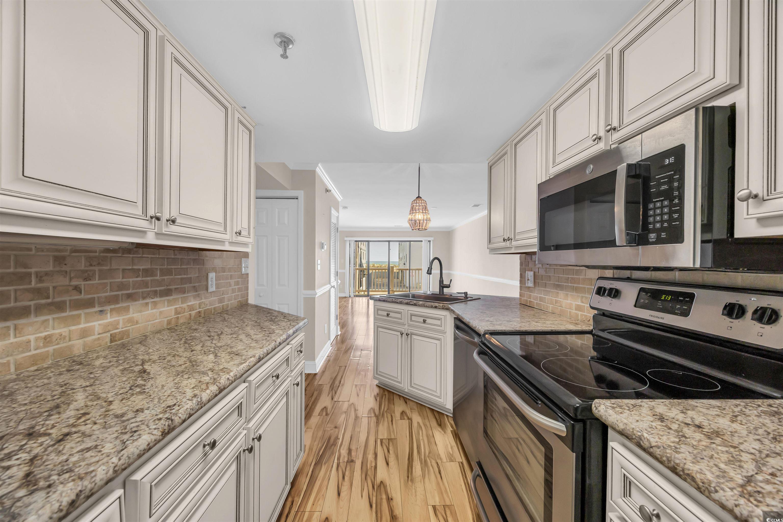 Rare Find in Cherry Grove Beach! Don't miss this rare opportunity to own a 2-bedroom, 2-bathroom condo in the highly desirable Grove Pointe community! Located right across the street from the Cherry Grove oceanfront, this charming beach retreat offers everything you need for a relaxing coastal lifestyle. Step onto the spacious porch, accessible from both primary bedroom and living room, where you can listen to the waves and enjoy the salty ocean breeze. Inside, the open living space is perfect for entertaining, and the primary bedroom suite features a private bath with a full shower/tub. The second bedroom is designed to maximize space, comfortable accommodating guests. This condo is fully equipped with washer and dryer, a modern kitchen with stainless steel appliances, and exterior storage-ideal for keeping your beach gear sand-free. The Grove Pointe community offers a refreshing outdoor pool and under-building parking, with golf carts and motorcycle permitted for homeowners. Grove Pointe is truly a hidden gem in Cherry Grove! Whether you're looking for a permanent residence, vacation home, or investment property, this is the perfect opportunity. Schedule your showing today!