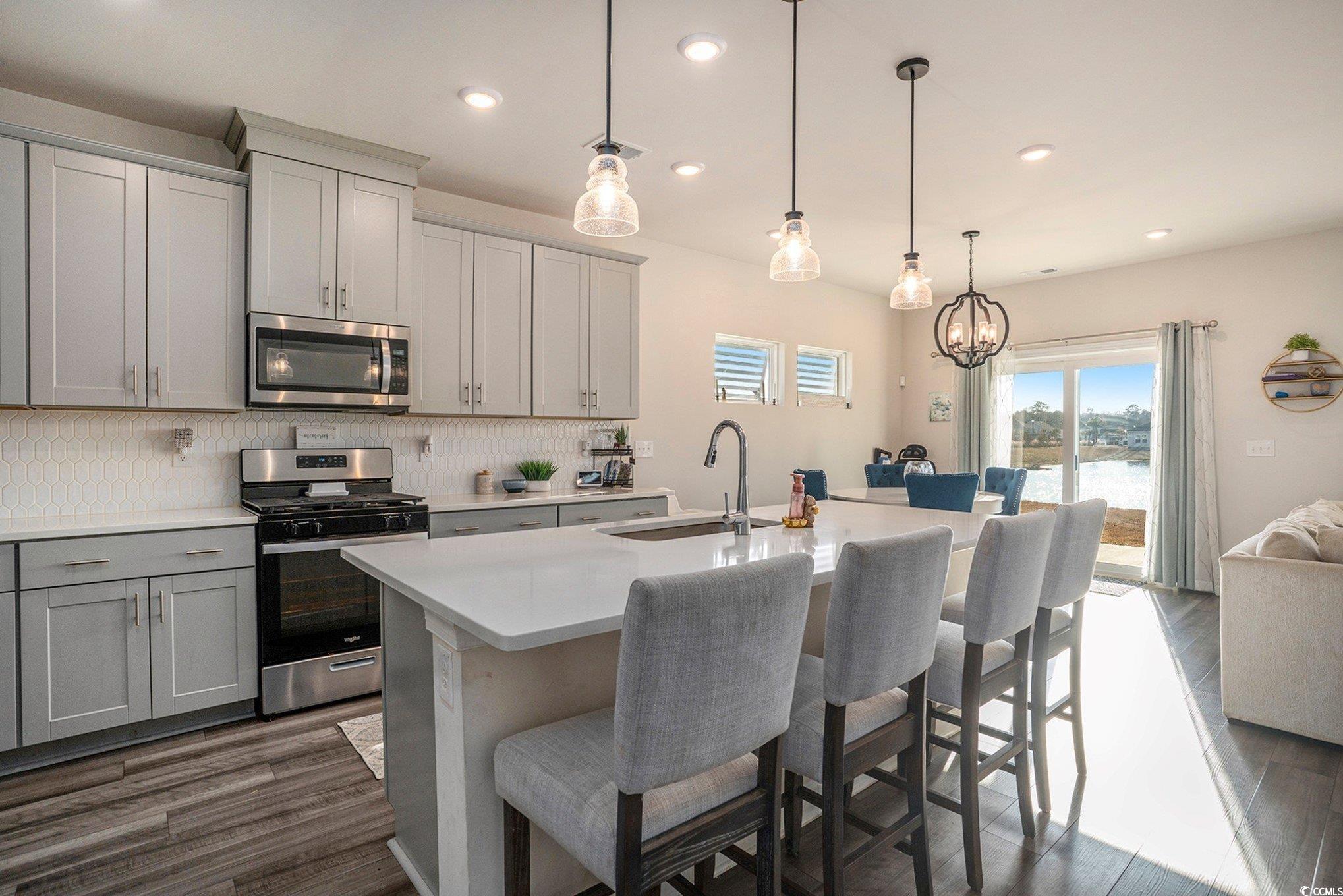 Located in the desirable Clear Pond community, this stunning newer home built in 2023 offers 5 bedrooms and 3 full baths with beautiful finishes throughout. The home features a formal dining room and a cook’s kitchen with quartz countertops, stainless steel appliances, gas range, large pantry, and coastal-colored luxury vinyl flooring. Quality carpet is featured throughout the home, adding comfort to the living spaces and bedrooms. The spacious primary suite includes an expansive walk-in closet, a beautifully finished primary bath, and a private balcony overlooking the serene lake. Additional highlights include a large loft area, oversized laundry room, water softener, tankless water heater, expanded driveway, and professionally landscaped yard. Residents of Clear Pond enjoy access to a recreational center, kids’ playground, and two community pools. Thoughtfully designed and well maintained, this home offers space, comfort, and style in a picturesque setting.