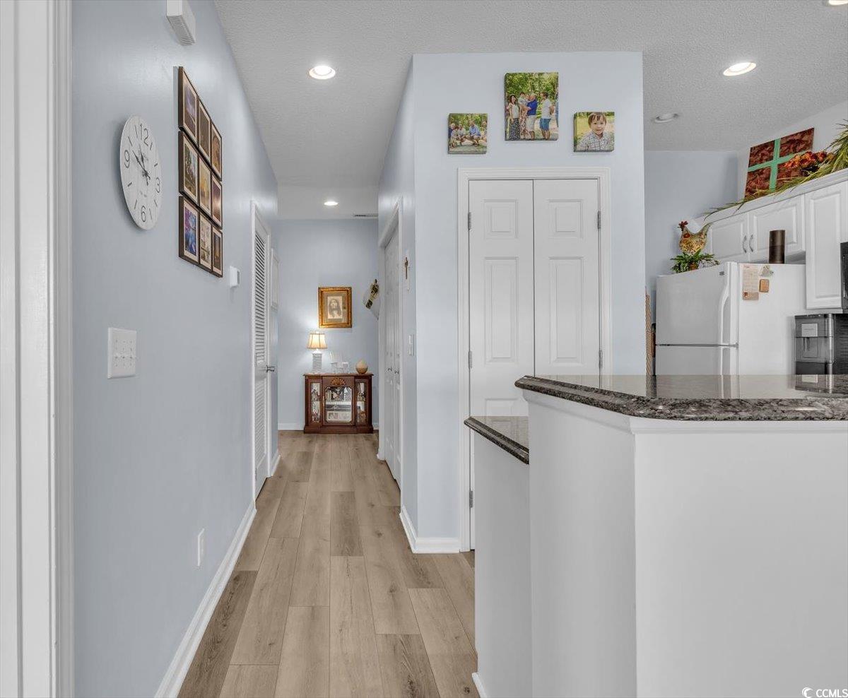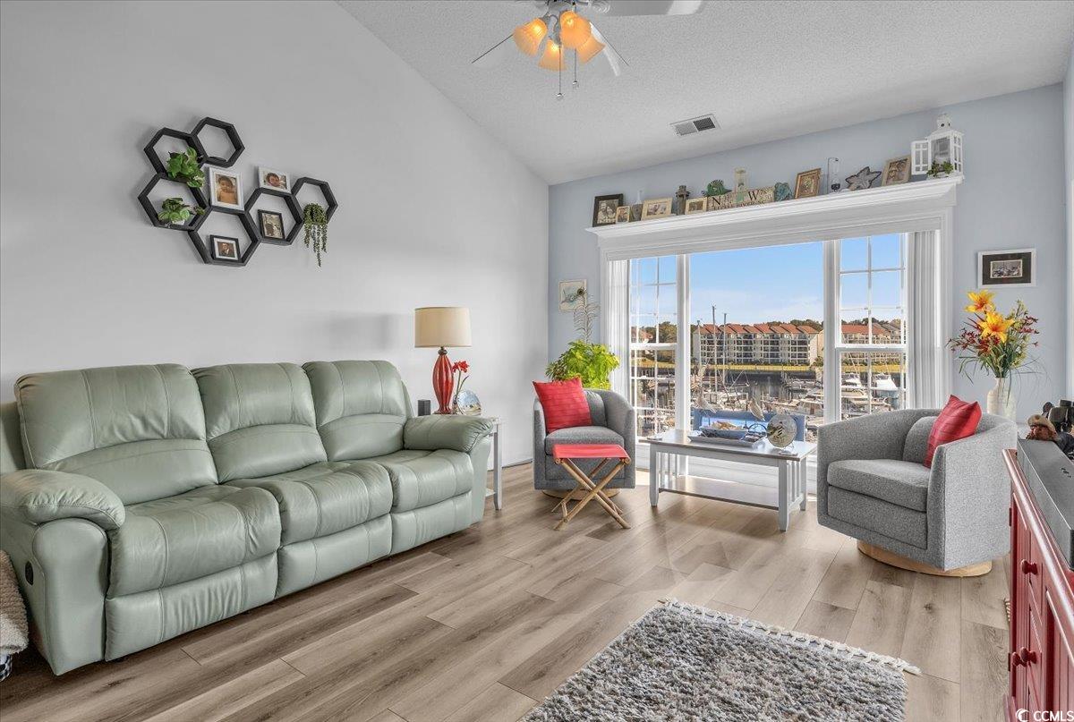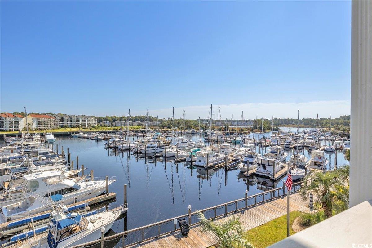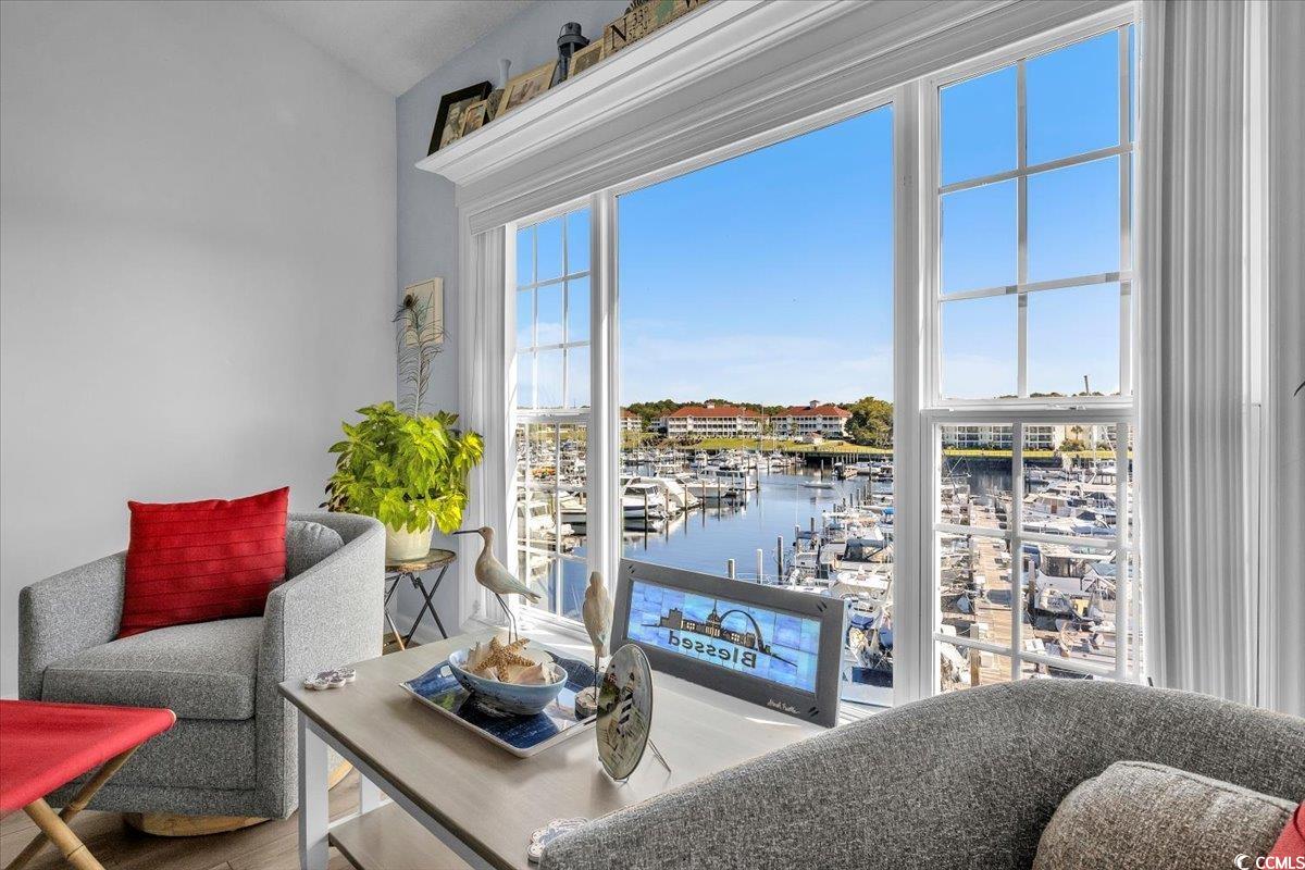 If there were a perfect place to live in Little River that had a view of the Marina and the Intracoastal Waterway - Here it is. Welcome to your serene retreat at 4609 Lightkeepers Way, Unit 11-L, in the highly sought-after at Lightkeepers Village community. This beautifully renovated 2-bedroom, 2-bath condominium offers a perfect blend of luxury and comfort. This Condo also has the option of being sold furnished too. As you step inside, you'll be captivated towards the large portrait windows overlooking the Marina and Yacht Club. The spacious living area offers an open floor plan that maximizes natural light where you’ll enjoy panoramic water views. The Condo has Luxury Vinyl plank everywhere which ensures a fresh and modern aesthetic. The kitchen features Granit countertops offering a style upgrade. The Dining area flows into a cozy Living space, perfect for relaxation or entertaining guests. Retreat to the master suite, which offers the same amazing views of the water. The Master has an ensuite bathroom with dual sinks and a Tub/shower. The second bedroom is generously sized and offers flexible space for guests or a home office. Even the guest bedroom has a wonderful view of the community pool and lush tropical landscaping. Step outside onto your private balcony, where you can sip your morning coffee while watching the sunrise over the water or enjoy evening sunsets with your favorite beverage. Lightkeepers Village offers a vibrant lifestyle within close proximity to local amenities, shopping, and stunning beaches. Seller purchased the black microwave and therefor offers an allowance for the remaining white appliances to be replaced.