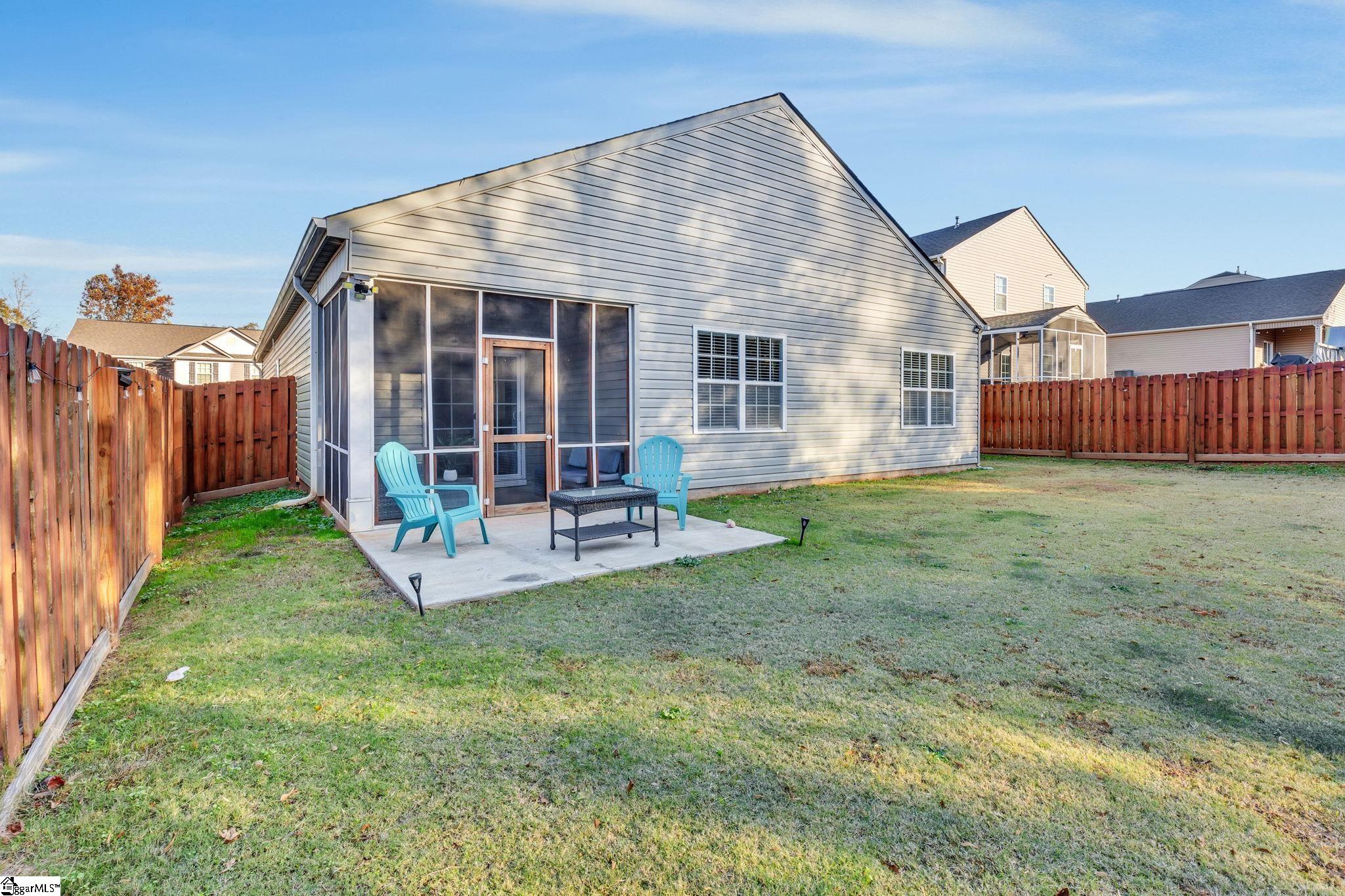Welcome to 461 All Seasons Drive in Clairmont Estates, a beautifully maintained one-owner home tucked away on a quiet cul-de-sac in Boiling Springs. Built in 2019, this single-story home offers just under 1,700 sq. ft. of well-designed living space with an open-concept floor plan and modern finishes throughout. You’ll love the large, flat lot with mature trees in the back, a fully fenced yard, and an extended patio — perfect for outdoor gatherings. A screened porch overlooks the backyard, providing a peaceful spot to unwind on warm evenings. Inside, the home features luxury vinyl plank flooring throughout, a spacious kitchen with a large island ideal for entertaining, and a bright, open living area that feels both welcoming and functional. Every room is thoughtfully placed for comfort and flow, including a convenient laundry room. Enjoy the serenity of country living while still being close to shopping, dining, and all that Boiling Springs has to offer. This home has been meticulously cared for and is truly move-in ready — an easy home to maintain and love for years to come. This home is perfectly situated just minutes from downtown Spartanburg, with quick access to I-26, I-85, and Highway 9. This home is located about 20 minutes to BWM and GSP airport.