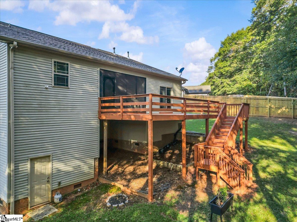 Welcome to 461 Madison Creek, and discover this charming 4-bedroom, 2-bath home nestled in a quiet one-street cul-de-sac neighborhood, offering both privacy and convenience. Ideally located between Greer and Spartanburg, just minutes from shopping, dining, and major highways, including I-85 and Hwy 29, this home combines small-town tranquility with everyday accessibility. As you step inside, the open floor plan and vaulted ceilings immediately set a welcoming tone. The great room features wood laminate flooring and a cozy gas fireplace, creating the perfect space for relaxing or entertaining. The kitchen opens seamlessly to the dining area and rear porch, making family gatherings even more fun! The large primary suite on the main level features dual sinks, a garden tub, a separate shower with a brand new glass door, and a walk-in closet. The home’s split-bedroom design provides privacy for guests or family, with the additional 4th bedroom upstairs. Enjoy the outdoors on your large deck overlooking a private, tree-lined backyard—perfect for morning coffee, cookouts, or simply relaxing. The covered and screened rear porch extends your living space, offering comfort year-round. Additional highlights include a two-car garage, a tall crawl space for extra storage, new interior paint throughout, and a new water heater (2024). The taxes are currently at a 6% rate (non-owner occupied) and will be significantly lower for buyers purchasing as a primary residence. Don’t miss this wonderful opportunity to own a move-in-ready home in one of Lyman’s best-kept neighborhoods—schedule your private tour today!