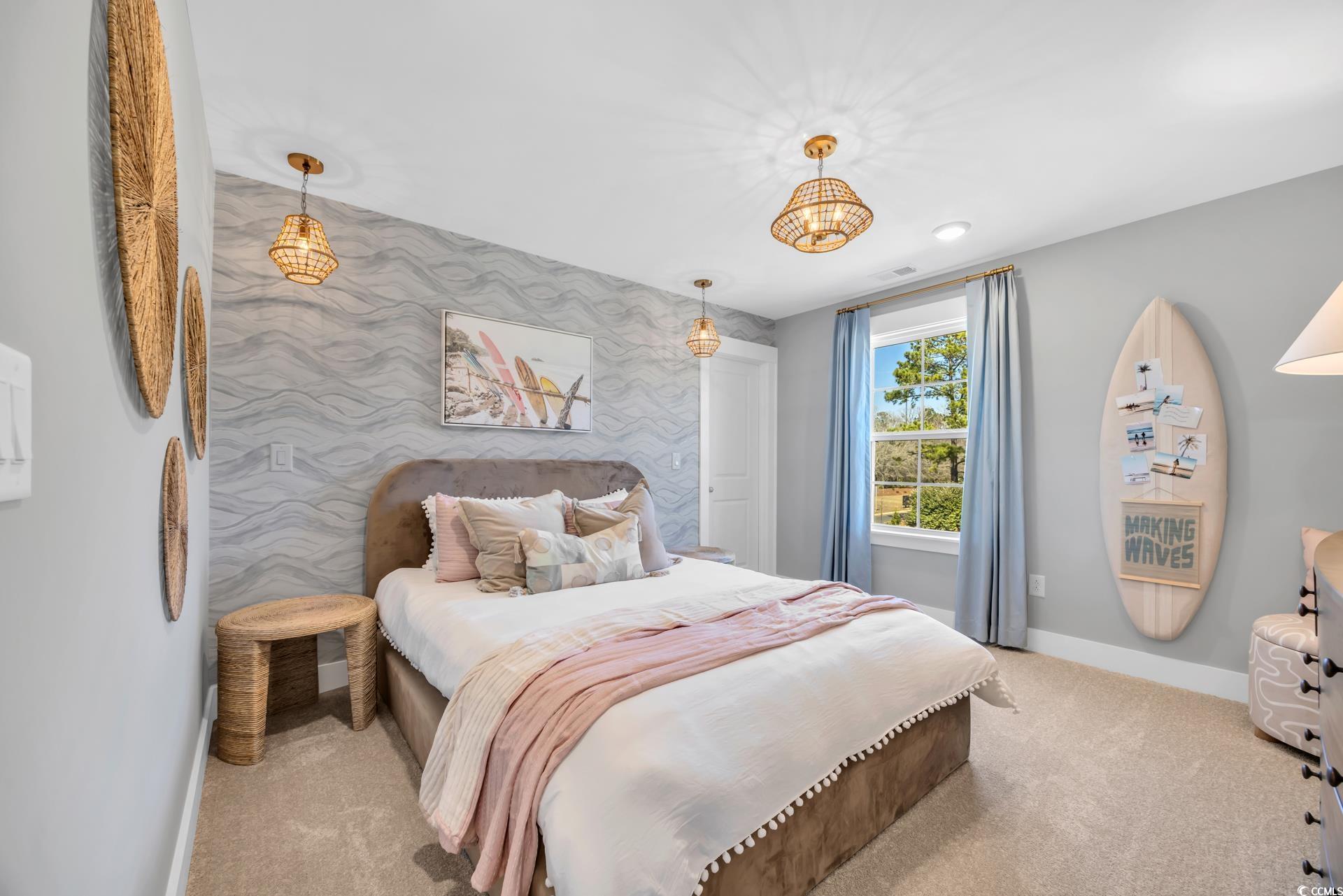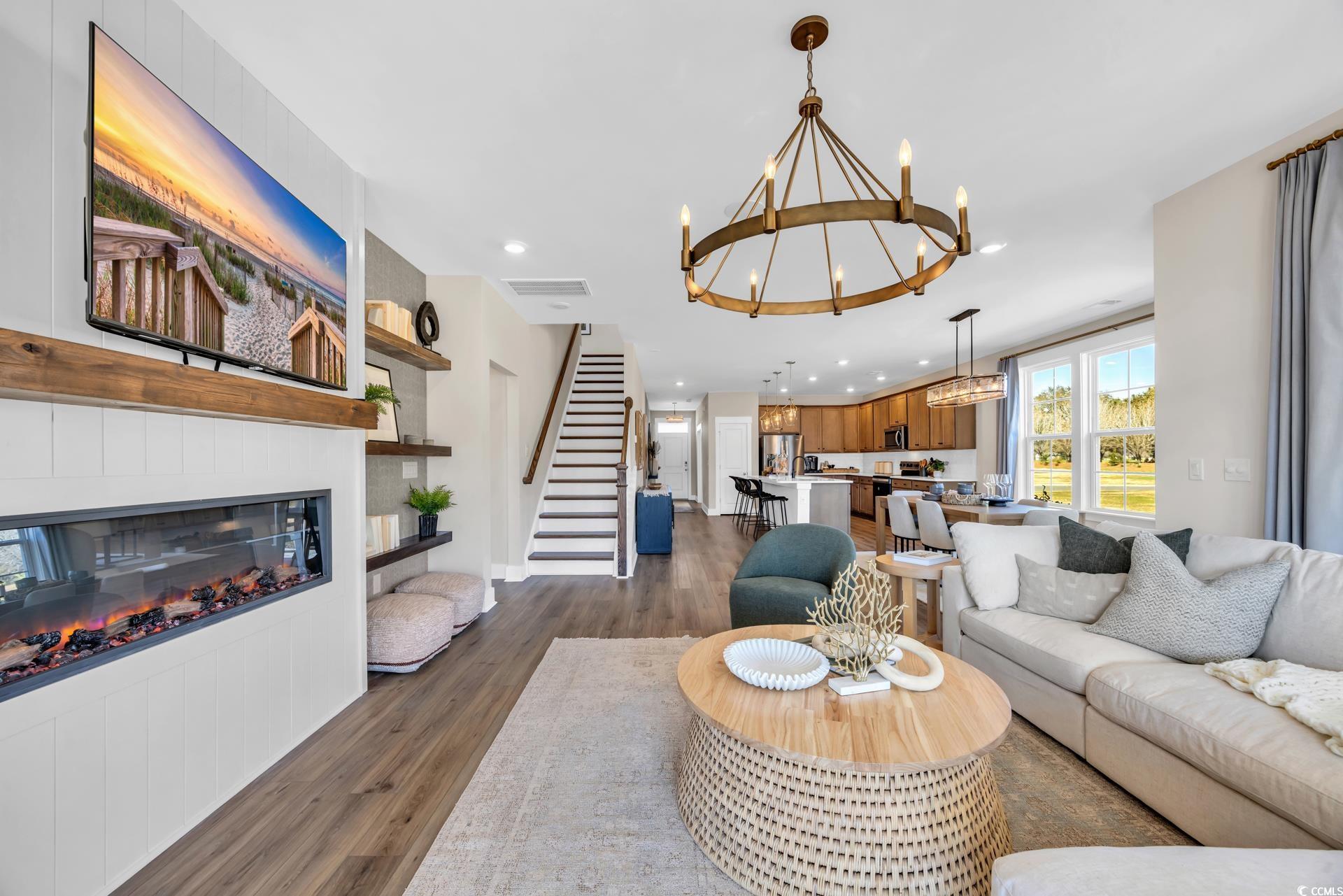 Welcome to Chestnut Farms. The Lighthouse floorplan offers Six-foot windows, allowing tons of natural light into this home. Gourmet Kitchen with quartz countertops, stainless steel appliances, and a generous island are features of the kitchen with an open concept to dining and living area. The ensuite bath features a dual vanity, private water closet, and large owner’s closet. Primary on the 1st floor with LVP flooring. Four additional bedrooms are upstairs with a spacious bonus room. The home also features a first floor study, great for an office. Relax in the evening on the extended covered porch! Take advantage of this ideal location, just minutes from the best beaches, restaurants, and shopping the Grand Strand has to offer! Under 7 miles to the beach of Arcadian Shores. * Pictures are from our decorated model.