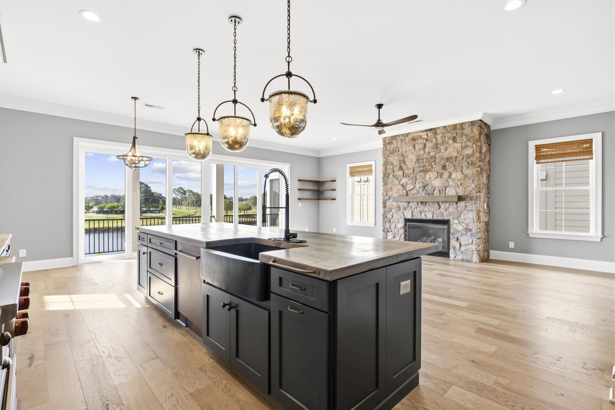 A stunning custom-built waterway home where luxury, comfort, and exceptional craftsmanship come together in perfect harmony. From the moment you step inside, you’ll be captivated by the exquisite trim work, custom ceilings, wood beam accents, and striking stone fireplace that make this residence truly unforgettable. Featuring 4 bedrooms and 4.5 baths, this one-of-a-kind home offers spacious en-suite bedrooms throughout, providing privacy and comfort for family and guests alike. Designed for both everyday living and entertaining, the chef’s dream kitchen is the heart of the home, showcasing butcher block countertops, a Sub-Zero refrigerator with custom cabinetry, Wolf cooktop, wall oven, microwave, and an oversized walk-in pantry with additional cabinetry for small appliances and extra storage. The spacious primary suite is a true retreat, offering room for a sitting area and access to a beautiful porch overlooking the Intracoastal Waterway and the Myrtlewood Golf Club putting green. The spa-inspired primary bath sets this home apart with a stylish soaking tub positioned inside an expansive custom shower, along with a custom-designed closet featuring built-in shelving throughout. Convenience meets luxury with an elevator servicing all three levels, making unloading groceries from the oversized garage effortless. The garage also features additional storage space and a built-in car vacuum. The first level offers the perfect private guest quarters complete with a living room, bedroom, full bath, and built-in bar with beverage refrigerator, ideal for visitors or multi-generational living. Step outside to the backyard where a fire pit creates the perfect gathering space, while the expansive yard provides a blank canvas to create the pool of your dreams. Rarely does a home of this caliber become available. If you are in the market for a waterway home, schedule your private showing today.