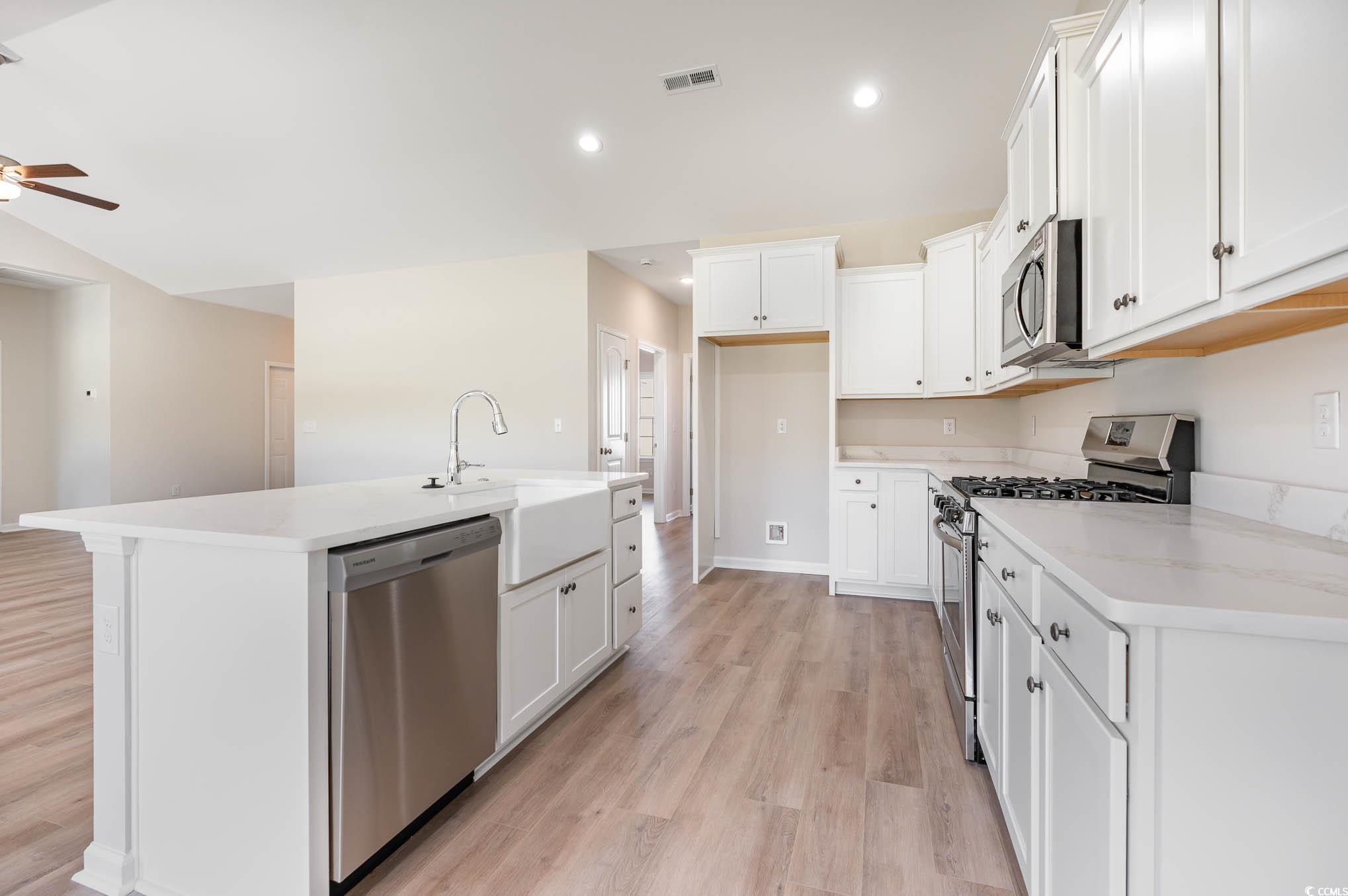 Home is under construction, expected completion is December. Photos are from a similar home in the community. Golf cart to the beach from this beautiful Sullivan floor plan. Building lifestyles for over 40 years, we remain the premier home builder along the Grand Strand. We’re proud to be the 2021, 2022, 2023, and 2024 winners of both WMBF News' and The Sun News Best Home Builder award, 2023 and 2024 winners of the Myrtle Beach Herald's Best Residential Real Estate Developer award, and 2024 winners of The Horry Independent’s Best Residential Real Estate Developer and Best New Home Builder award. This Sullivan 3-Car Garage floor plan is very open with lots of natural light. Stainless appliances, marble-look quartz breakfast bar and counters and pendant lights over the kitchen island combine to give you the wow factor you're looking for. Abundant recessed lighting, double windows in the adjacent dining area, triple windows in the great room and a full glass door flood the home with light. The glass door in the dining room leads to the covered rear porch and additional patio, with a fully-sodded backyard. All of the homes in Ocean Palms come standard with the luxury of natural gas (tankless water heater, gas heat, and gas range). The three car garage is completely trimmed and painted, with a wifi-enabled garage door opener, and floored attic storage space accessed by drop-down stairs. Ocean Palms is conveniently located near shopping, restaurants, schools, world class medical offices and hospitals, and is only a short golf cart ride to Surfside Beach's gorgeous beach and the beautiful Atlantic Ocean. Community pool and cabana.