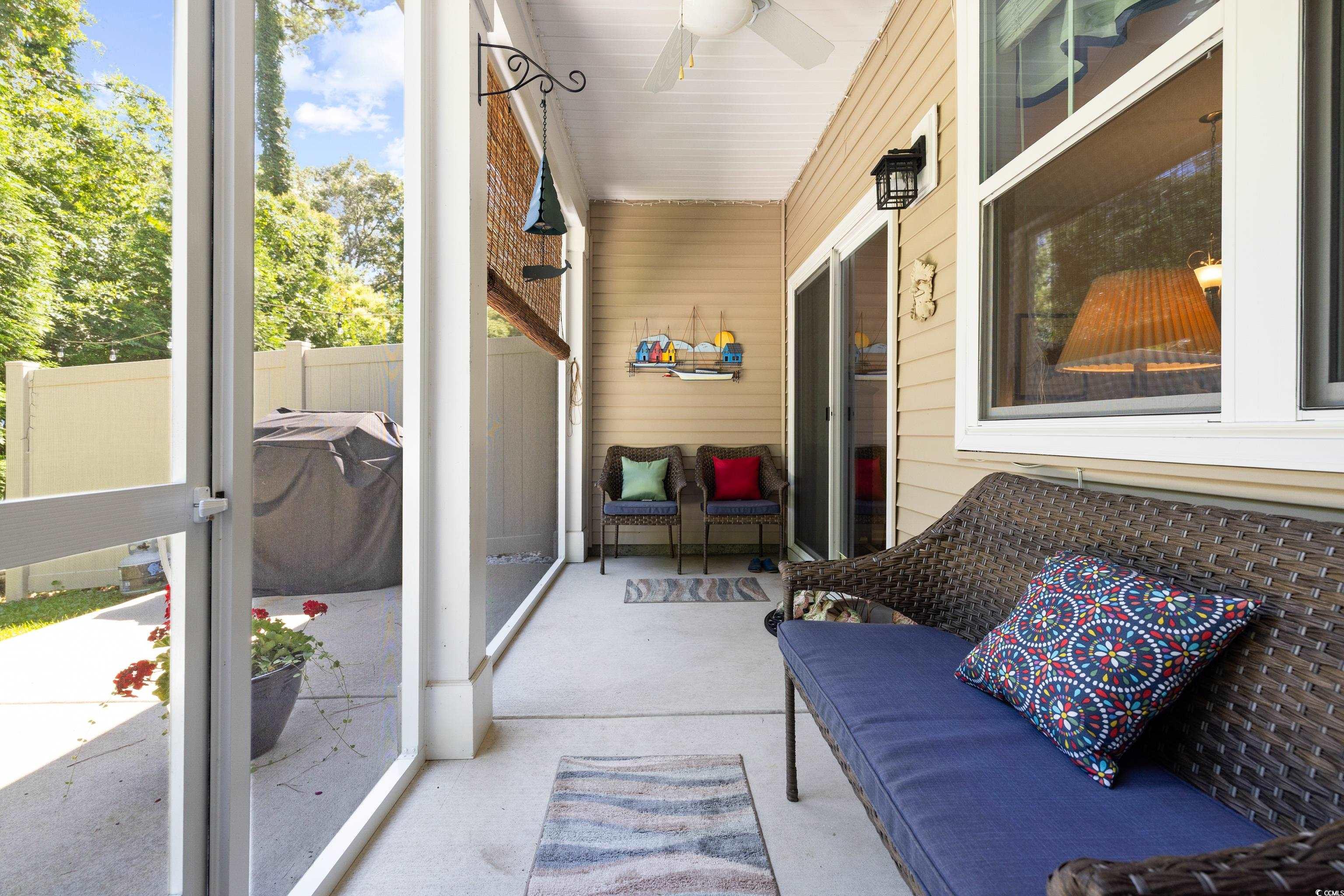 Tucked away in the heart of Little River, this stylish townhome blends comfort, privacy, and location into one perfect package. From high 10-foot ceilings to a peaceful backyard oasis—complete with a newly screened porch—this home is anything but ordinary. Inside, you’ll find a beautifully updated 3-bedroom, 2.5-bath layout with a bright open-concept main level featuring a spacious kitchen with granite countertops, stainless steel appliances (including a new gas range), a breakfast bar, and large pantry. The freshly painted interior, new half bath finishes, and new fans in every bedroom and the living room add a polished, move-in-ready feel. All bedrooms are conveniently located upstairs, including a roomy primary suite with double sinks and a generous walk-in closet. A one-car garage (recently painted) adds convenience and extra storage. As part of Cypress Village, you’ll enjoy access to a resort-style amenity center with a pool, pickleball courts, fire pit, bocce ball, putting green, fishing, and a full fitness center. Plus, you're just minutes from the Intracoastal Waterway, Vereen Memorial Gardens, waterfront dining, and the best of North Myrtle Beach.