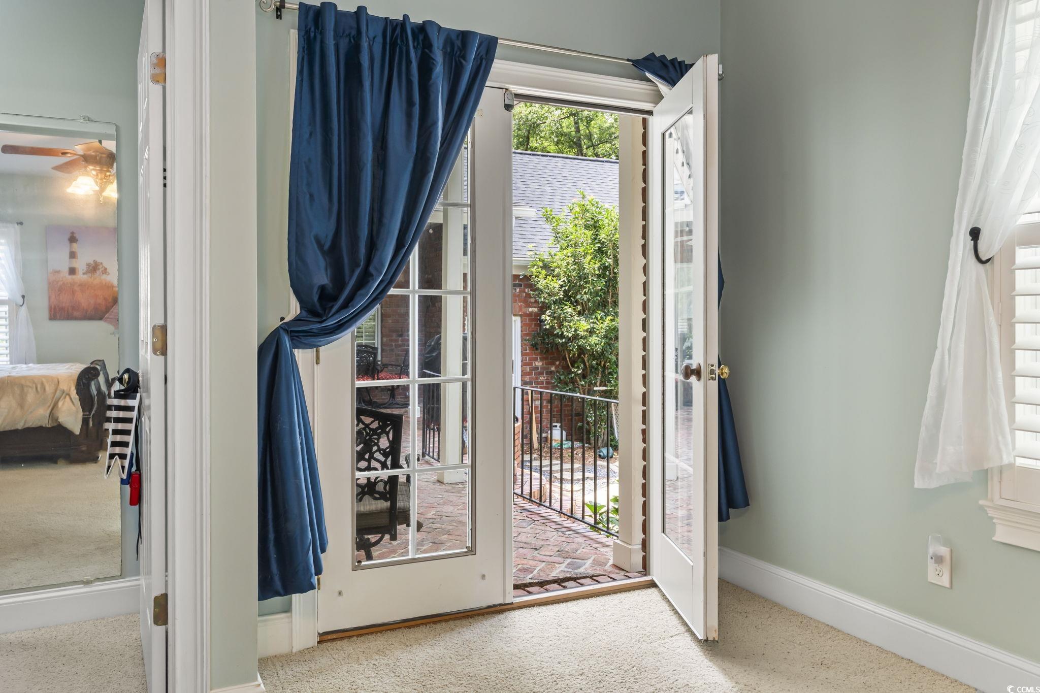 Southern elegance meets comfort and functionality in this stunning brick estate located in the prestigious gated community of Wachesaw Plantation in Murrells Inlet, SC. Thoughtfully updated and beautifully maintained, this spacious 5-bedroom, 4.5-bathroom home is a true Lowcountry gem offering timeless design, modern upgrades, and an unbeatable location. Step into comfort and style with fresh paint throughout the upper level, and brand-new flooring upstairs, adding a clean and contemporary feel to the home. The main level features plantation shutters, a huge sitting room, and a cozy family room centered around a brick fireplace - perfect for both wood-burning or propane fires. The heart of the home is the expansive kitchen, featuring custom cabinetry, stunning countertops, a double-door pantry, stainless appliances, and a work island that doubles as a breakfast bar. Downstairs features three bedrooms and 2½ baths with a full bath with a tub/shower combo and walk-in closet, making this layout both practical and inviting for guests. Upstairs, a large bonus room offers private balcony access with views of the backyard, creating a peaceful spot for relaxation, play, or productivity and two large bedrooms. Outdoors, you'll discover your very own private oasis - a 2023 fiberglass saltwater pool (5 ft depth) sets the stage for fun in the sun, while the covered porch with ceiling fans and lighting makes entertaining a breeze, day or night. The fenced-in backyard provides room to create your dream outdoor kitchen or simply enjoy the serene setting. Additional highlights include a side-load 2½-car garage with ample space for vehicles, and storage, complete with cabinets, utility sink, leaf filters, encapsulated crawlspace and washer/dryer included. Just minutes from Wacca Wache Marina- great for exploring the river by boat, kayak, or jet ski. The Murrells Inlet MarshWalk, Brookgreen Gardens, beautiful beaches, and premier golf courses are also nearby, along with a variety of fine dining and shopping options. Wachesaw Plantation offers a true Lowcountry lifestyle, with optional equity memberships providing access to Kimbel's Restaurant overlooking the 18th hole and the Waccamaw River, a Tom Fazio-designed private golf course, Magnolia's Pool Bar & Grill, tennis courts, a community pool, clubhouse, and pro shop. This is more than just a home - it's a lifestyle. Southern living at its finest. Don't miss your opportunity to make this exceptional property yours - schedule your private showing today! All measurements are approximate and not guaranteed. Buyer is responsible for verification.