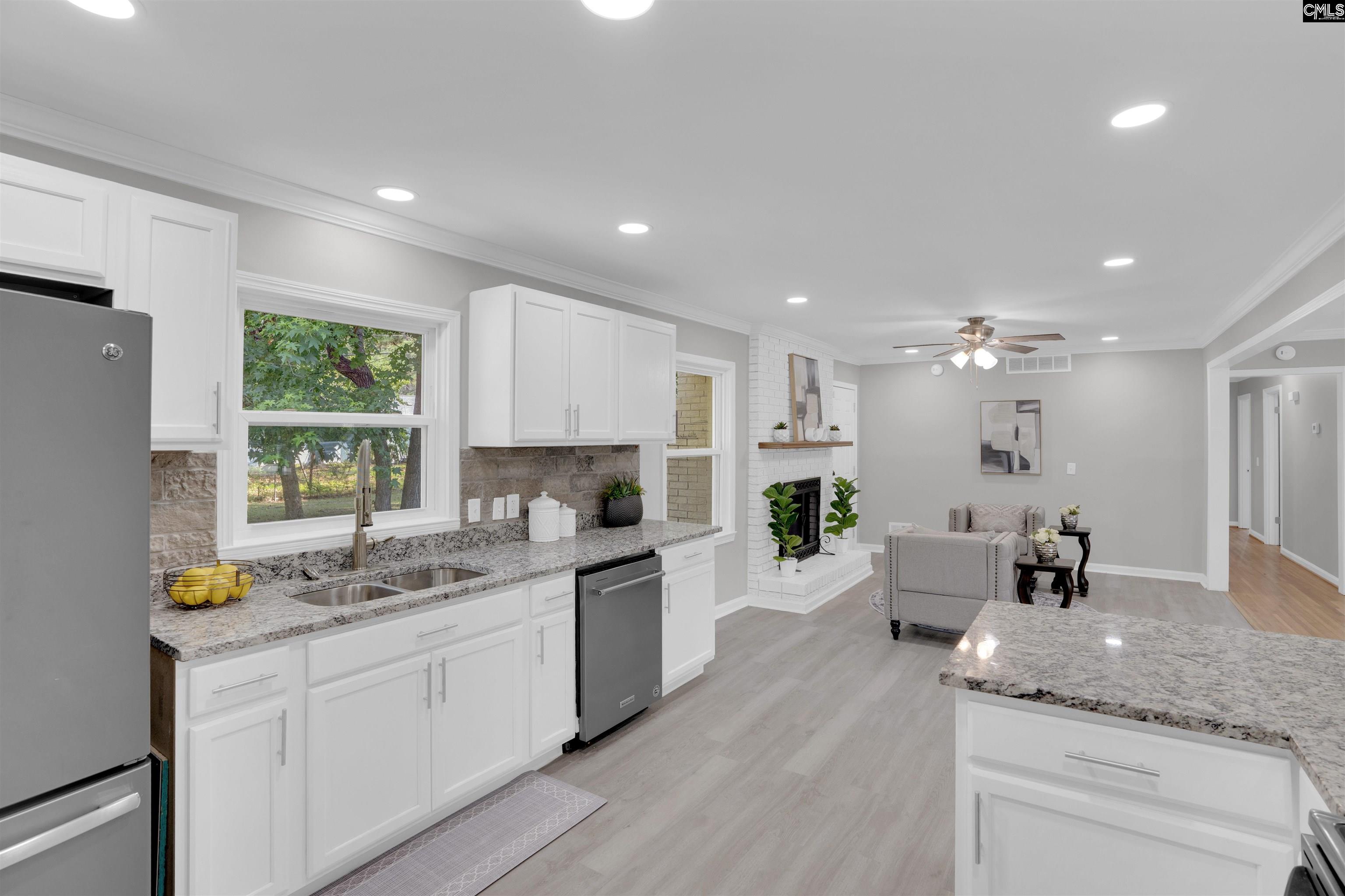 Beautiful home in the Satchelford Terrace community of Forest Acres! The endless remarkable features of this cozy, ranch style home will not disappoint. This beauty warmly welcomes you from the covered front porch into the expansive formal living and dining areas with gleaming refinished hardwood flooring, lots of natural light and fresh paint throughout. These areas seamlessly transition into the eat-in kitchen with granite countertops, plenty of cabinetry and brand new appliances while perfectly overlooking and combining a lovely flex area with a wood burning fireplace which brings its own charm, character and warmth to this space. The freshness of this home is undeniable. Featuring brand new windows, new HVAC, new water heater, new plumbing and new garage openers for the 2 car garage have recently been installed. The interior layout is perfect for entertaining as well as the exterior. The tranquil, fenced-in backyard is very spacious with the perfect amount of mature landscaping. Close to shopping, dining and major interstates. Disclaimer: CMLS has not reviewed and, therefore, does not endorse vendors who may appear in listings.