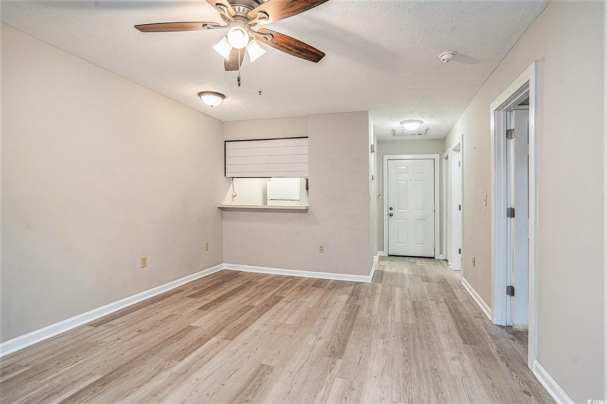 Welcome to this bright and inviting one-bedroom condo tucked away on the upper level of a well-maintained community in the heart of Myrtle Beach. Situated in a desirable location, this top-floor residence offers a peaceful retreat with views of the sparkling community pool right outside your window. Step inside to find a thoughtfully designed kitchen outfitted with durable hardwood cabinetry and a complete suite of appliances, including a brand-new electric range, refrigerator with built-in ice maker, dishwasher, and microwave. The kitchen flows into a spacious open-concept living and dining area, where oversized windows flood the space with natural light and provide direct access to a cozy, covered balcony—perfect for morning coffee or relaxing evenings. The bedroom is generously sized and includes a walk-in closet and sliding door access to the balcony for that perfect indoor-outdoor feel. Throughout the home, you'll find easy-care luxury vinyl plank flooring—no carpet in sight! For added convenience, there’s a stackable washer and dryer neatly tucked away in the hallway between the bedroom and the bathroom. Additional features include an assigned parking space and access to the on-site pool, ideal for cooling off on warm coastal days. Whether you're looking for a full-time residence, a weekend escape, or a rental property, this condo checks all the boxes. Opportunities like this in such a prime location don’t come around often—schedule your private showing today!
