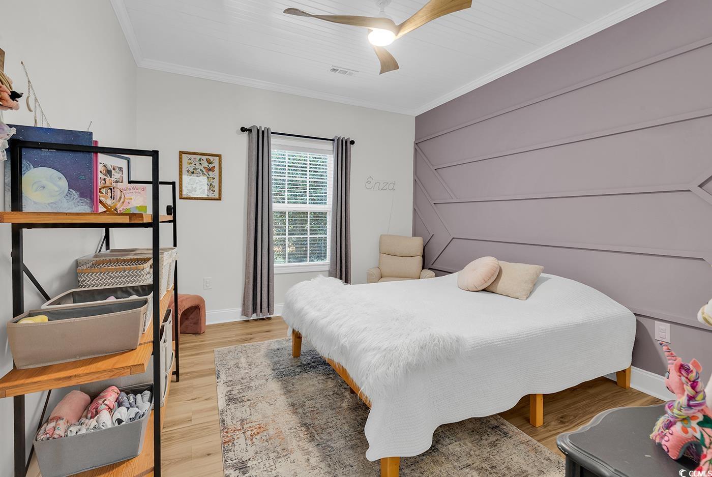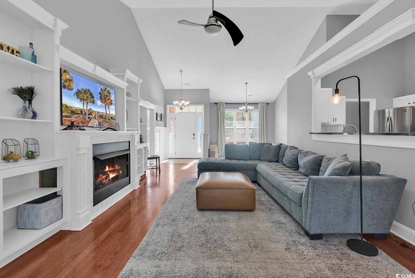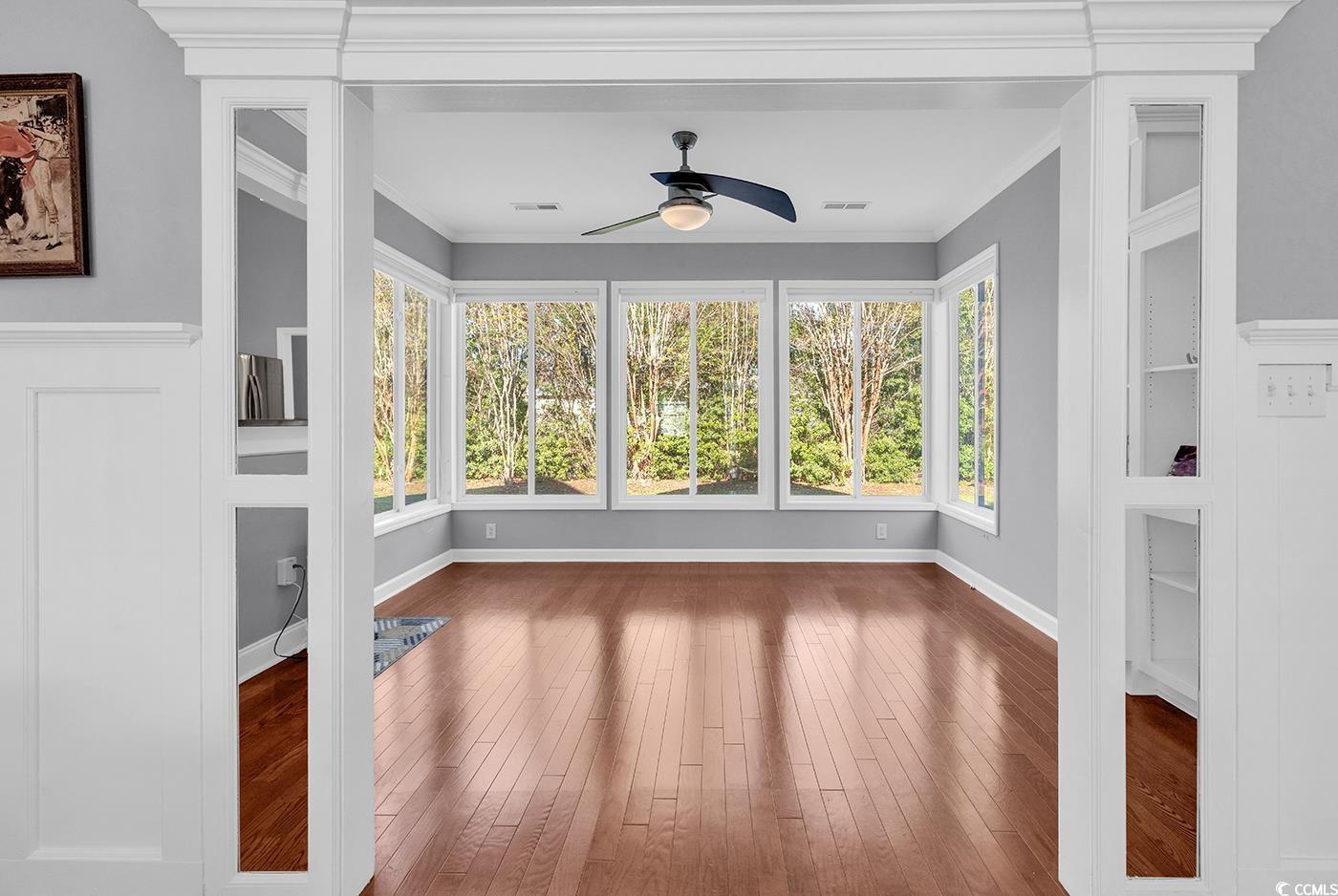 Come see this lovely & spacious 4 bedroom, 2 bath home in the beautiful golf course community of Waterford Plantation. From the moment you walk through the front door you will see the charm of this property, with vaulted ceilings, a cozy living room fireplace and the wall of built-in bookcases. The floorplan is ideal with the split bedroom layout and an open kitchen that features stainless steel appliances, granite countertops, a breakfast bar and breakfast nook area. Take notice to the pretty engineered wood floors throughout the main living space on the first floor. An added bonus, is a 4th bedroom/office or flex room room over the 2 car garage. One of the home's highlights is the extra space in the all-season Carolina room which leads you out to an extended patio which is paired with a private fenced backyard. Its such a charming neighborhood with amenities that include a pool, tennis courts and exercise facility. A huge plus is this community has sidewalk-lined streets and beautifully landscaped, well manicured common areas. Waterford Plantation is perfectly located, Close to shopping and restaurants, and it's only a 15 minute drive to the beach. Check out this adorable homesite and schedule your showing TODAY!