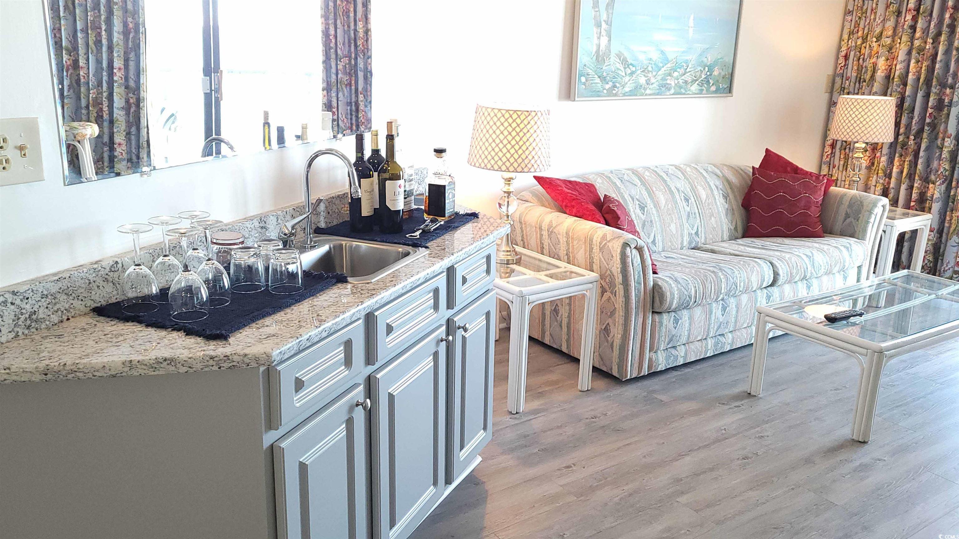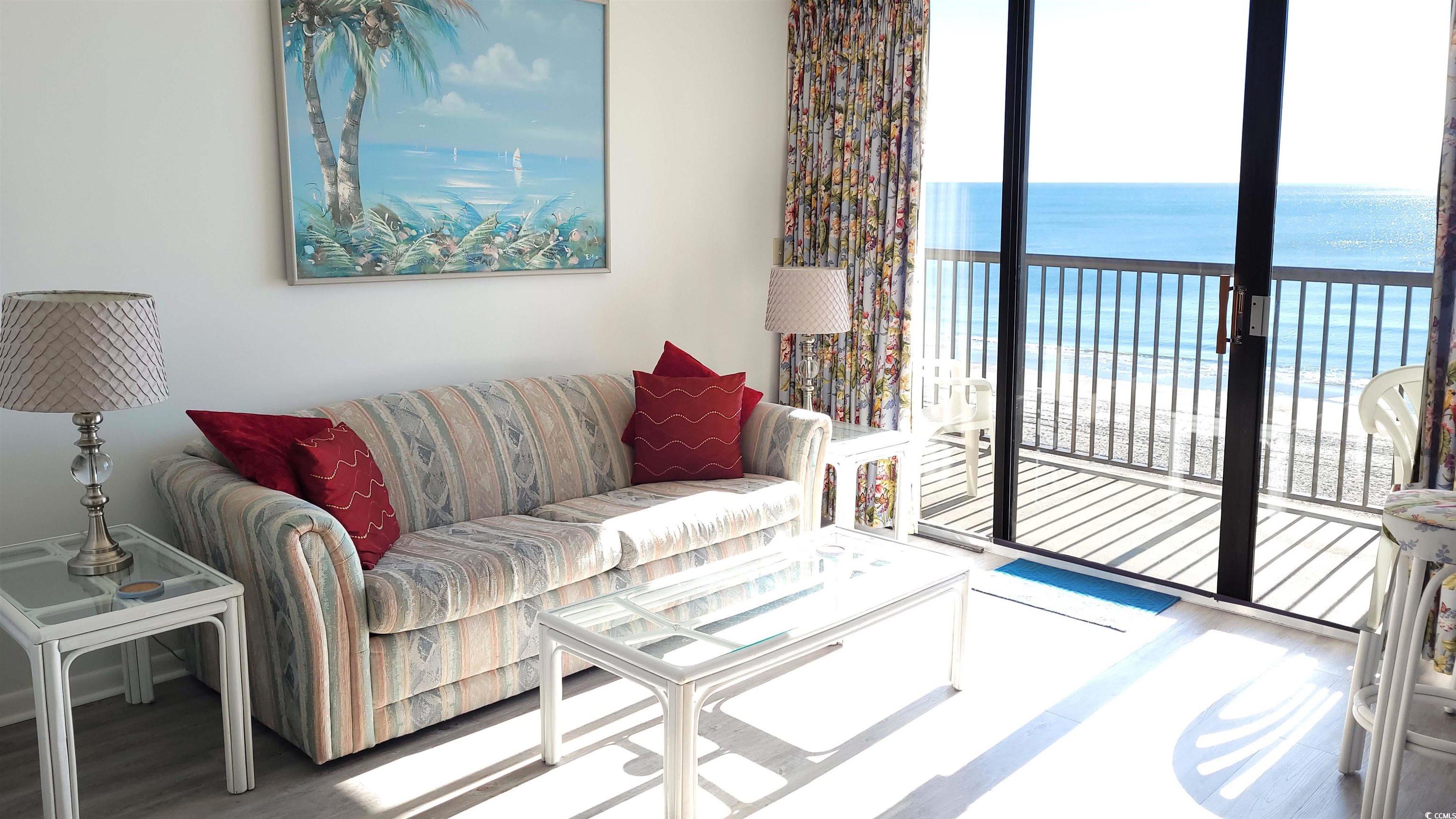 This recently renovated 3 bedroom 2 bath condo unit is in the very popular Sea Winds building in the Windy Hill section of North Myrtle Beach. This corner 6th floor unit is fully furnished and comes equipped with all the furnishings and appliances as well as 3 balconies for incredible light and enjoyment of the sea breezes. The Master bedroom and the living room both have access to the ocean front balcony which measures 28ft. by 6ft.. 168 ft. of additional living space.. The master also has a ceiling fan, black out curtains and a 42" TV with a swivel wall mount. There are new granite counter tops throughout - including the kitchen, both bathrooms and the wet bar.