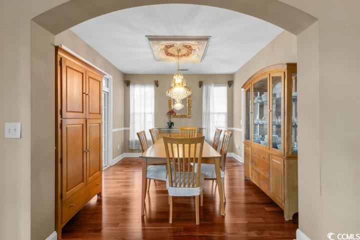 Welcome home to this beautiful brick-front 3-bedroom, 2-bath residence perfectly situated on a premium pond lot in one of Carolina Forest’s more upscale communities. From the moment you enter, you’re greeted by a large, welcoming foyer that sets the tone for the spacious and thoughtfully designed interior. Cathedral ceilings soar over the living room, kitchen, and Carolina room, filling the home with natural light and an open, airy feel. The floor plan offers both elegance and functionality, featuring a formal dining room ideal for entertaining, along with an eat-in kitchen perfect for casual meals and everyday living. The oversized two-car garage provides ample space for vehicles and includes a separate 19' x 5.5' storage area—ideal for tools, beach gear, or extra storage needs. Relax and enjoy pond views from the large Carolina Room or from the rear screened porch, complete with vinyl window panels that open and close, allowing the space to be comfortably used year-round. Conveniently located near shopping, medical facilities, and restaurants, this home is also just a short drive to the beach and all the attractions Myrtle Beach is famous for. Being sold partially furnished—ask your Realtor for a complete list of furniture that will convey. This is a wonderful opportunity to own a move-in-ready home in a highly desirable location.