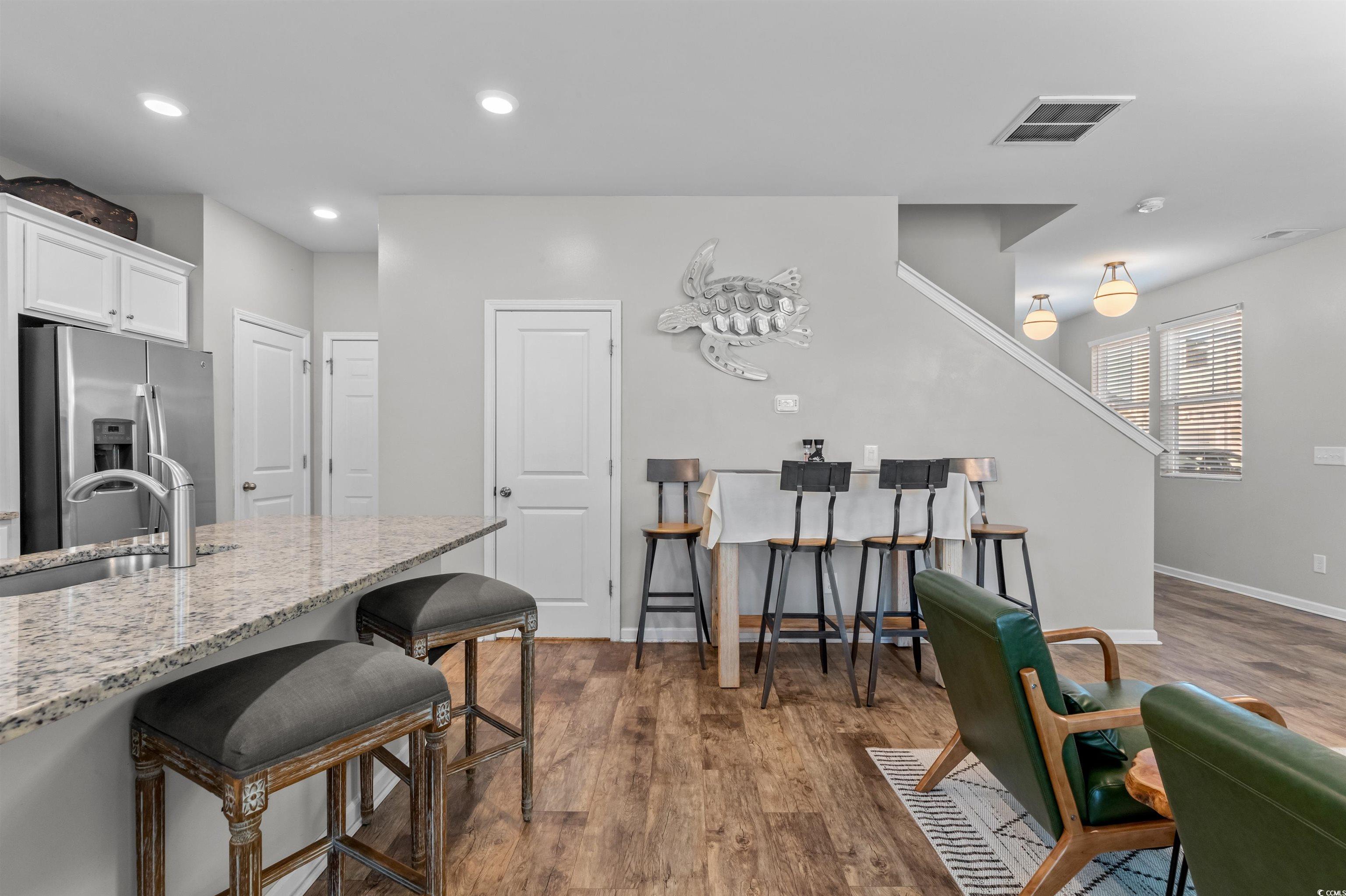Discover relaxed coastal living in this beautifully-appointed three-bedroom, three-bath home nestled within The Cloisters at Myrtlewood—just minutes from the beach and vibrant area attractions. Featuring a light-filled open concept main level with a gourmet kitchen with a large island, stainless steel appliances, and granite countertops. Upstairs, the spacious owner’s suite boasts an en-suite bath with dual vanities and walk-in closet. Outside enjoy low-maintenance exterior landscaping, a two-car garage, and room for beach gear and entertainment alike. Located less than a mile from the shoreline and a short drive to shopping, dining and nightlife, this residence offers the perfect opportunity for full-time living or investment potential. With short-term rental permitted and modern finishes throughout, this is a rare opportunity to own both comfort and lifestyle in one of Myrtle Beach’s most accessible boutique communities. Seller is related to Listing Agent.