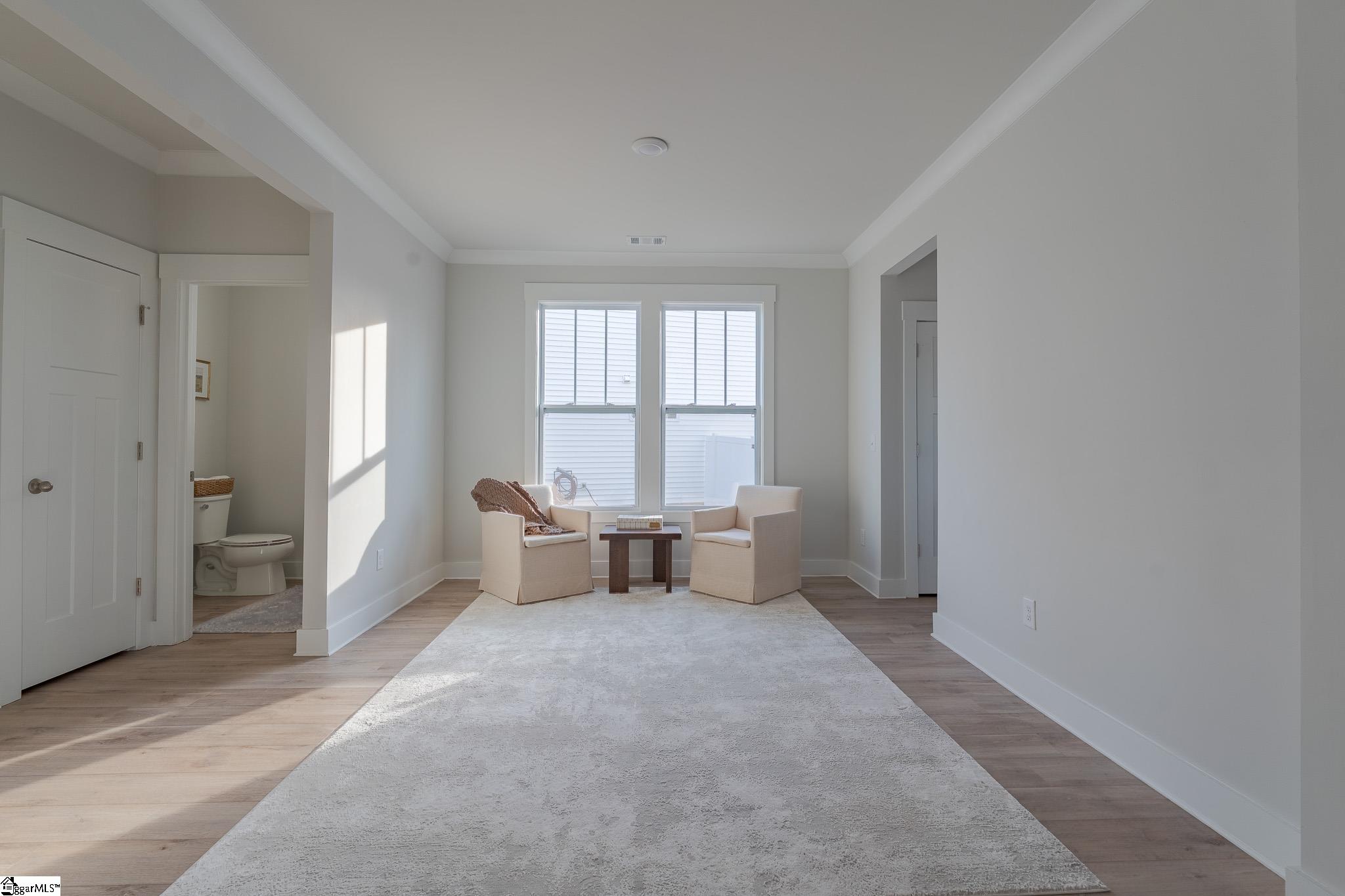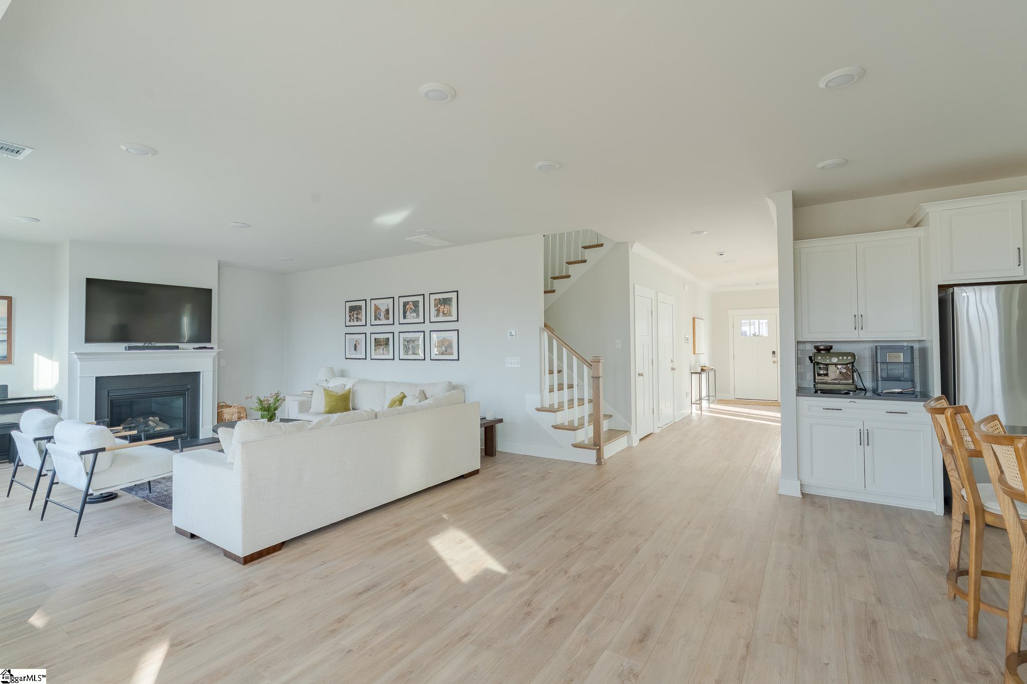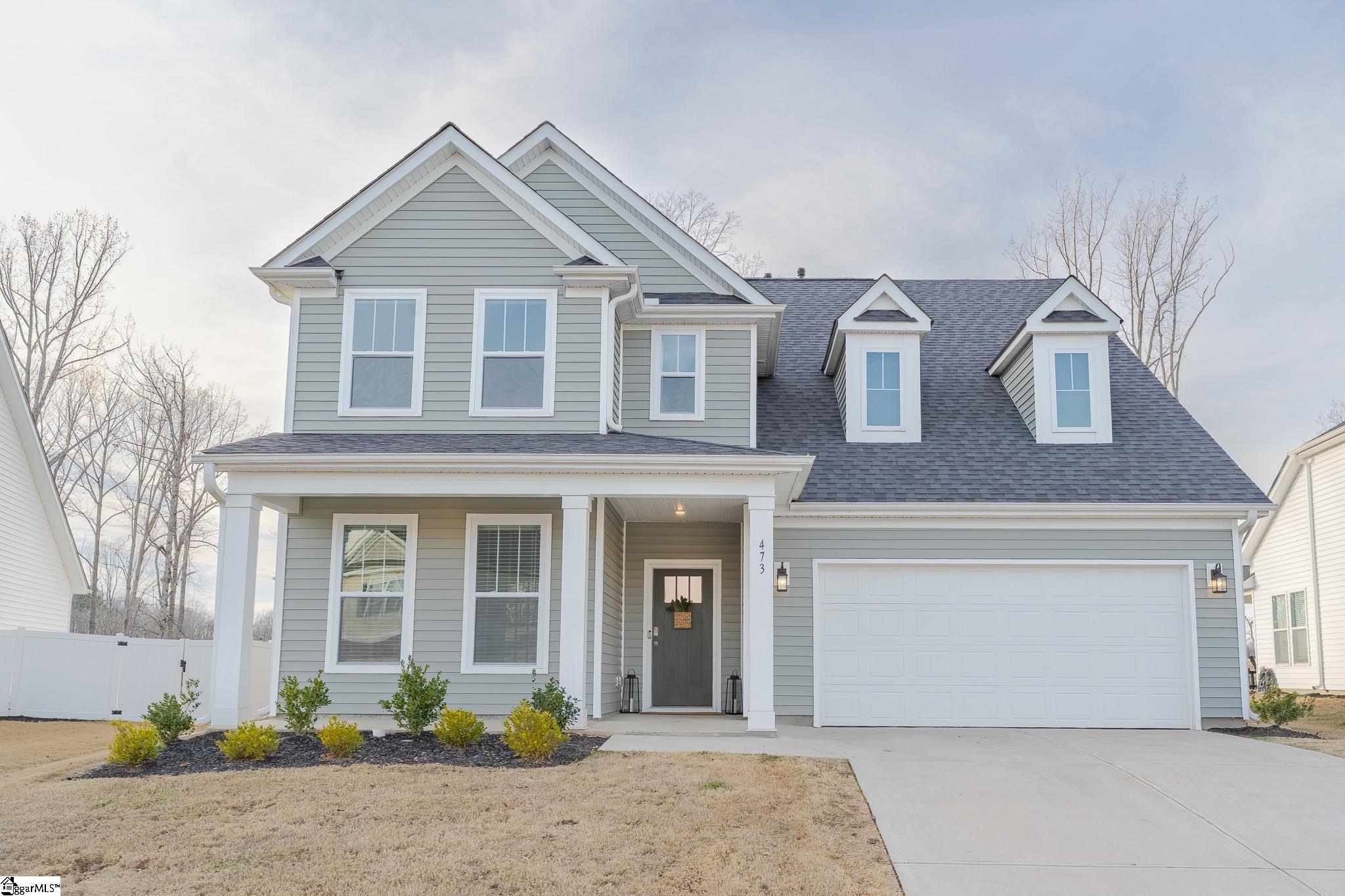This stunning, nearly-new residence at 473 Fenwick Drive offers a spacious and open floor plan designed for modern living in the Anderson Grant subdivision of Woodruff. Built in 2023, the home features approximately 2,877 square feet of space, starting with a functional study on the main floor and an attached two-car garage. The heart of the home is a gourmet kitchen equipped with elegant white cabinets, quartz countertops, a ceramic tile backsplash, a large island, and under-cabinet lighting, all centered around a gas range and stainless steel appliances. The inviting living area is anchored by a cozy gas fireplace, perfect for gathering. Upstairs, a versatile loft leads to the primary suite and additional bedrooms. The luxurious primary bathroom is a true retreat, featuring dual vanities and a Roman tiled shower equipped with two shower heads and a built-in seat. Situated in the highly-regarded Spartanburg District 5, the property is zoned for Reidville Elementary, Berry Shoals Middle, and James F. Byrnes High School. Residents enjoy an incredible array of neighborhood amenities, including a pool, pavilion, pickleball courts, playground, fire pit, and a dog park. Outside, the sellers highlight the beautiful backyard view and the excellent grading that keeps the yard dry even during heavy storms.
