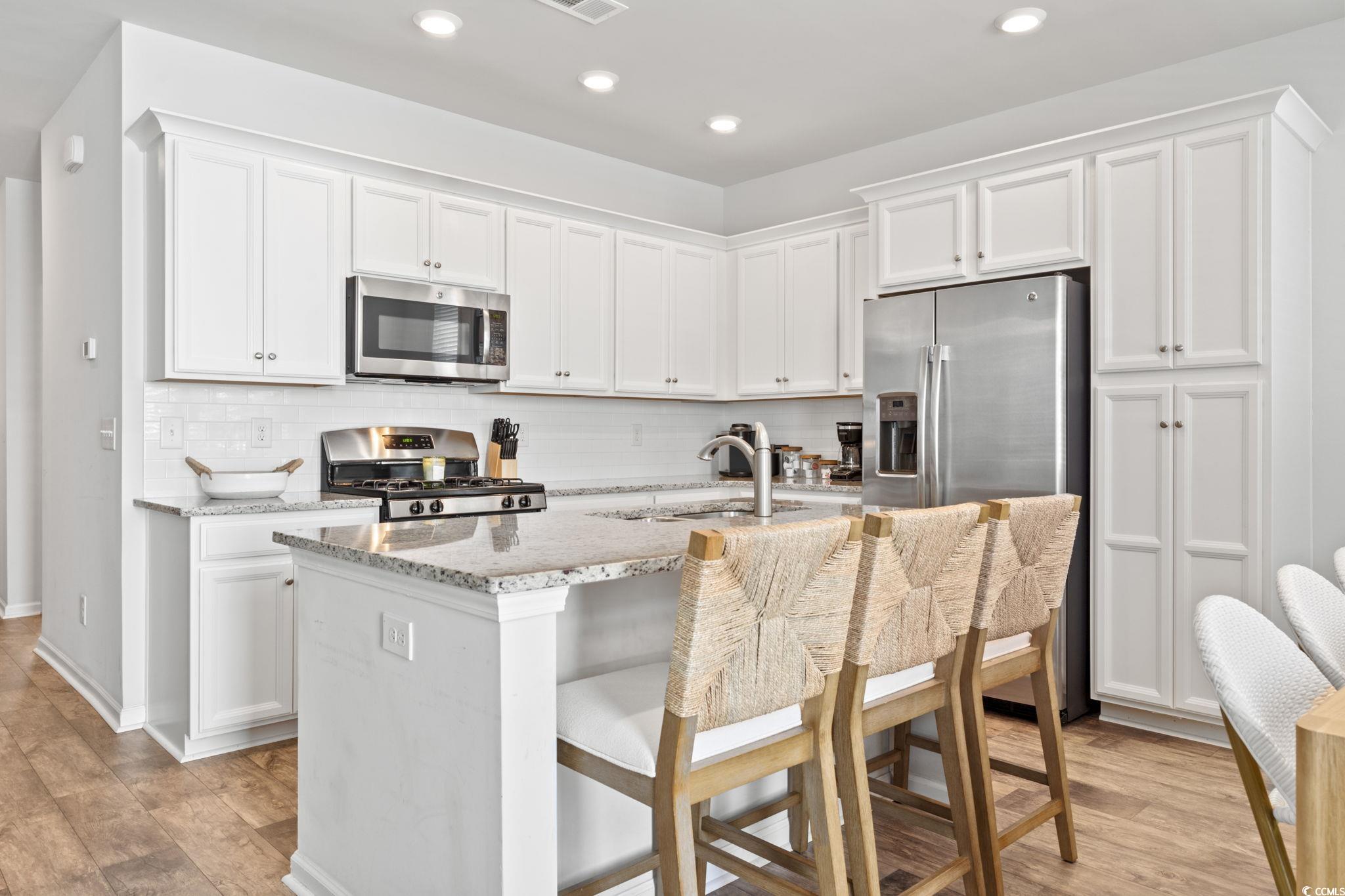 Located in the highly sought-after Cloisters at Myrtlewood community, this exceptional 4-bedroom, 3-bathroom residence combines refined design with an unparalleled coastal location. Situated within the prestigious Myrtlewood Golf Community, the home offers both privacy and convenience, with the beach, Broadway at the Beach, premier shopping, dining, and entertainment just minutes away. The interior features a thoughtfully designed floor plan anchored by a spacious primary suite, complemented by three additional bedrooms. For added convenience, the home includes a bedroom and full bathroom on the main level, perfect for guests or multigenerational living. A gourmet kitchen with stainless steel appliances, gas stove, and quality finishes flows seamlessly into open living and dining areas, creating an inviting space for everyday living and entertaining alike. This home is being offered fully furnished with luxury, high-end furnishings, ensuring a truly turnkey opportunity. This property boasts a strong rental history, making it an excellent investment opportunity. With its ideal location, elegant interiors, and proximity to world-class golf and the Atlantic shoreline, 4731 Cloisters Lane presents an outstanding opportunity for a primary residence, vacation retreat, or investment property.
