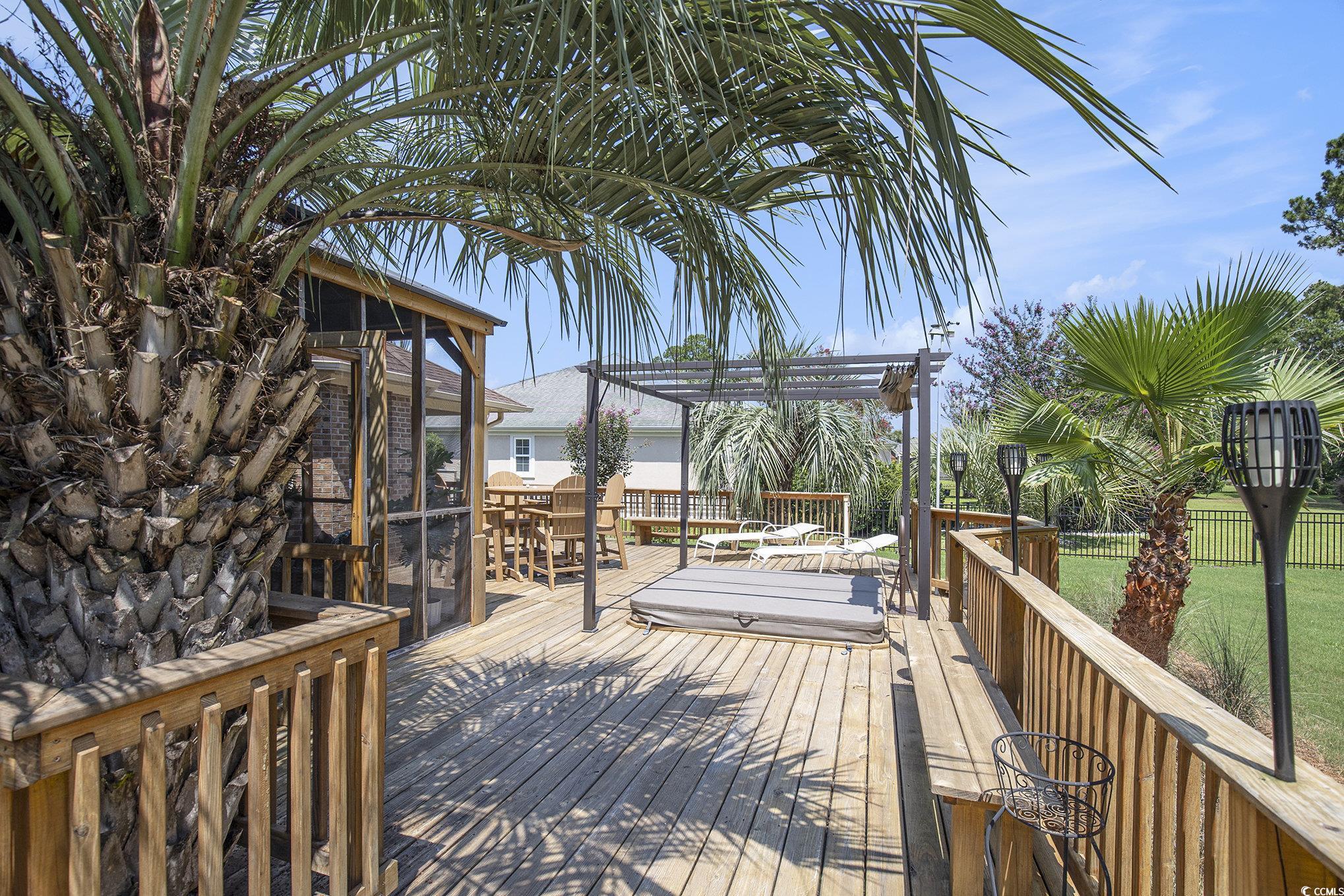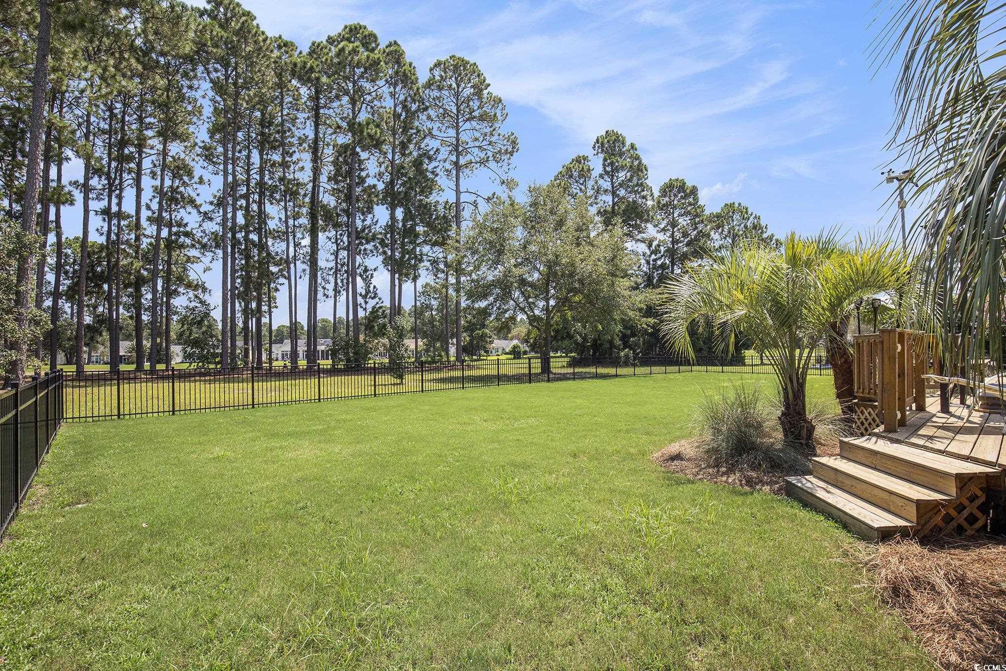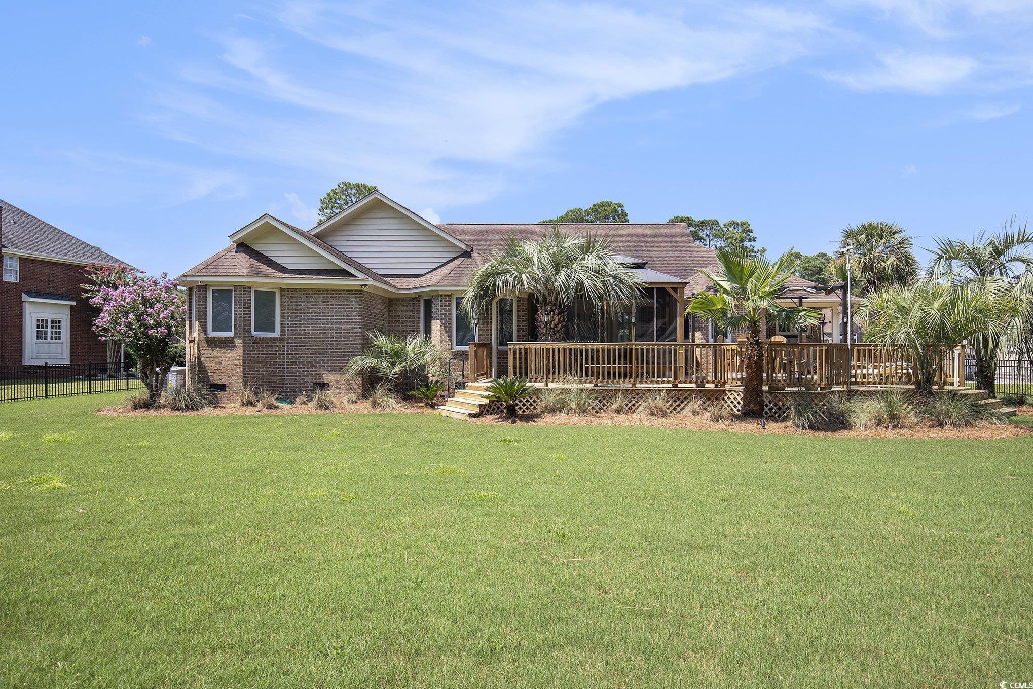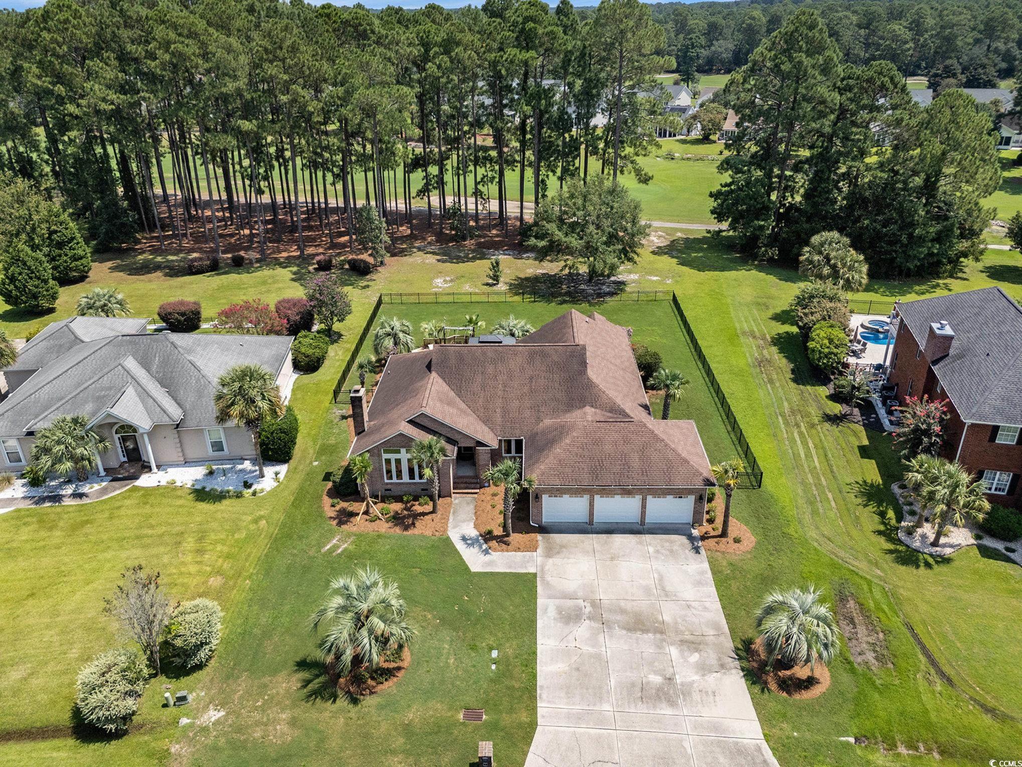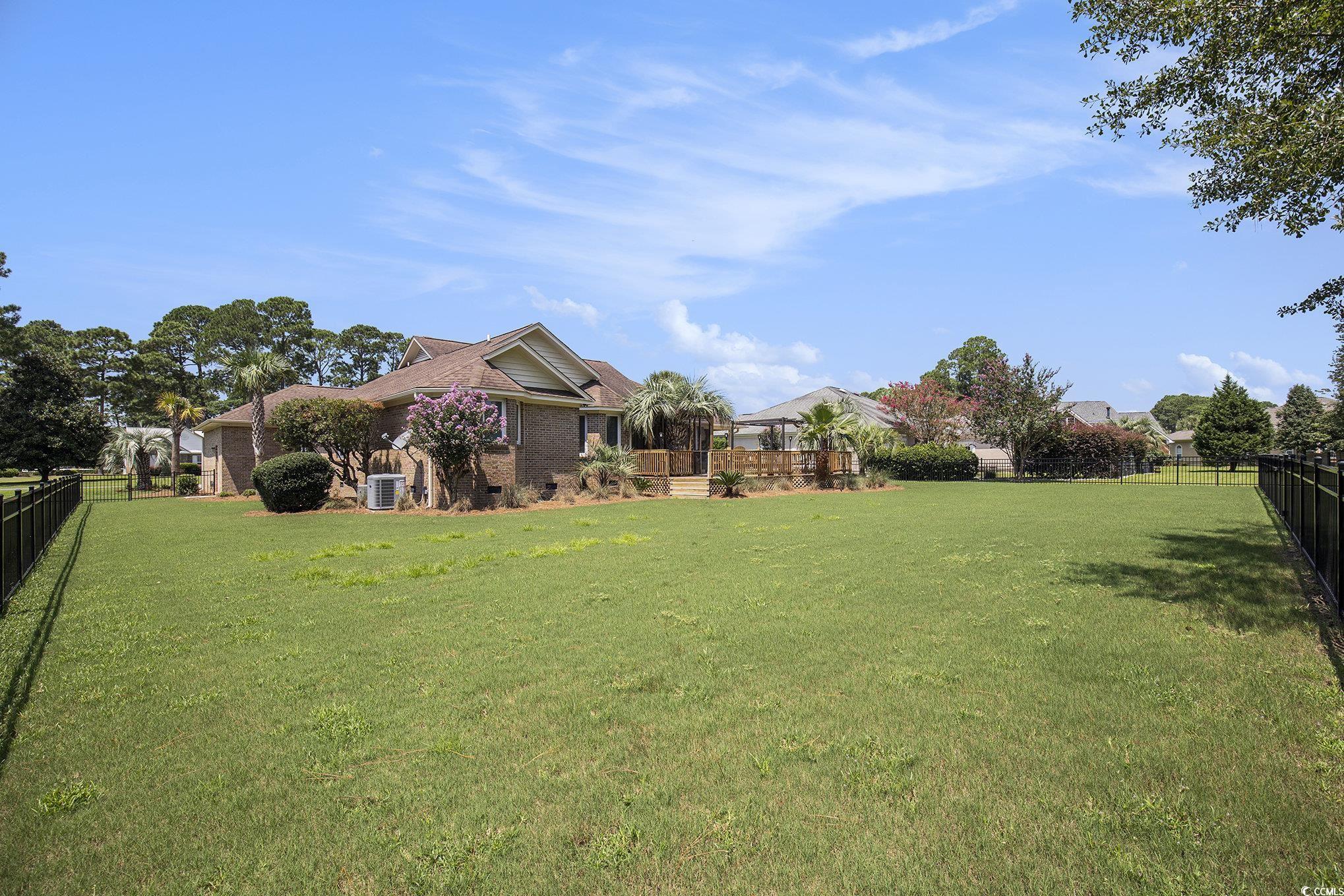 Welcome to this stunning 4-bedroom, 3-bath all-brick home situated on a spacious 0.66-acre lot, offering the perfect blend of comfort, elegance, and functionality. The fenced yard provides privacy while the oversized three-car garage offers ample space for vehicles, storage, and hobbies. Inside, the primary suite is a true retreat with fresh carpet, charming bay windows, and private access to the expansive back deck, complemented by a spa-like ensuite featuring a Jacuzzi tub framed by bay windows, a walk-in shower, dual vanities, and an impressive cedar-lined walk-in closet. Additional bedrooms feature generous closet space and bamboo flooring, with two connected by a classic Jack-and-Jill bath and a third with its own full bath. Fresh paint and new carpet throughout create a bright, updated feel, while the kitchen shines with new solid surface countertops, updated appliances, and abundant space for cooking and gathering; all appliances including washer, dryer, and refrigerator are included, making the home move-in ready. Outside, a large deck with a screened-in porch and hot tub provides the perfect space for entertaining or relaxing, surrounded by palm trees and landscaping that add charm and curb appeal, while the deck overlooks the 16th hole for a peaceful golf course view. Recent updates include two HVAC systems one recently replaced and the other brand new in 2025 as well as new bathroom fixtures and toilets throughout. As part of the community, residents enjoy access to top-notch amenities including a pool, tennis courts, and basketball courts. Combining luxury, comfort, and location, this Southern gem truly has it all schedule your private tour today!