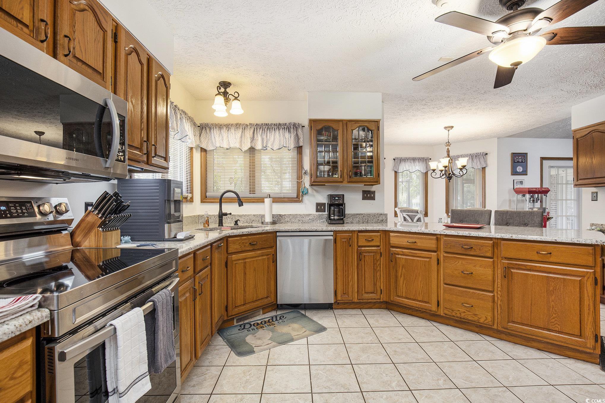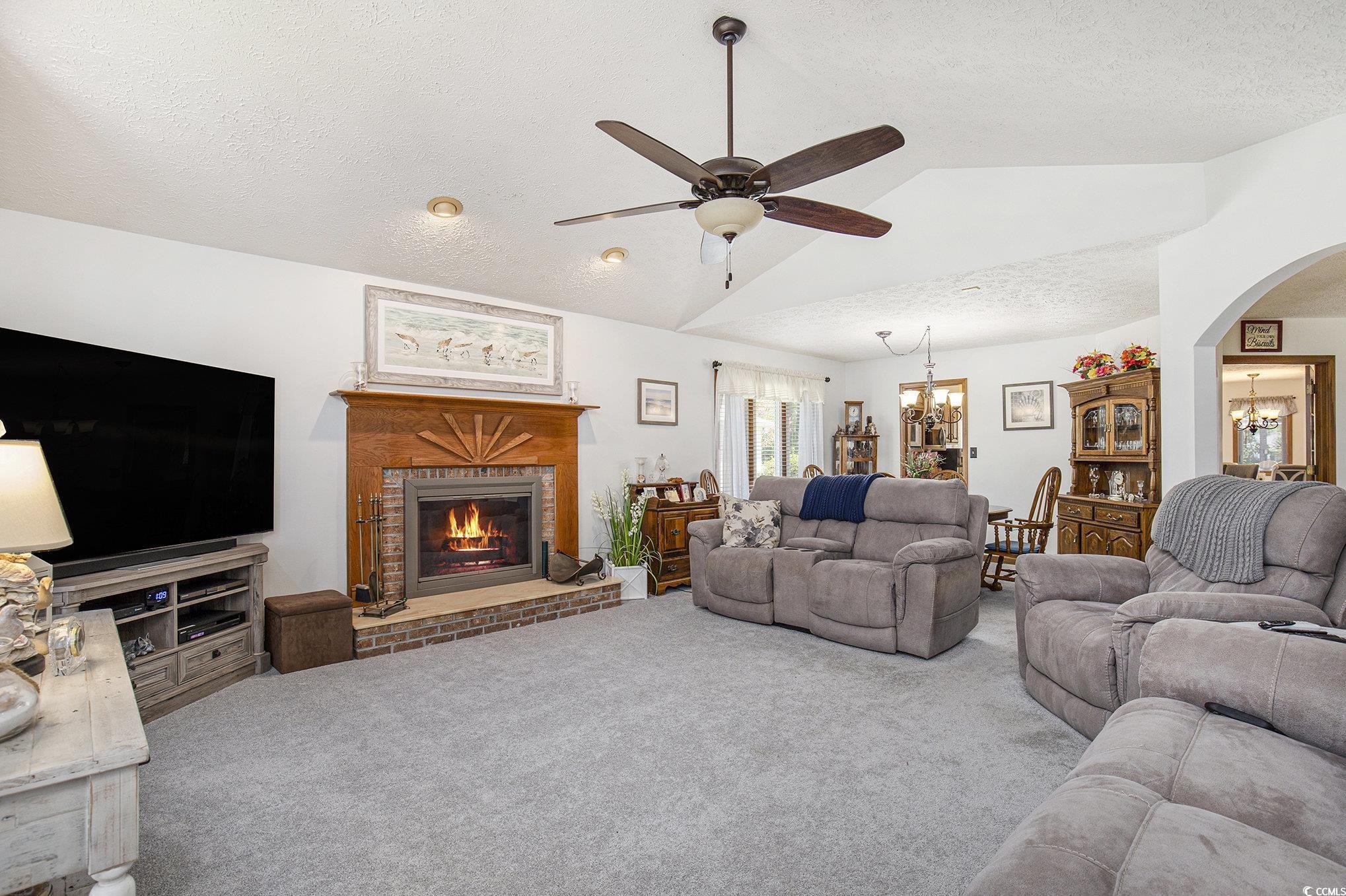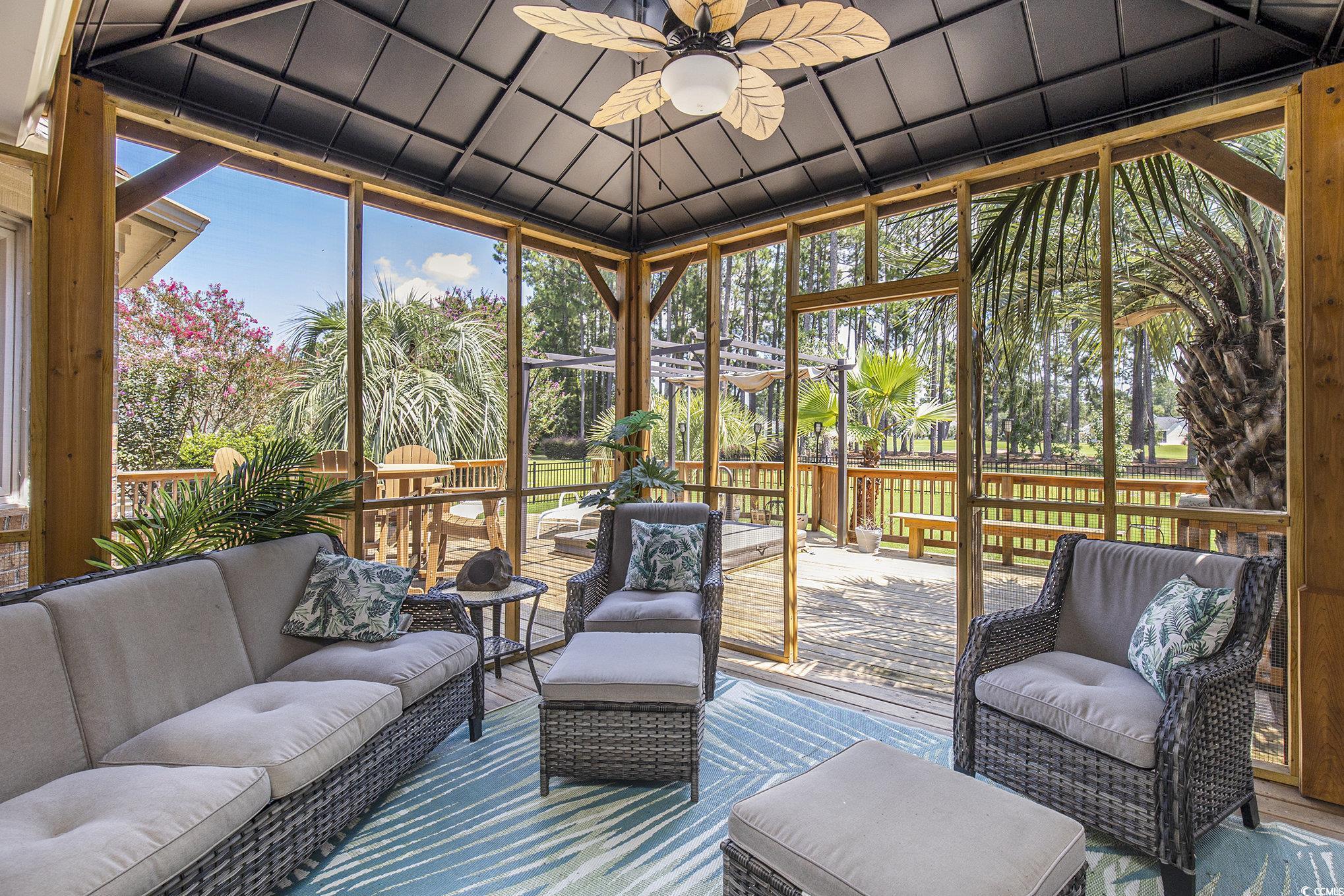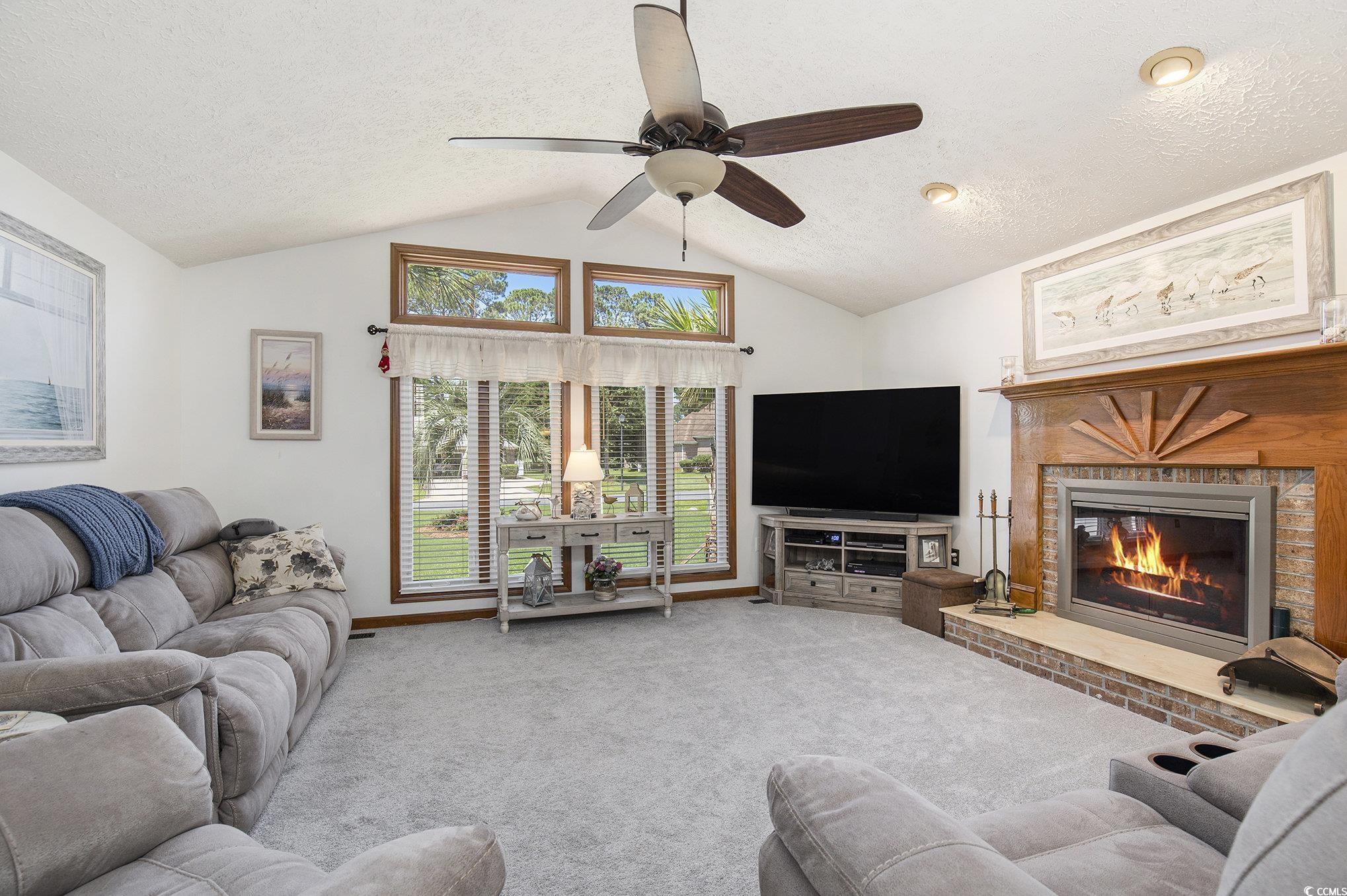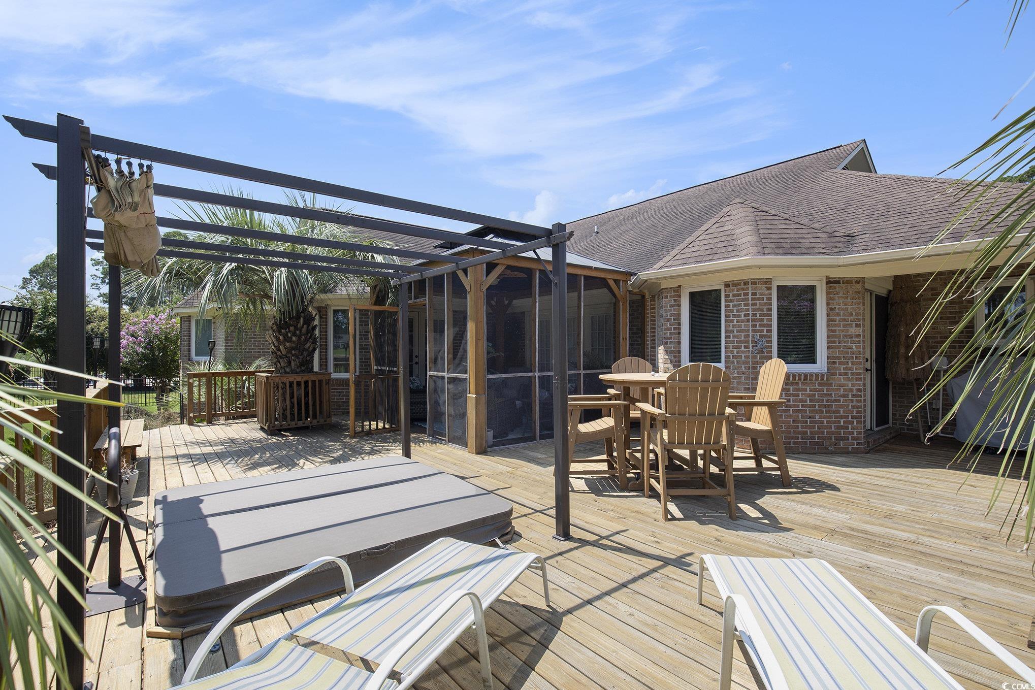 Welcome to this stunning 4-bedroom, 3-bath all-brick home situated on a spacious 0.66-acre lot, offering the perfect blend of comfort, elegance, and functionality. The fenced yard provides privacy while the oversized three-car garage offers ample space for vehicles, storage, and hobbies. Inside, the primary suite is a true retreat with fresh carpet, charming bay windows, and private access to the expansive back deck, complemented by a spa-like ensuite featuring a Jacuzzi tub framed by bay windows, a walk-in shower, dual vanities, and an impressive cedar-lined walk-in closet. Additional bedrooms feature generous closet space and bamboo flooring, with two connected by a classic Jack-and-Jill bath and a third with its own full bath. Fresh paint and new carpet throughout create a bright, updated feel, while the kitchen shines with new solid surface countertops, updated appliances, and abundant space for cooking and gathering; all appliances including washer, dryer, and refrigerator are included, making the home move-in ready. Outside, a large deck with a screened-in porch and hot tub provides the perfect space for entertaining or relaxing, surrounded by palm trees and landscaping that add charm and curb appeal, while the deck overlooks the 16th hole for a peaceful golf course view. Recent updates include two HVAC systems one recently replaced and the other brand new in 2025 as well as new bathroom fixtures and toilets throughout. As part of the community, residents enjoy access to top-notch amenities including a pool, tennis courts, and basketball courts. Combining luxury, comfort, and location, this Southern gem truly has it all schedule your private tour today!